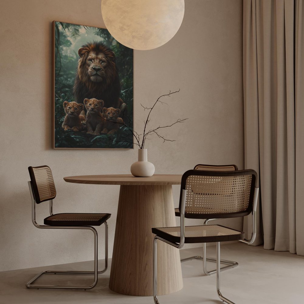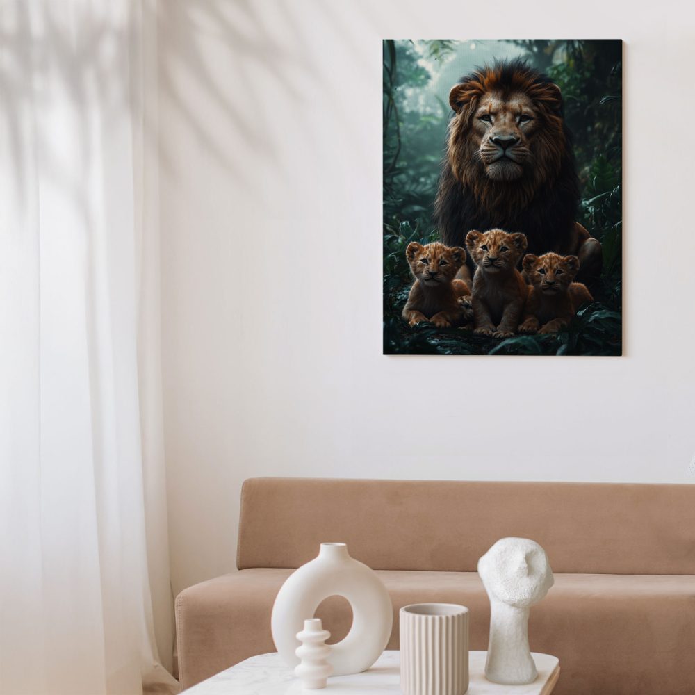 Terug naar collectie / Schilderijen / Bloemen Schilderij / Majestueuze leeuw met welpen
