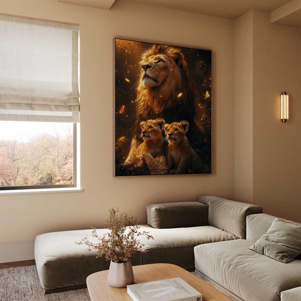 Terug naar collectie / Schilderijen / Bloemen Schilderij / Majestueuze leeuw met welpen