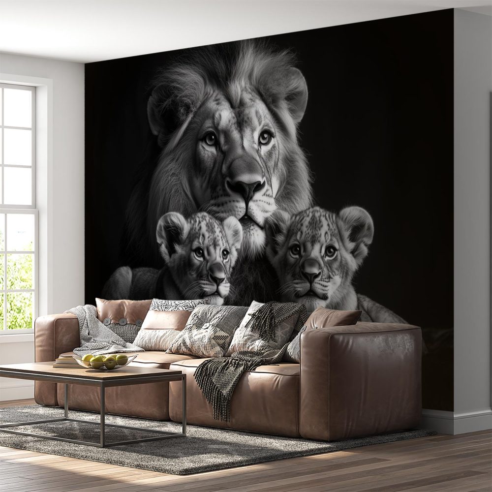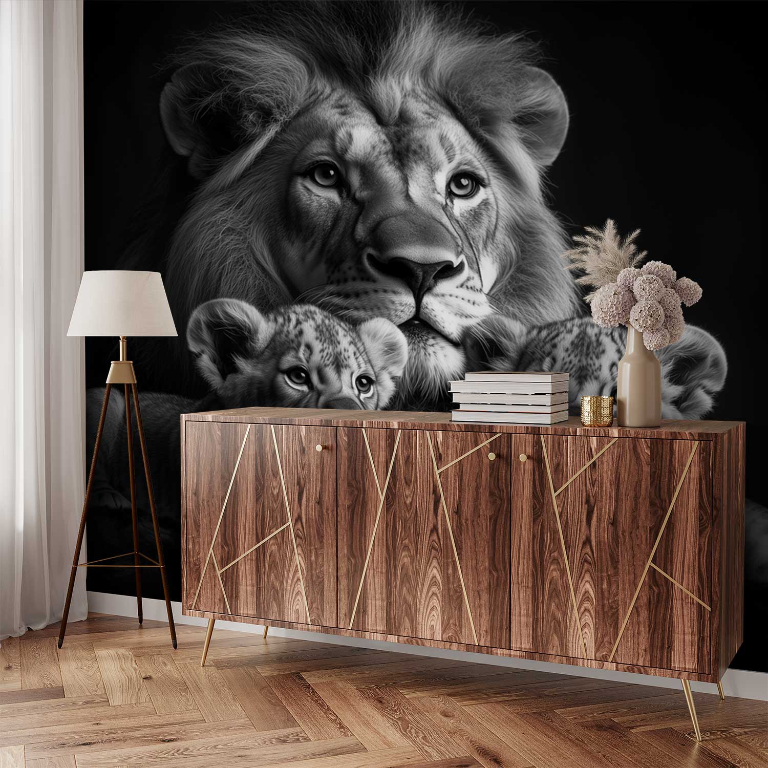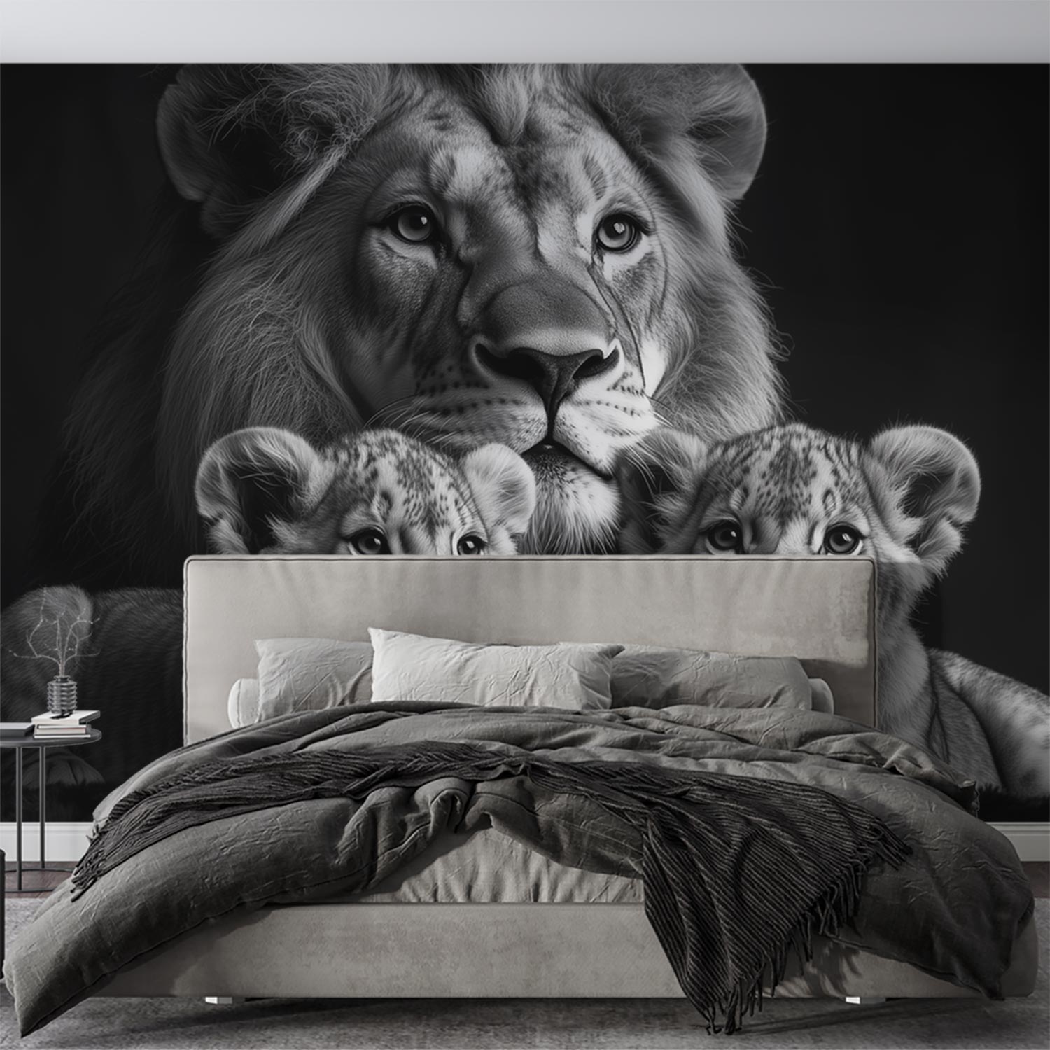 Terug naar collectie / Behang / Majestueuze leeuw met welpen behang