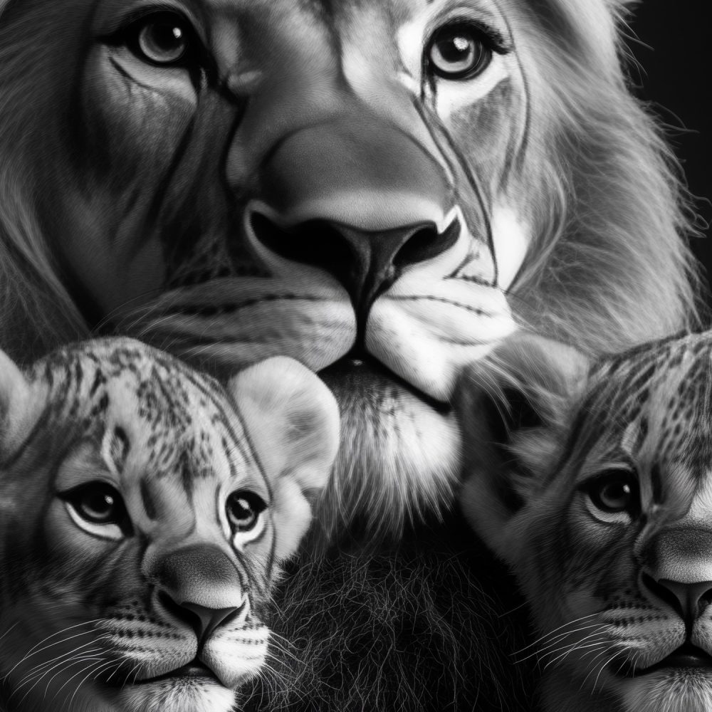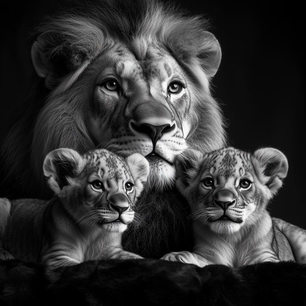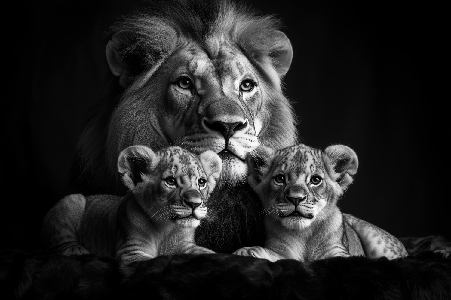 Terug naar collectie / Behang / Majestueuze leeuw met welpen behang