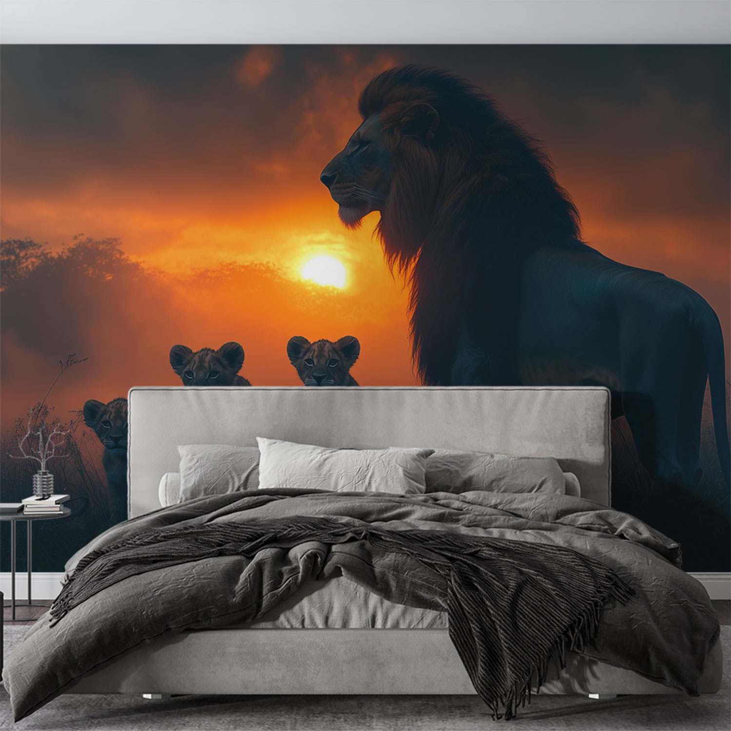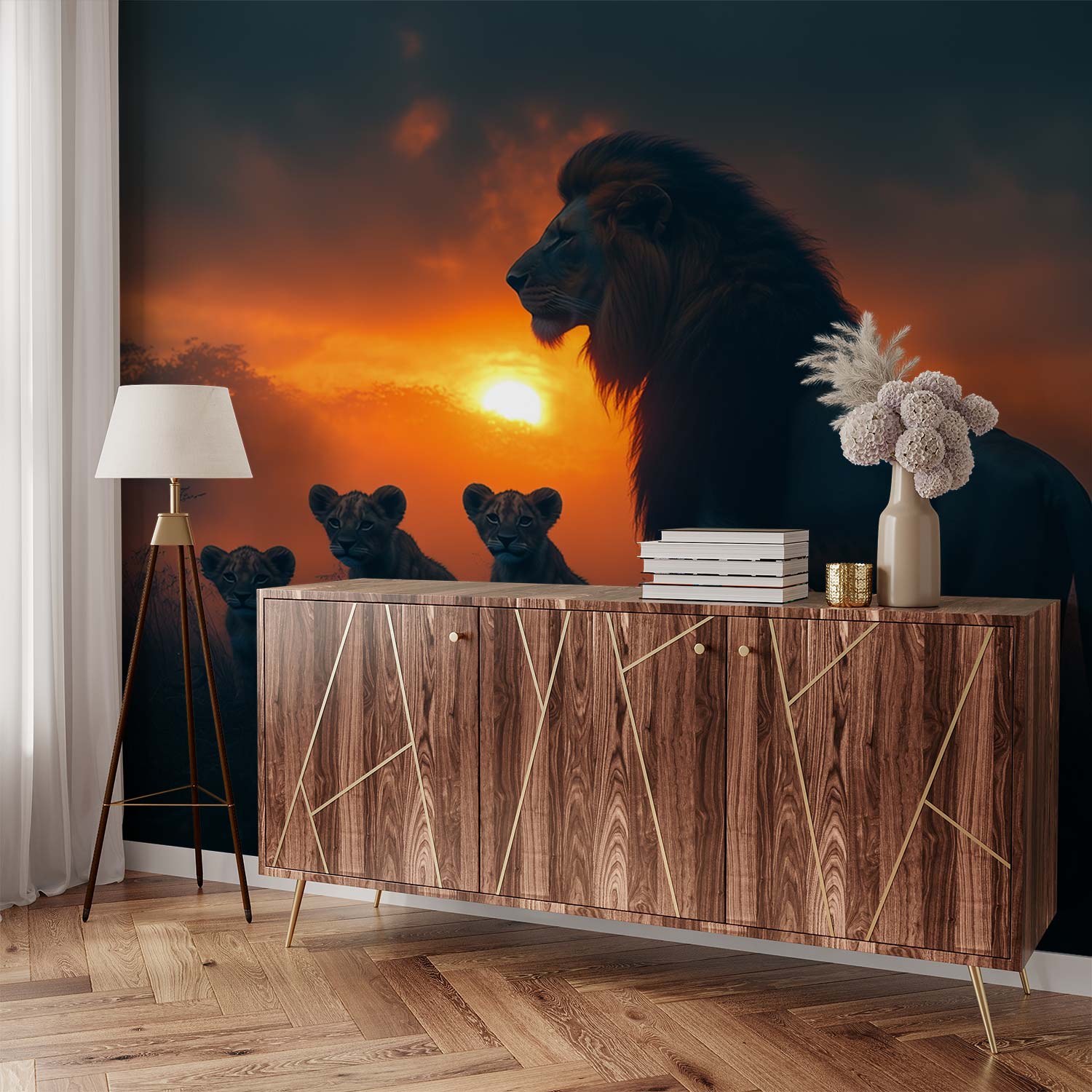 Terug naar collectie / Behang / Majestueuze leeuw met welpen behang