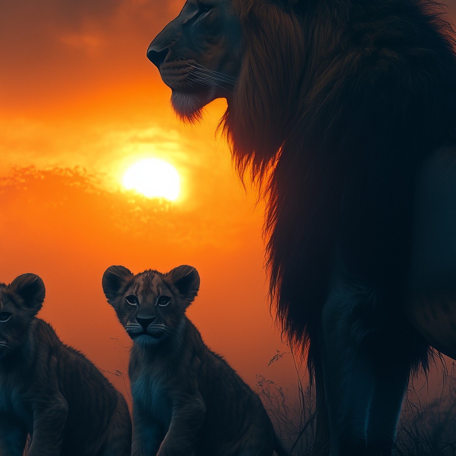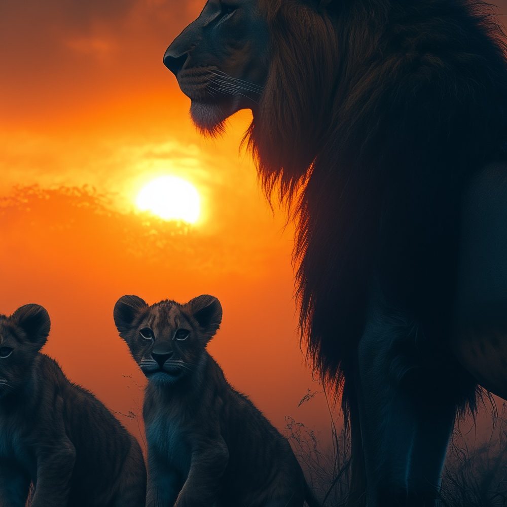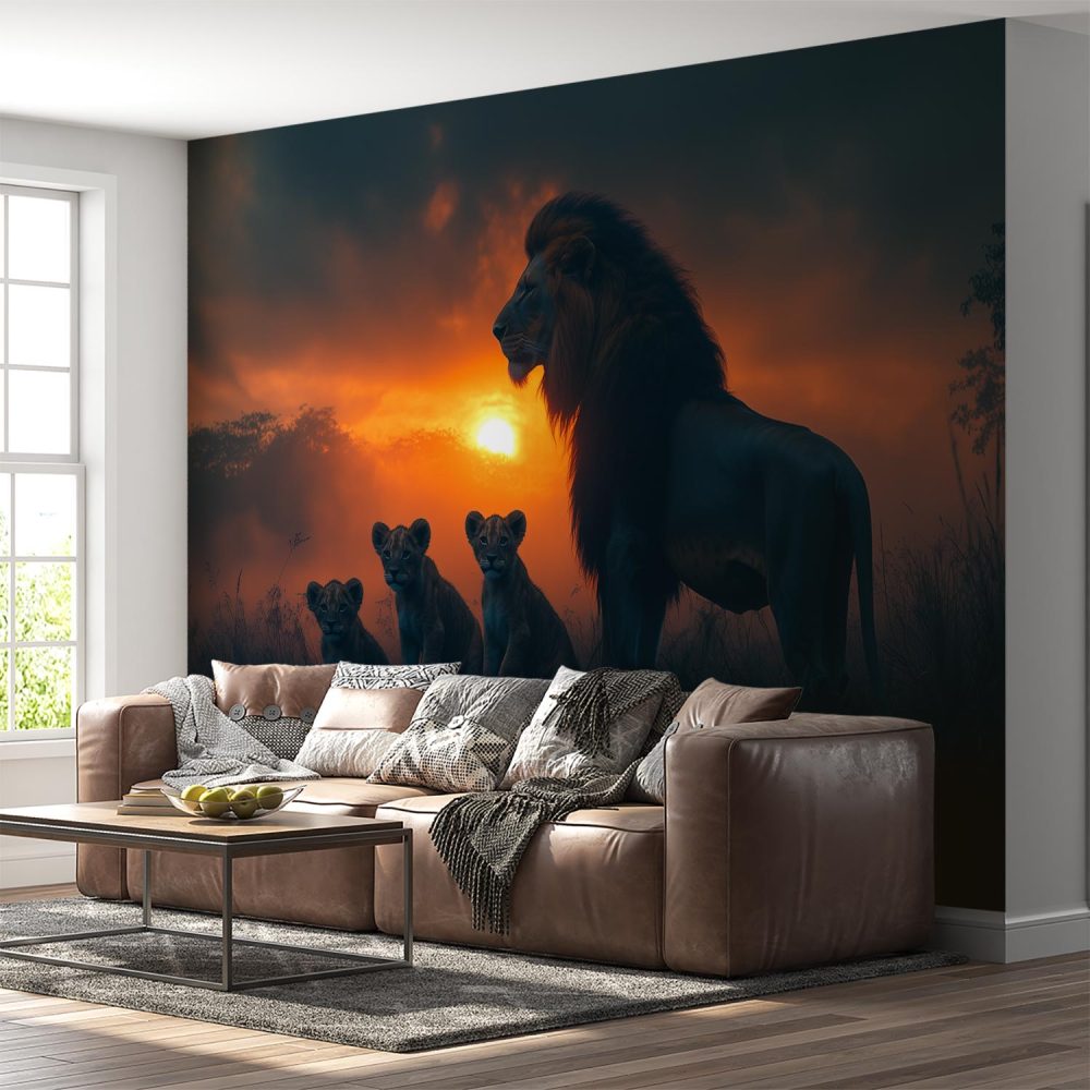 Majestueuze leeuw met welpen behang