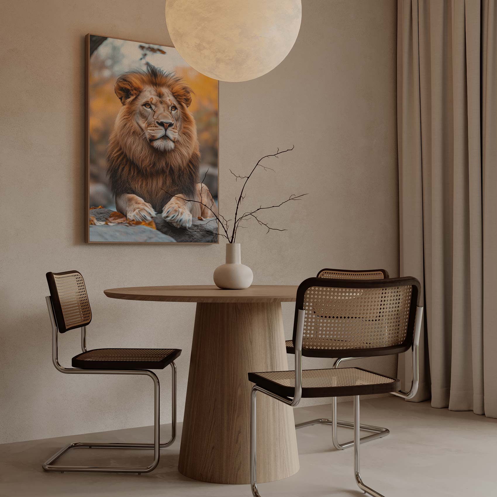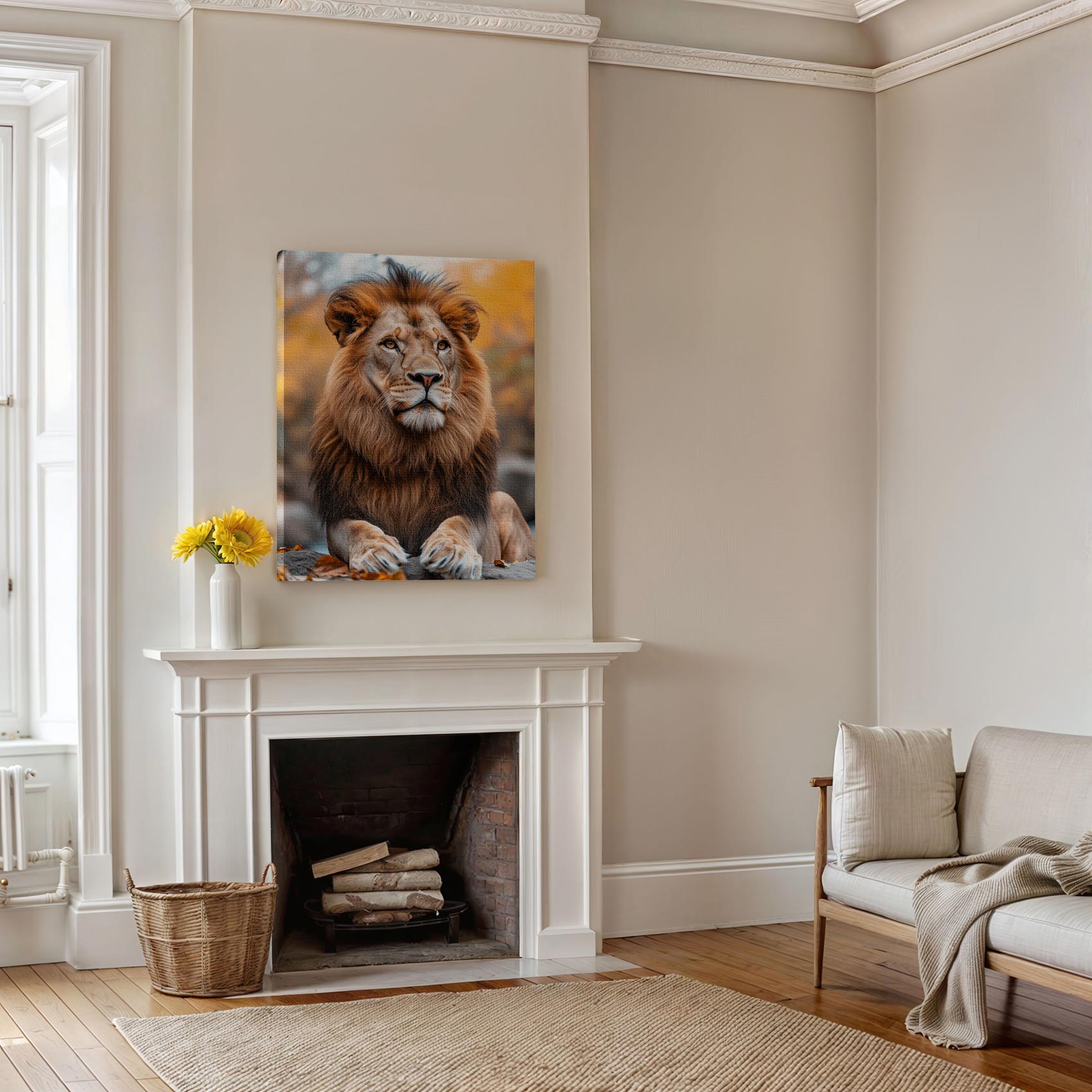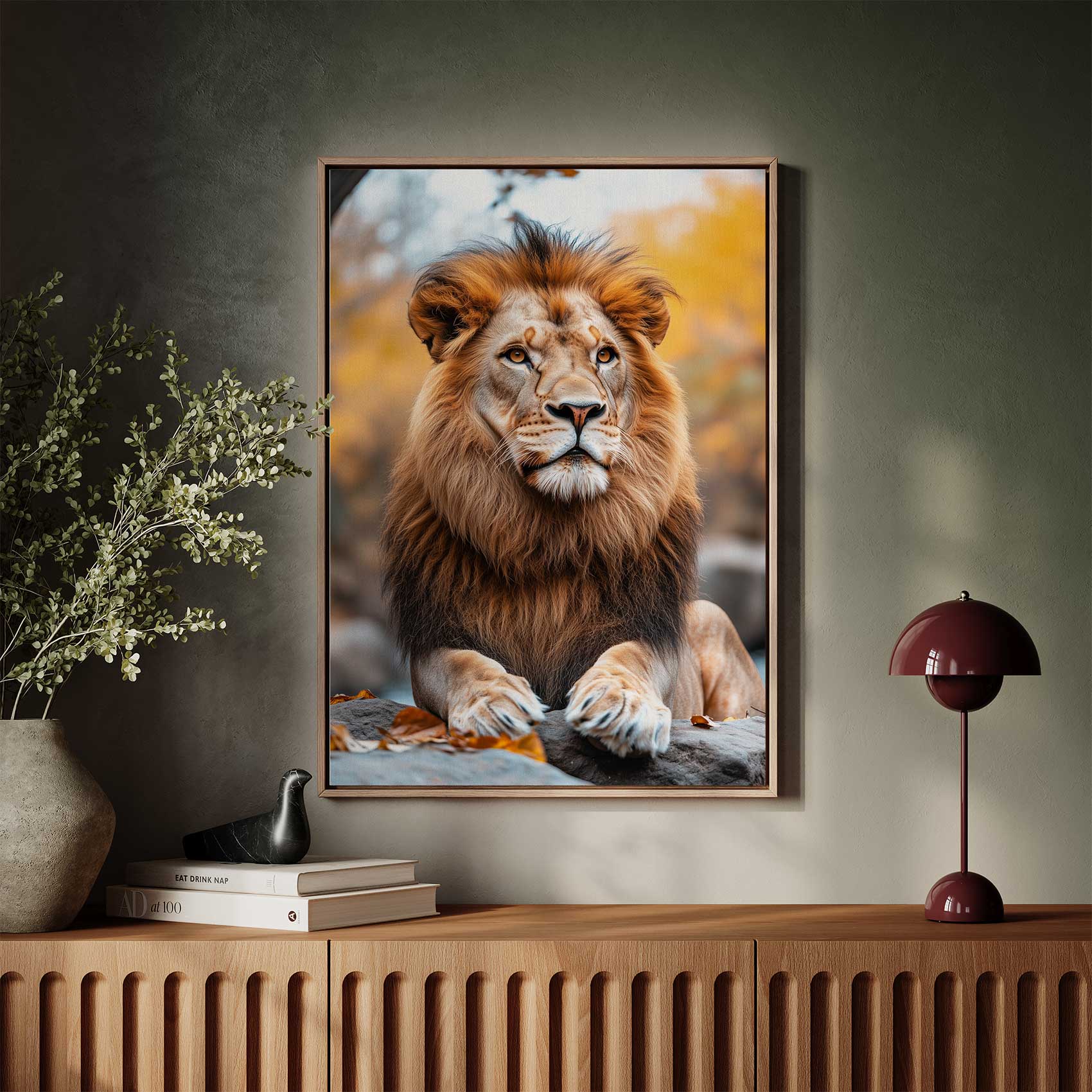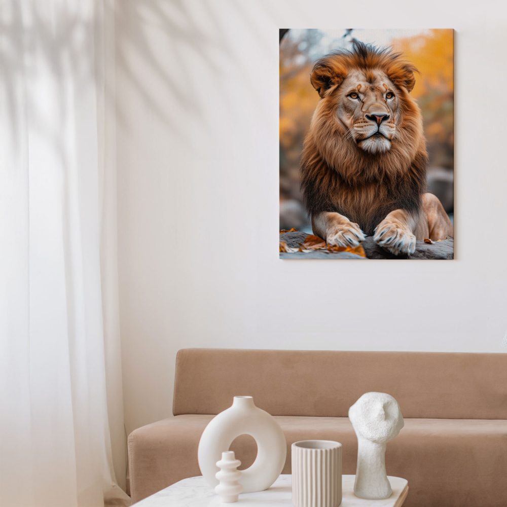 Terug naar collectie / Schilderijen / Bossen Schilderij / Majestueuze leeuw op rots
