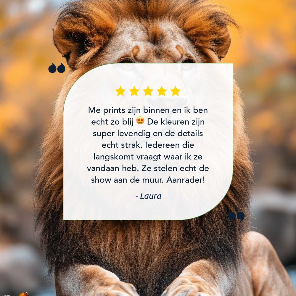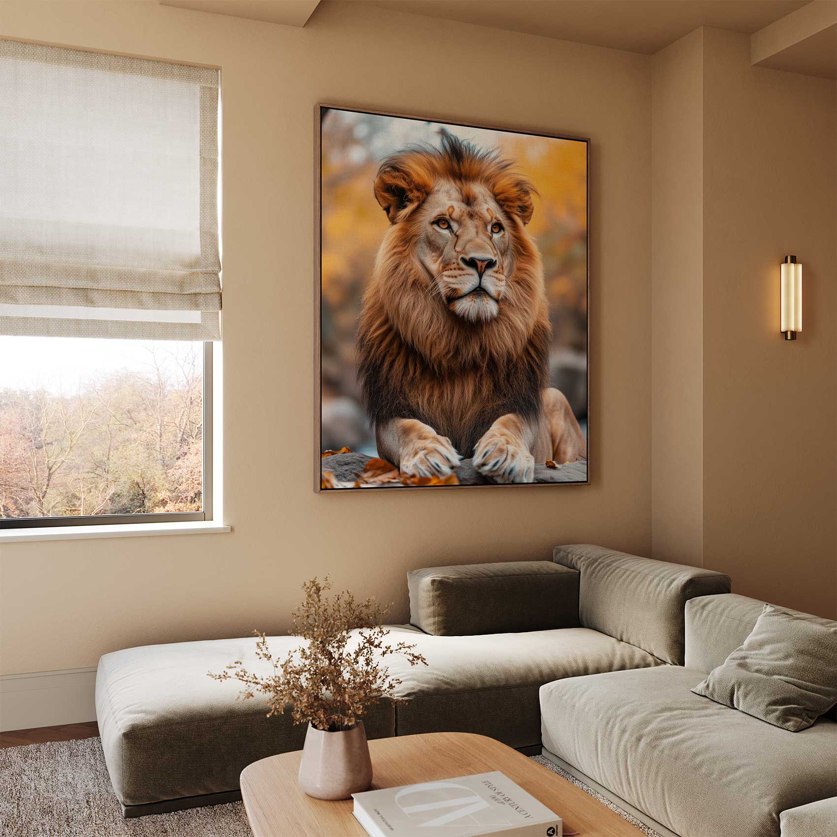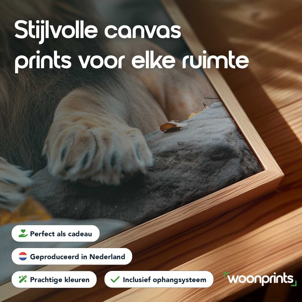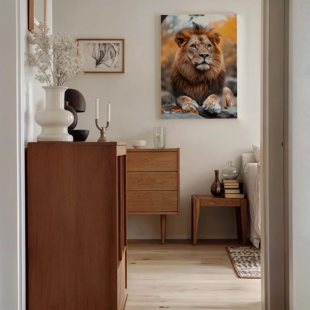 Terug naar collectie / Schilderijen / Bossen Schilderij / Majestueuze leeuw op rots