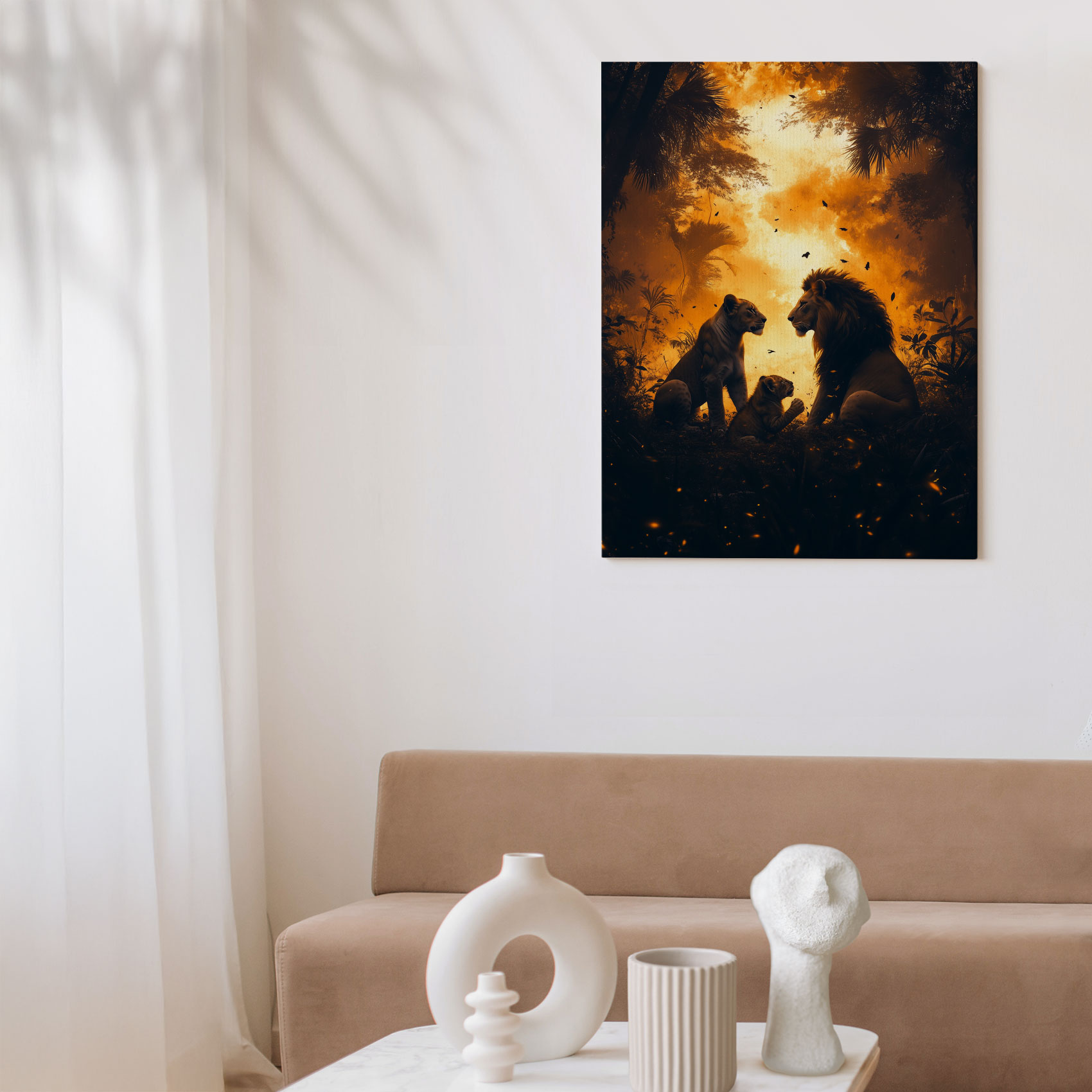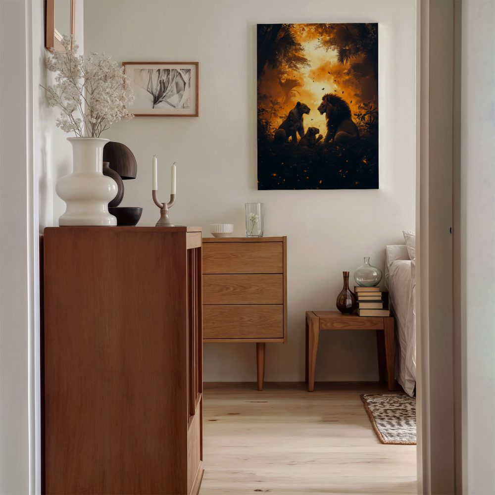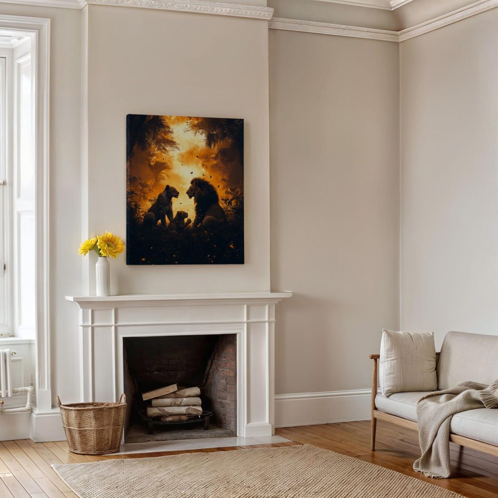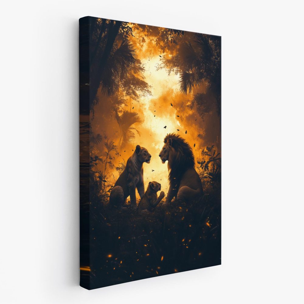 Terug naar collectie / Schilderijen / Bloemen Schilderij / Majestueuze leeuwen in oerwoud