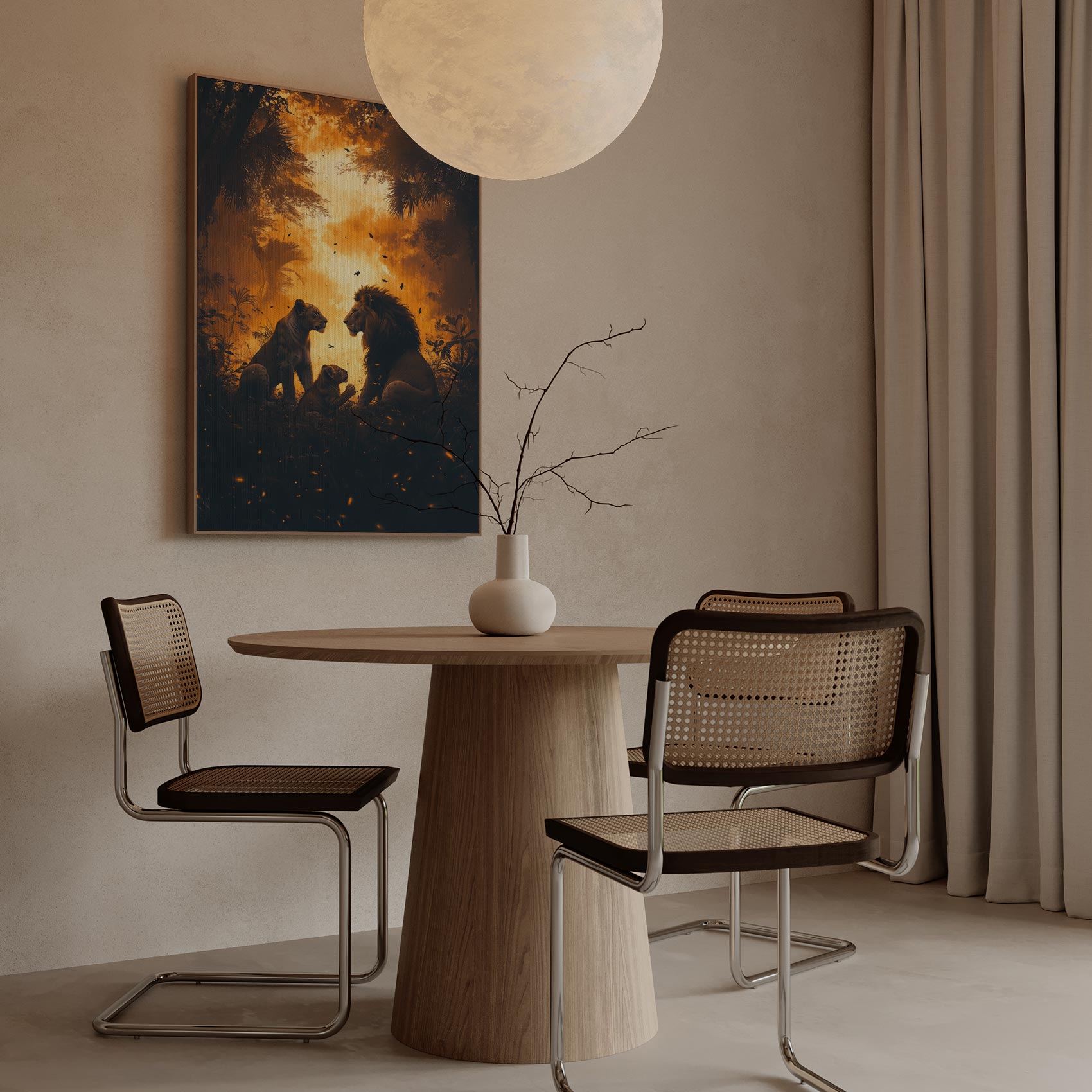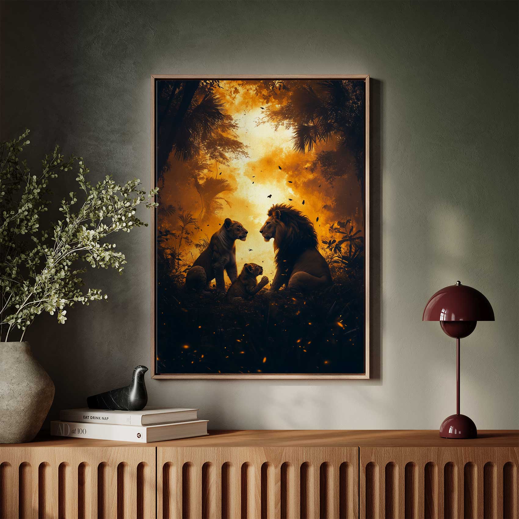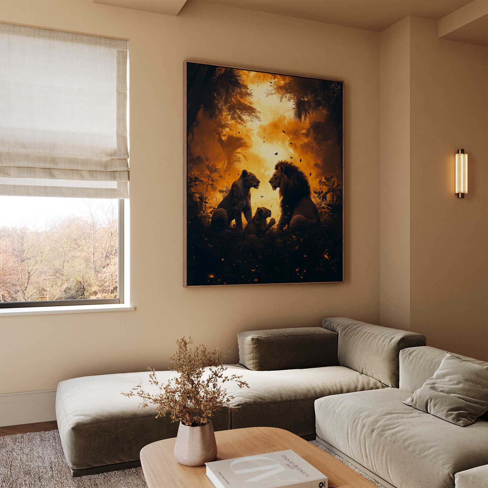 Terug naar collectie / Schilderijen / Bloemen Schilderij / Majestueuze leeuwen in oerwoud