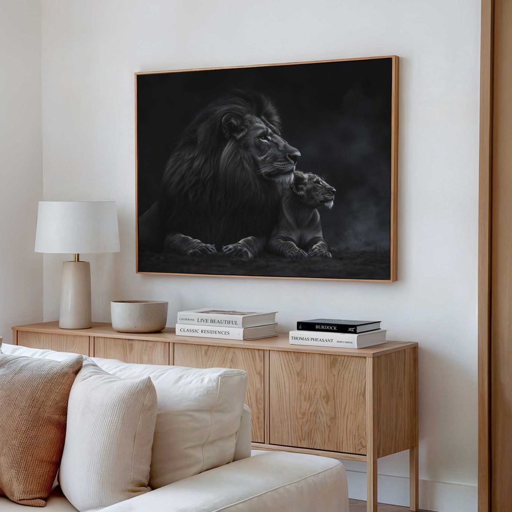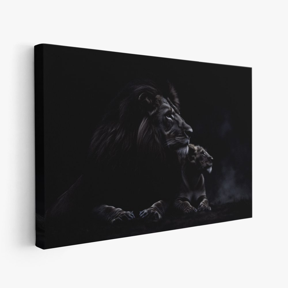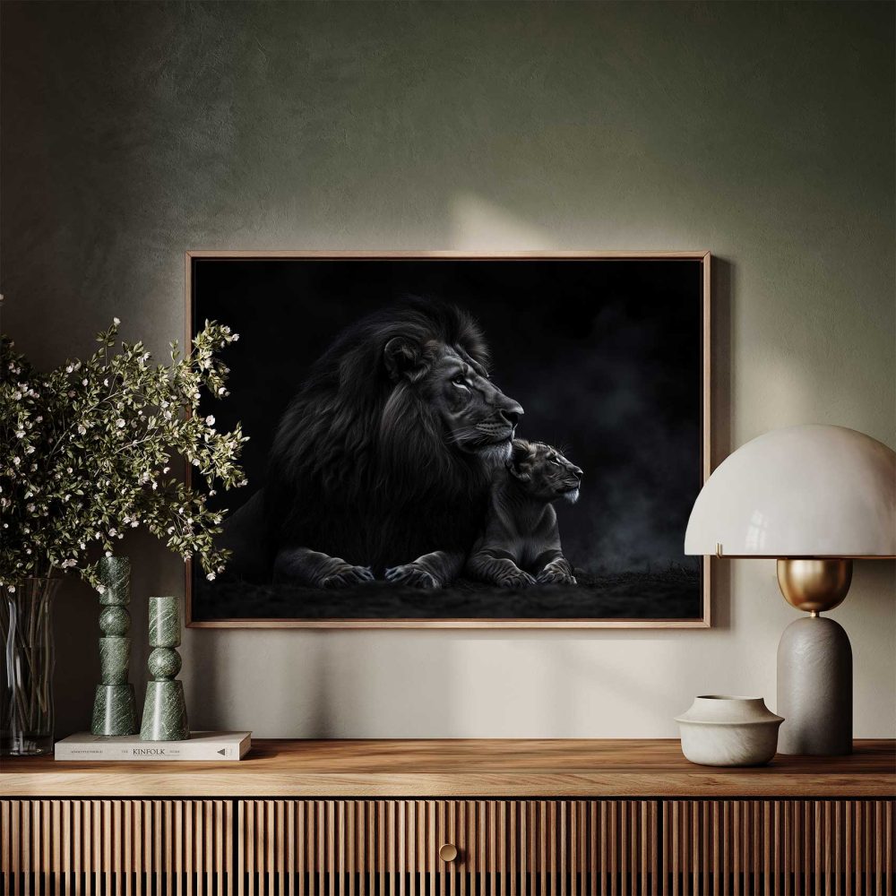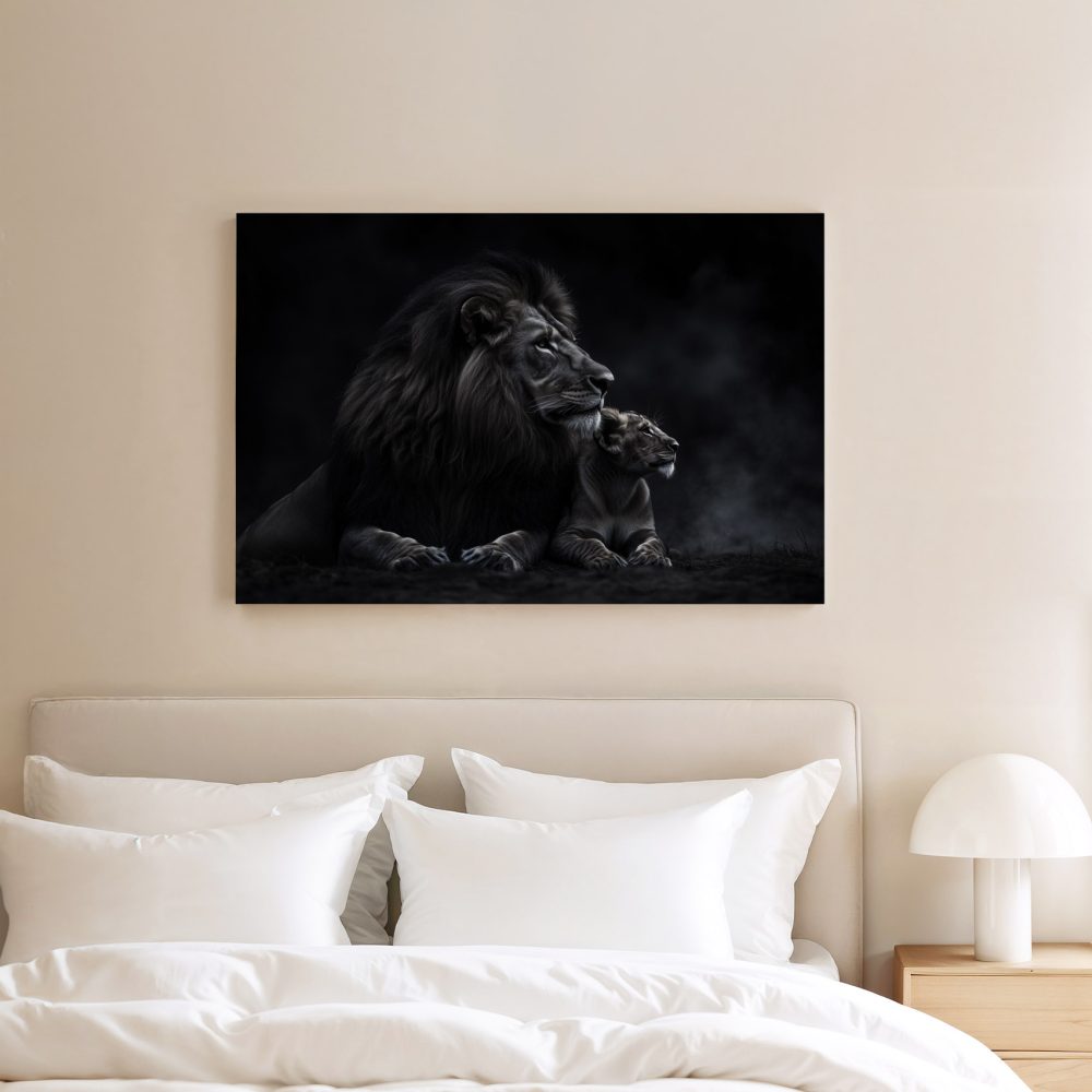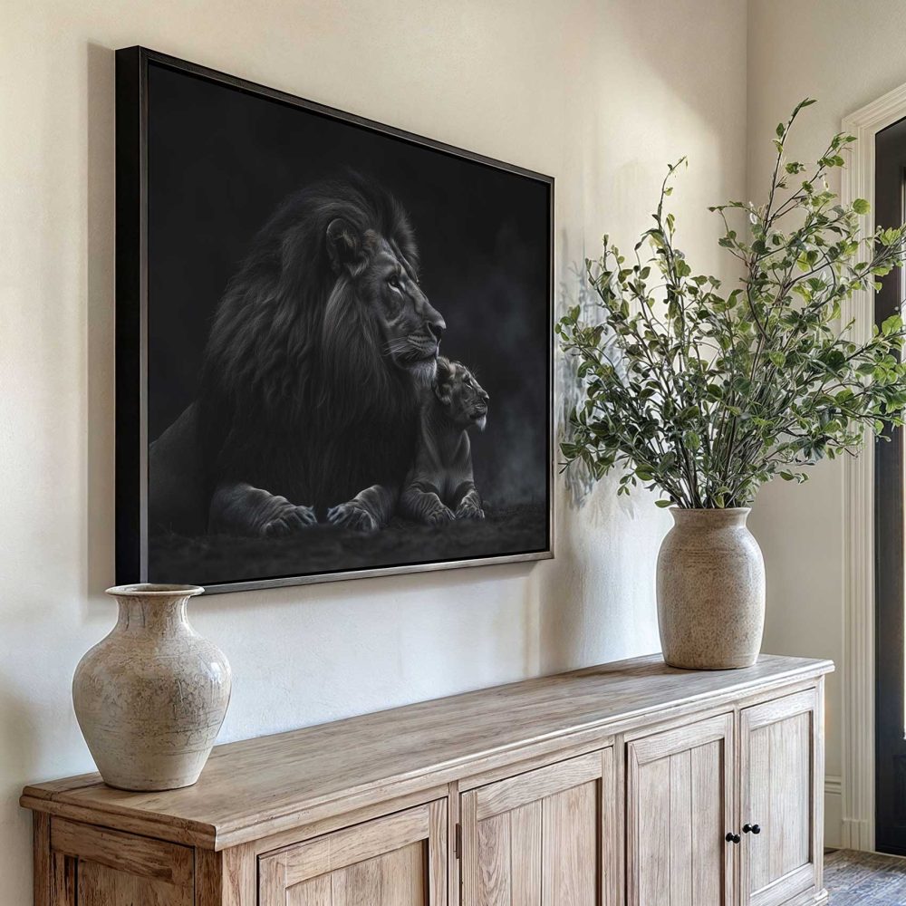 Terug naar collectie / Schilderijen / Dieren Schilderij / Majestueuze leeuwen in zwart-wit