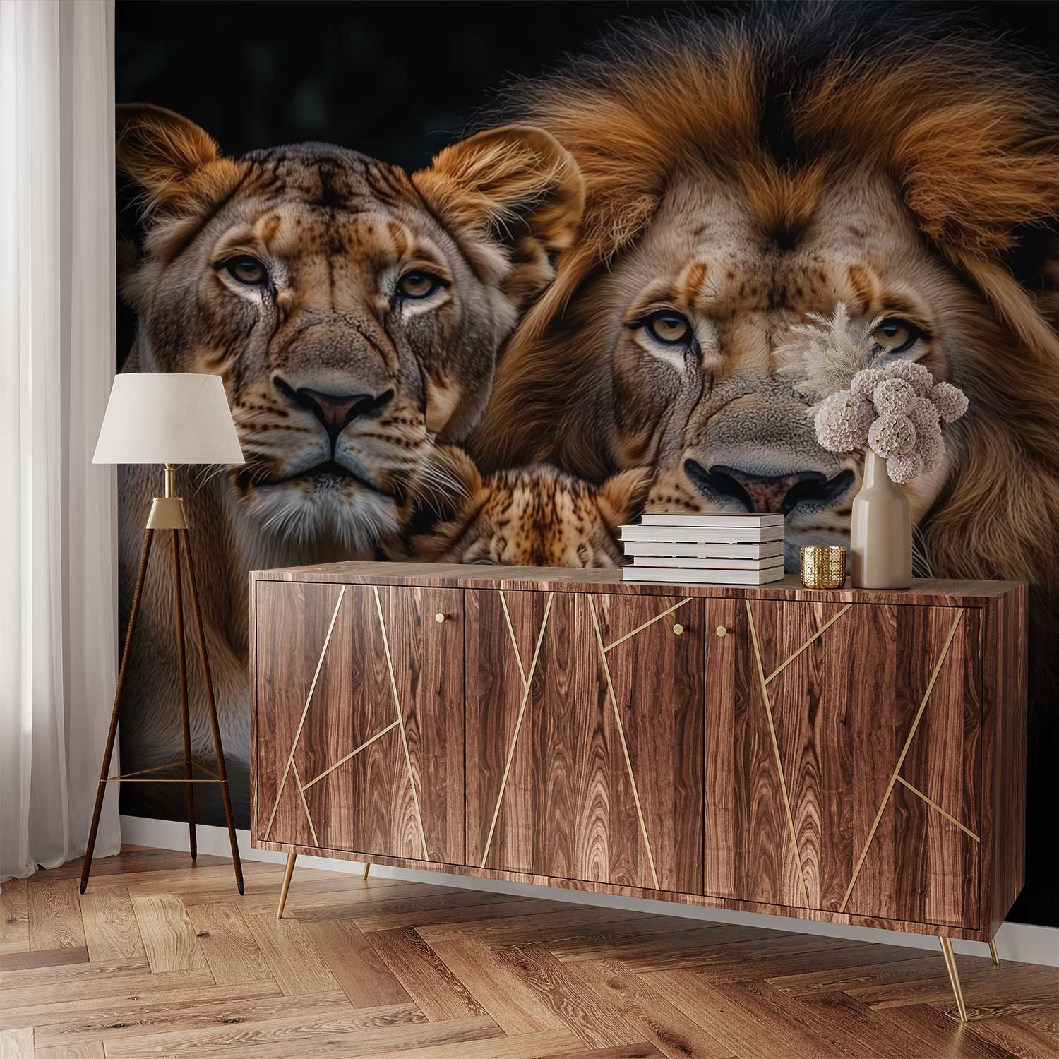 Terug naar collectie / Behang / Majestueuze leeuwenfamilie behang