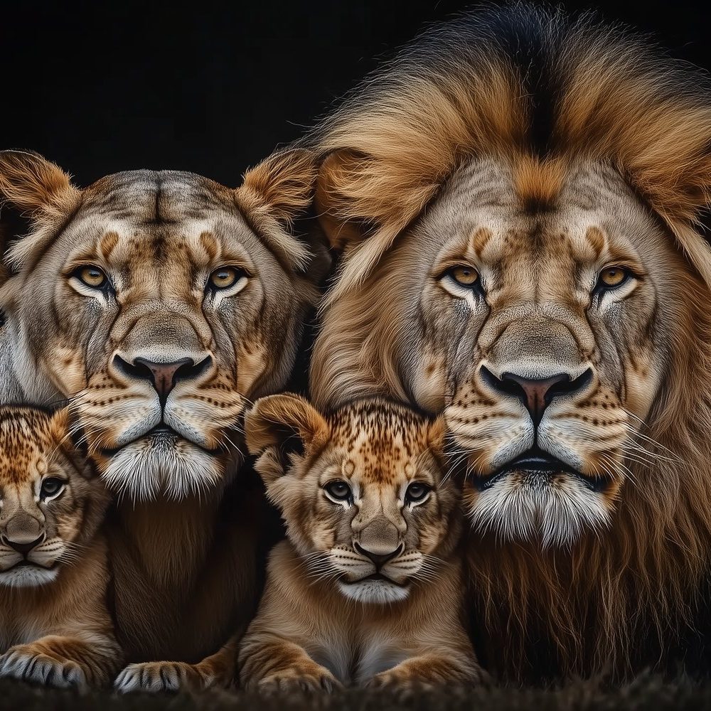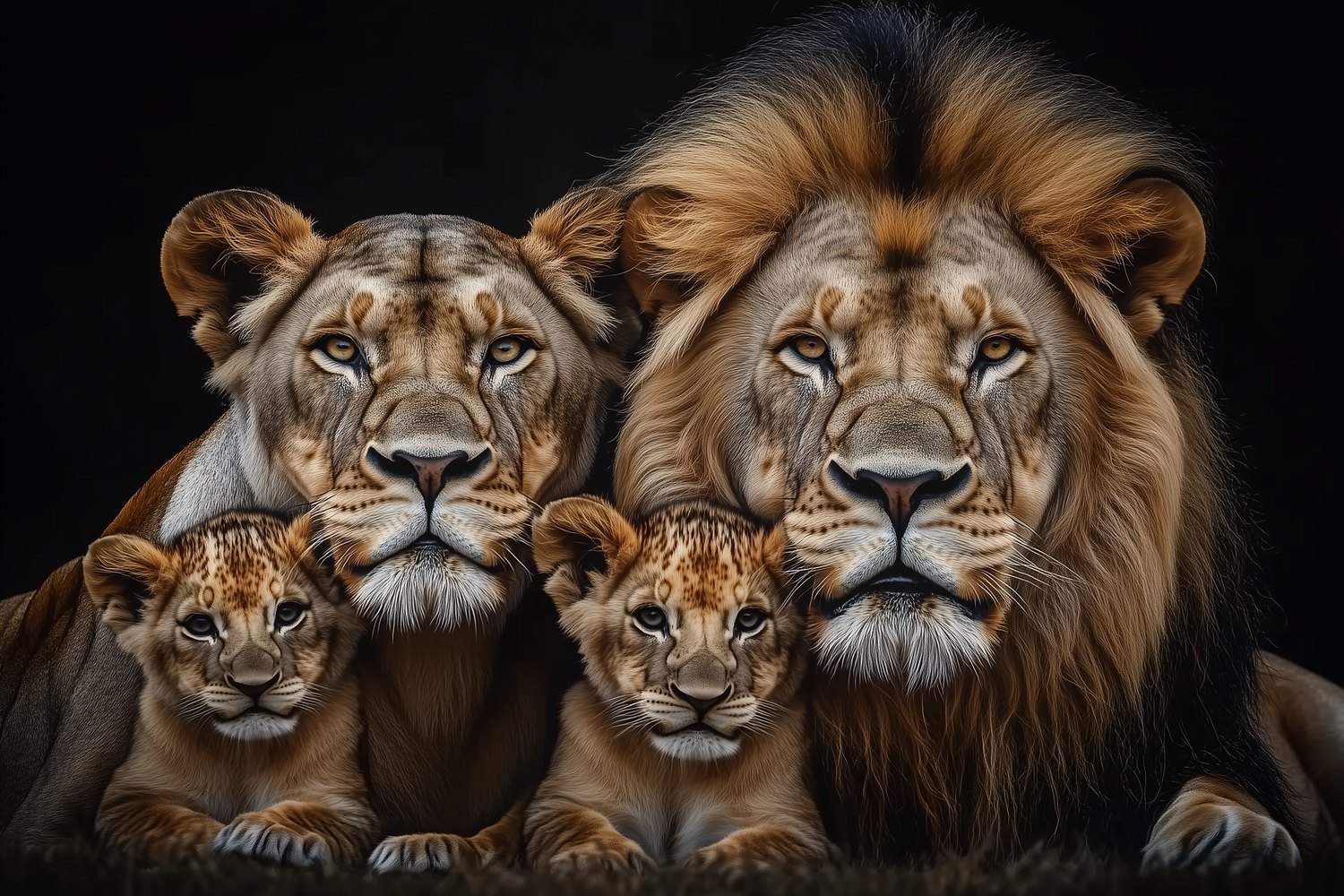 Terug naar collectie / Behang / Majestueuze leeuwenfamilie behang