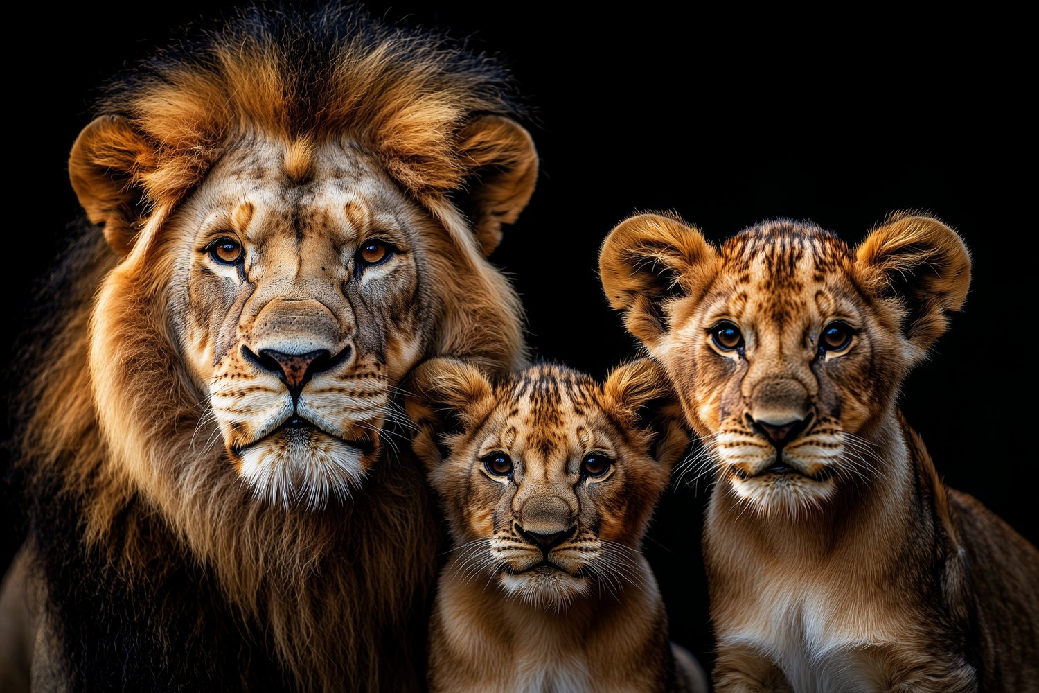 Terug naar collectie / Behang / Majestueuze leeuwenfamilie behang