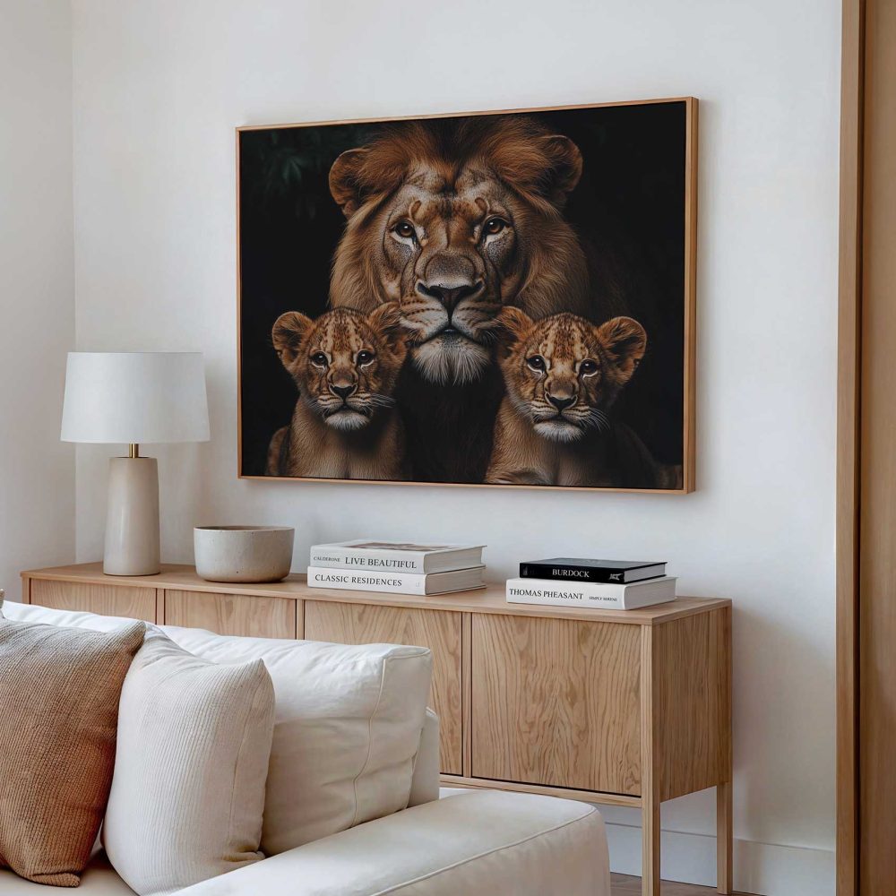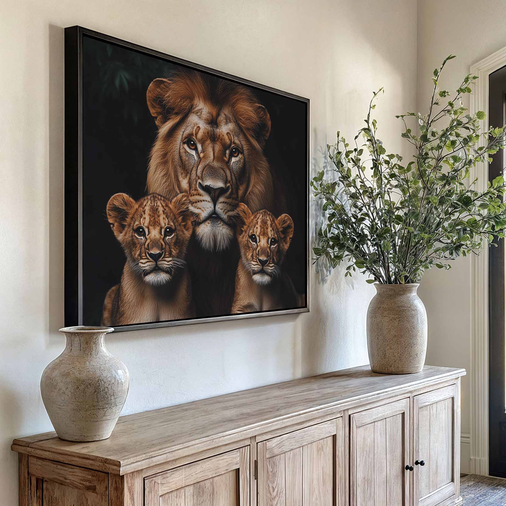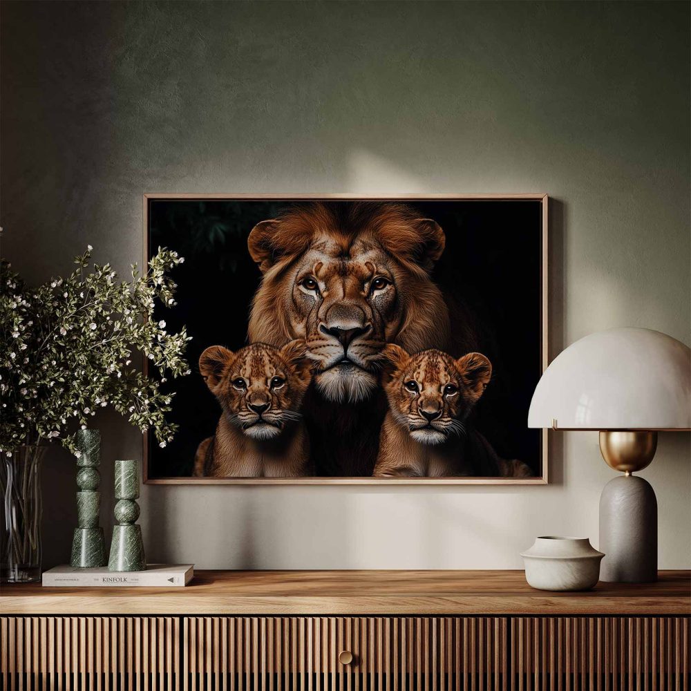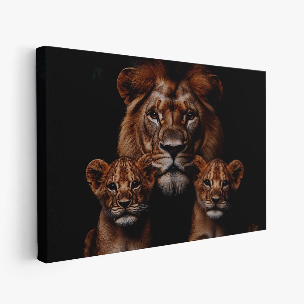 Terug naar collectie / Schilderijen / Dieren Schilderij / Majestueuze leeuwenfamilie in donker