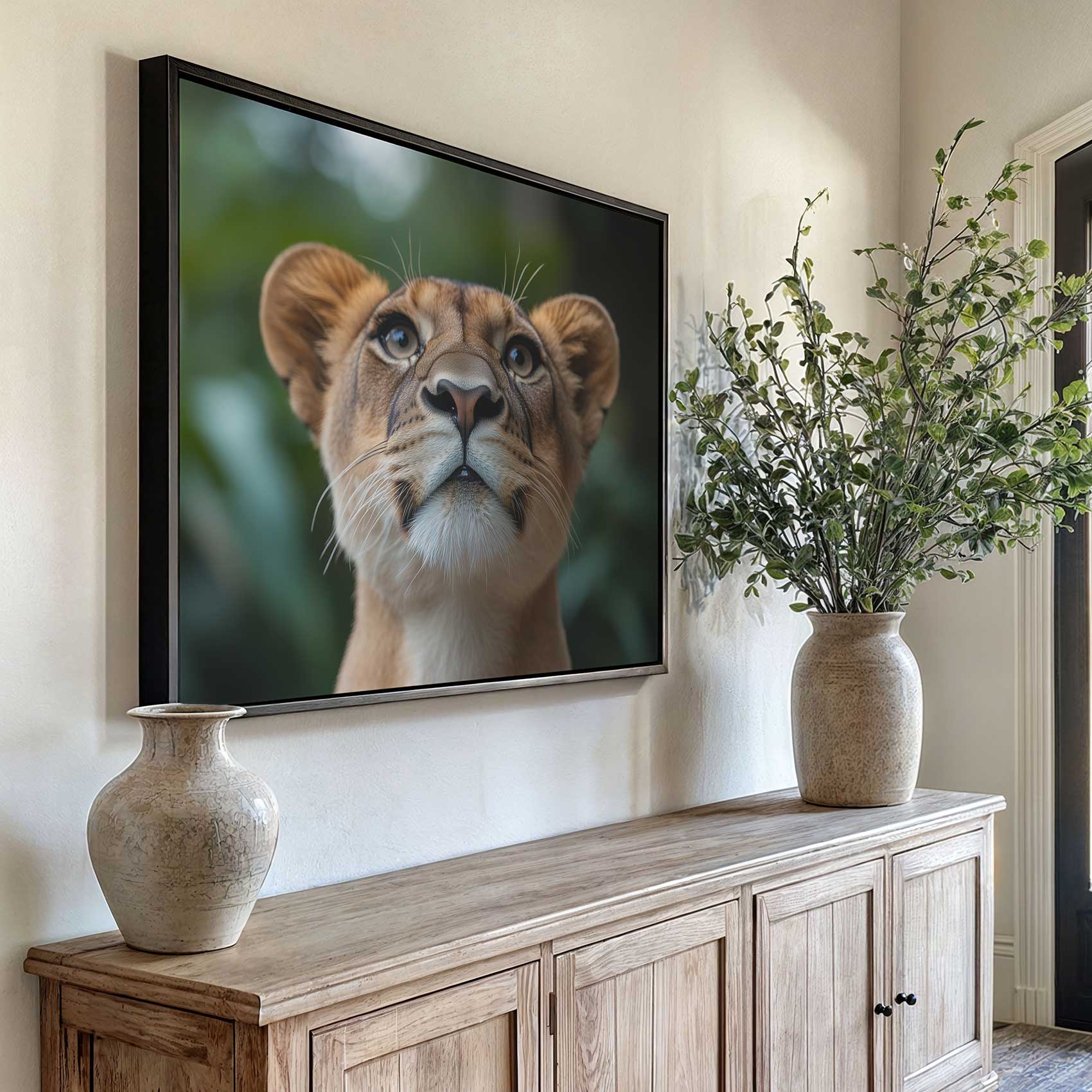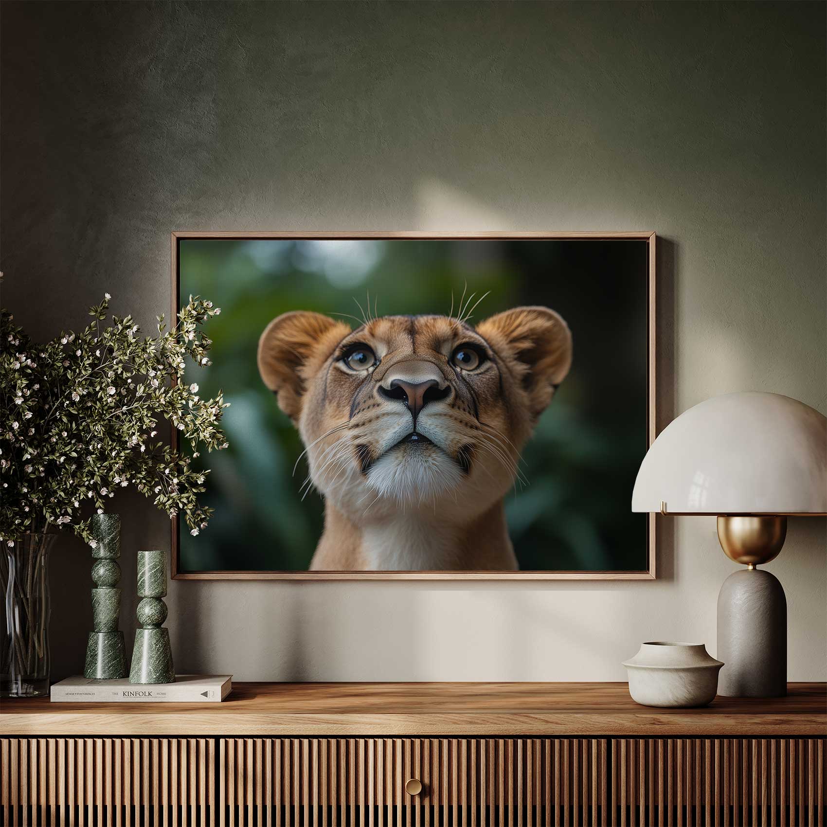Terug naar collectie / Schilderijen / Dieren Schilderij / Majestueuze leeuwin close-up