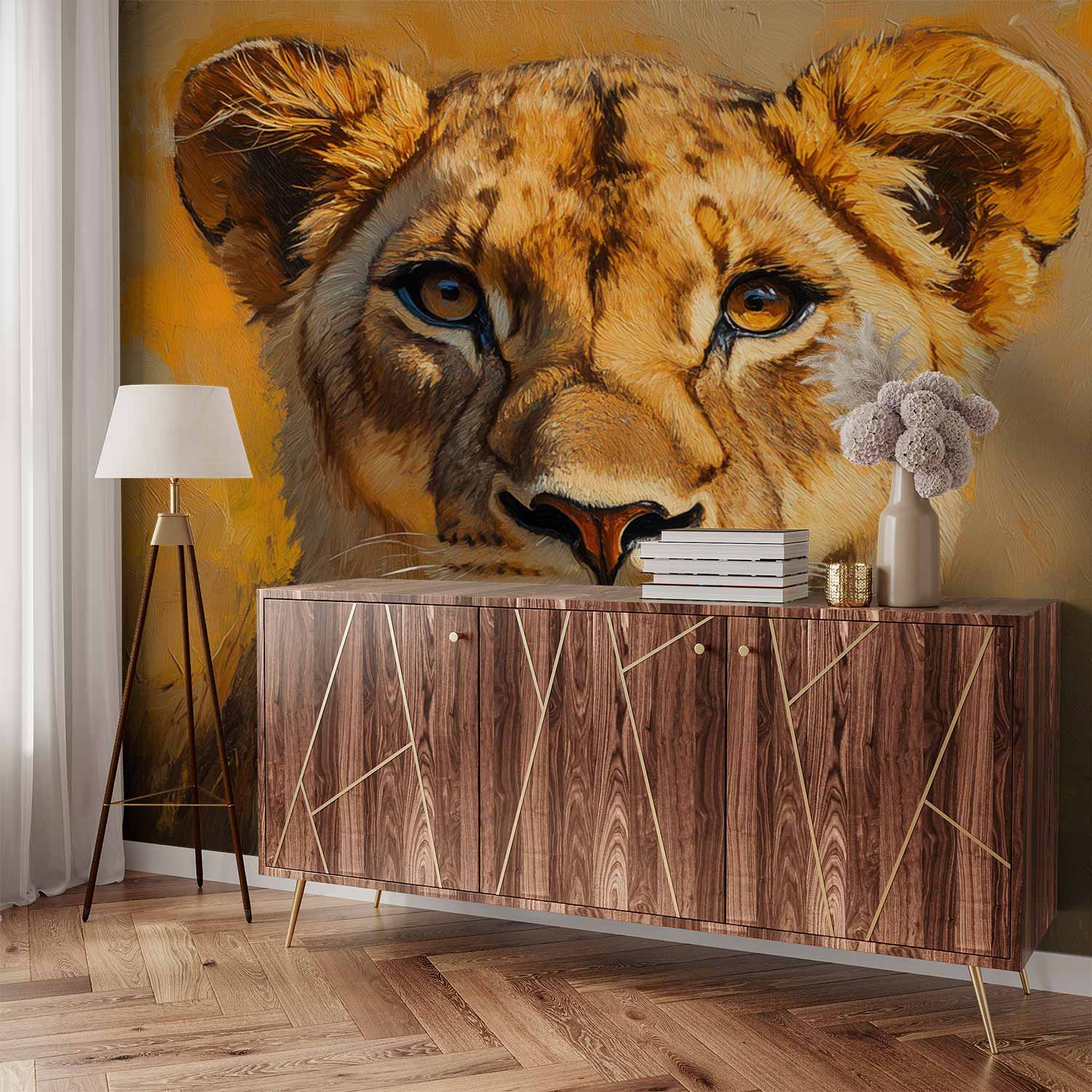 Terug naar collectie / Behang / Majestueuze leeuwin impressionistische schildering behang