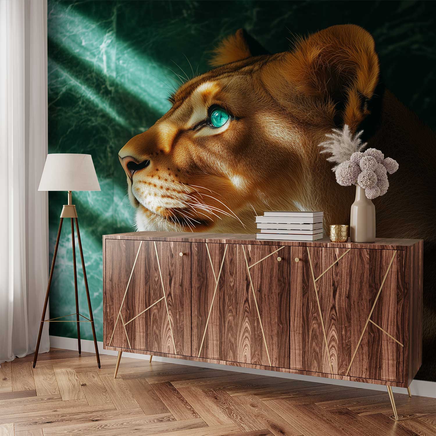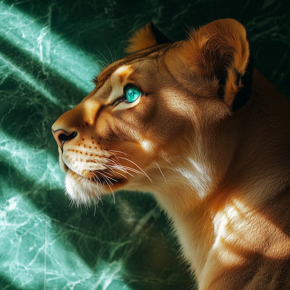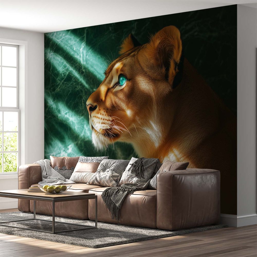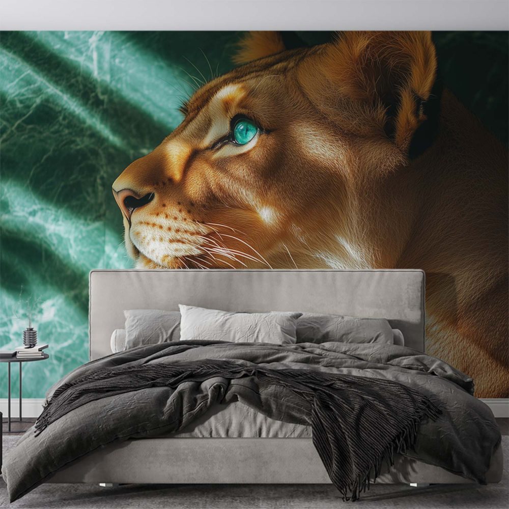 Terug naar collectie / Behang / Majestueuze leeuwin met blauwe ogen behang