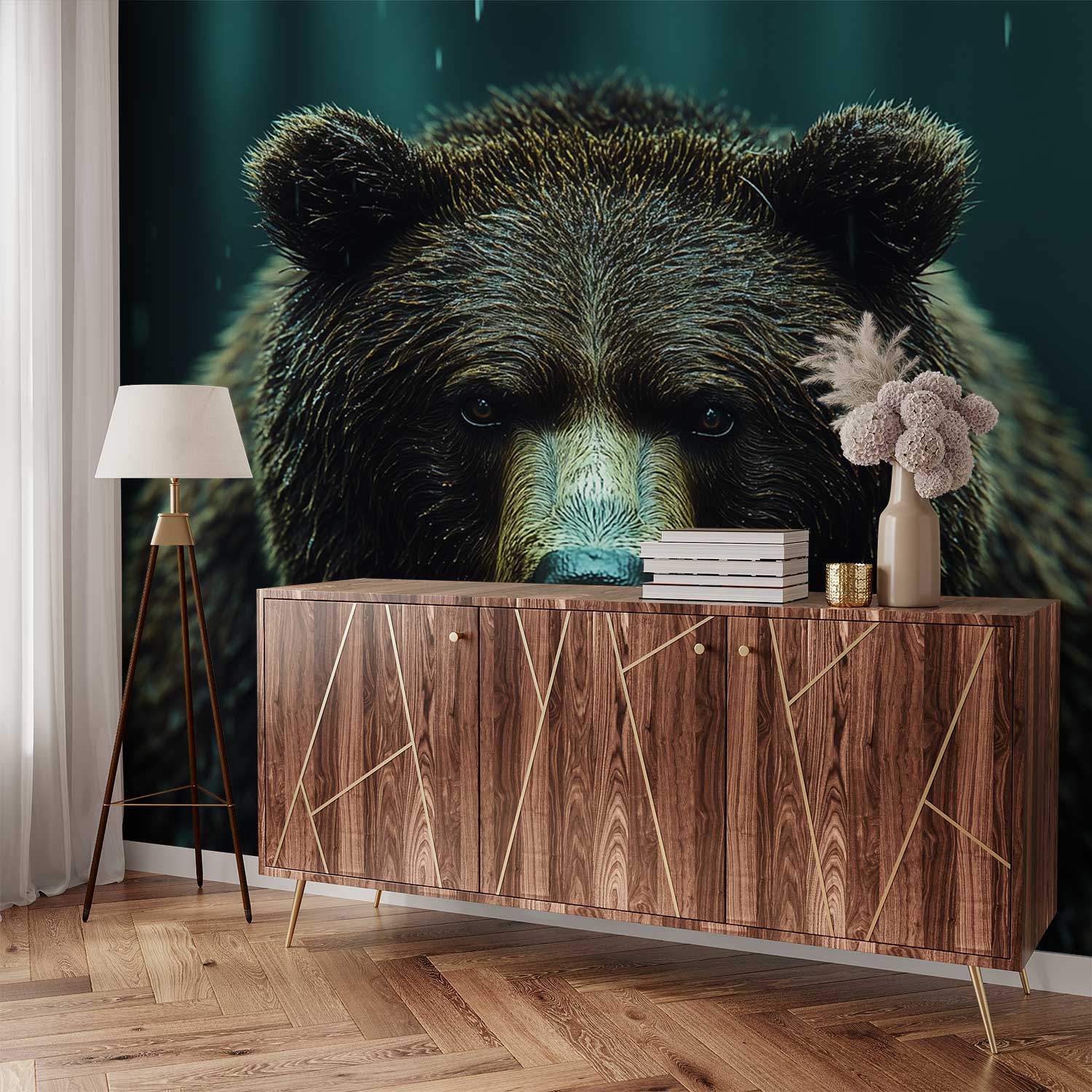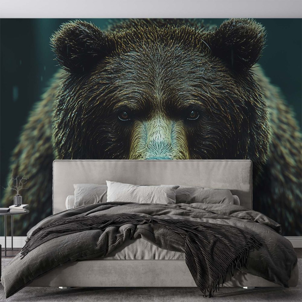 Majestueuze natte bruine beer behang