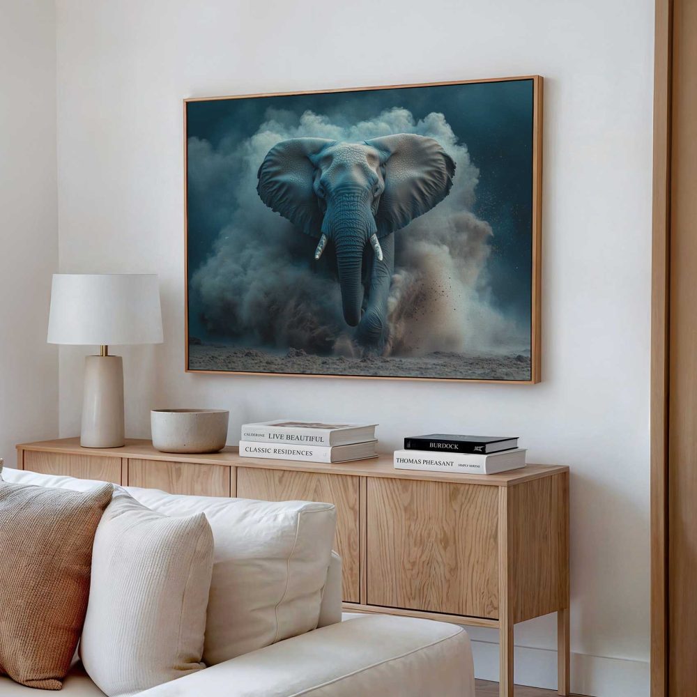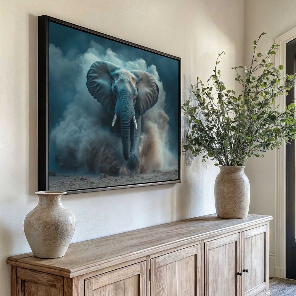 Terug naar collectie / Schilderijen / Dieren Schilderij / Majestueuze olifant in actie