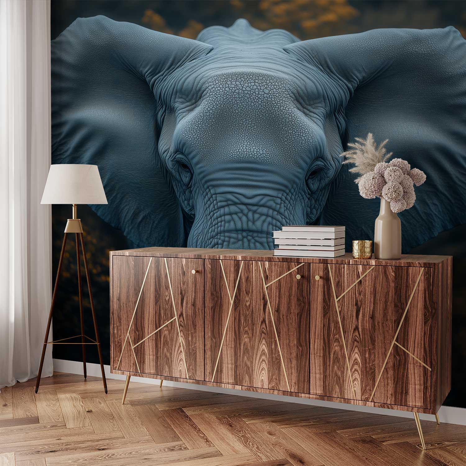 Terug naar collectie / Behang / Majestueuze Olifant in Bloemenveld behang