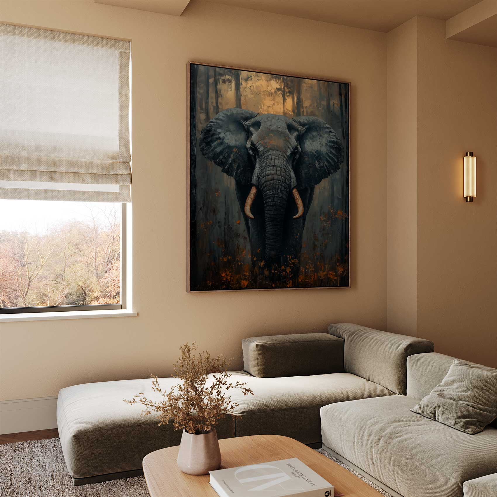 Terug naar collectie / Schilderijen / Bossen Schilderij / Majestueuze olifant in oerwoud