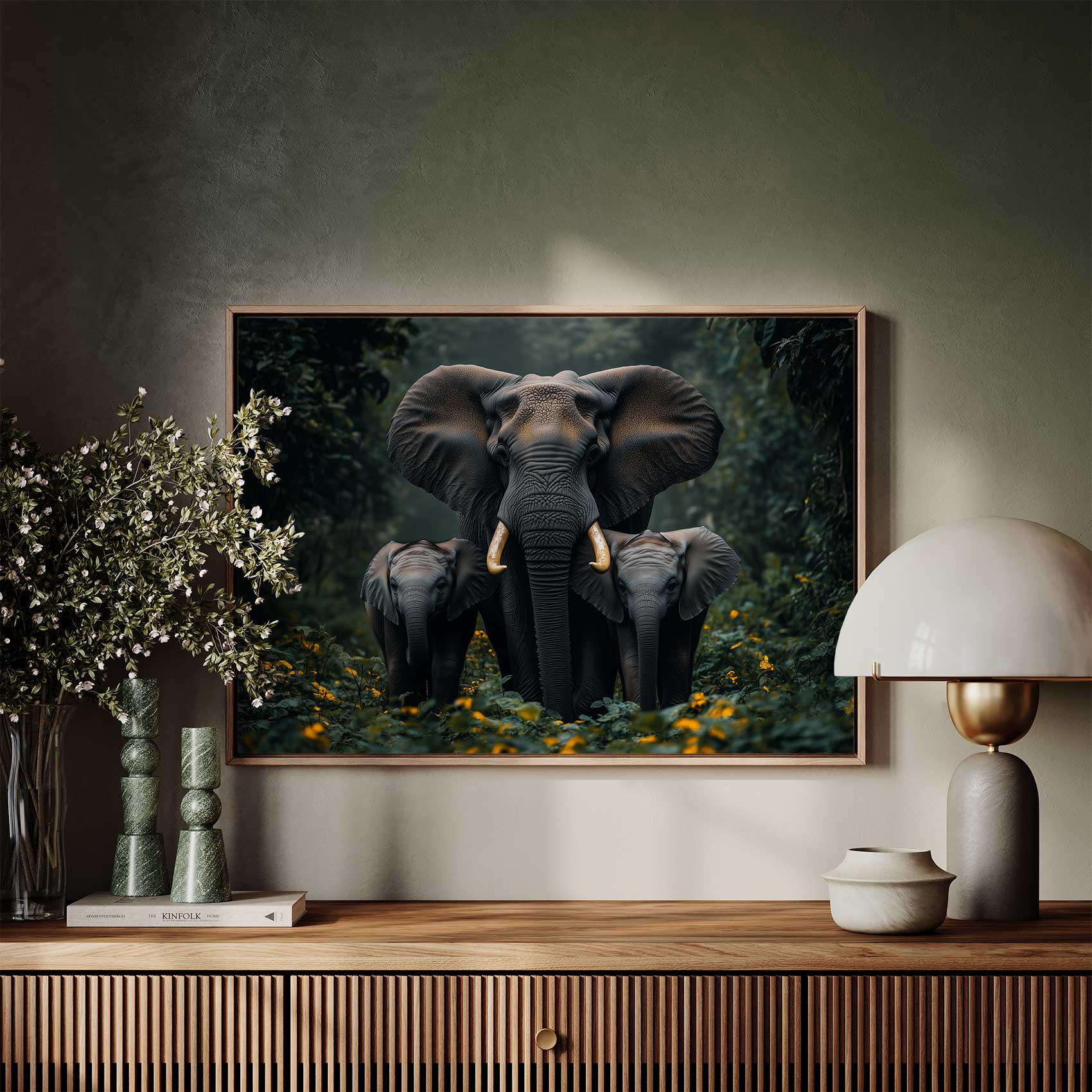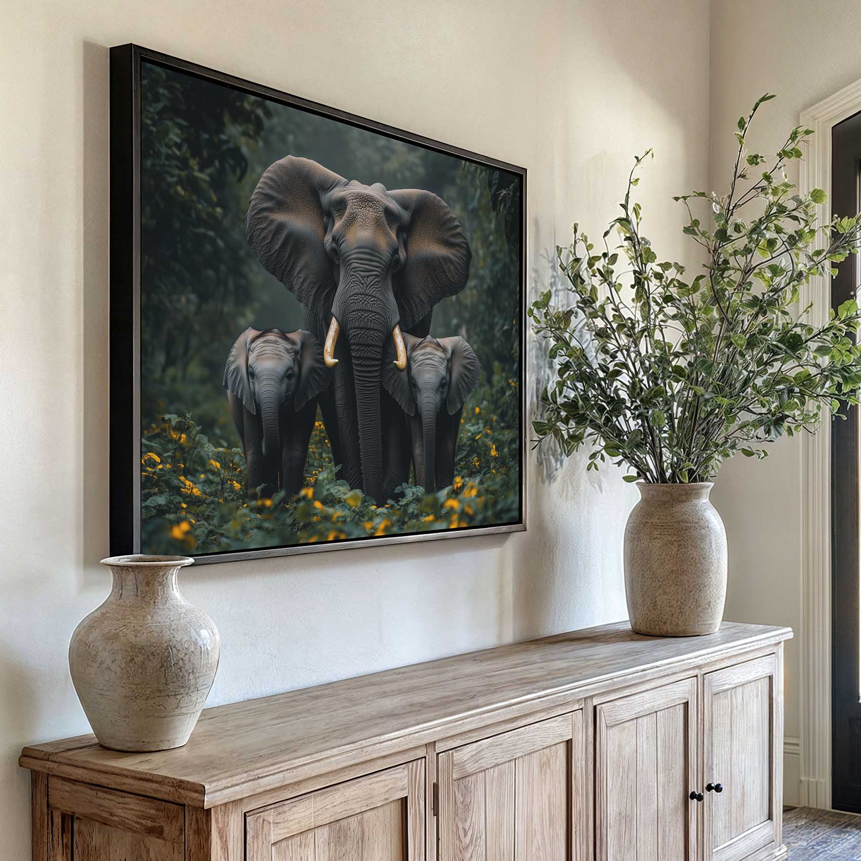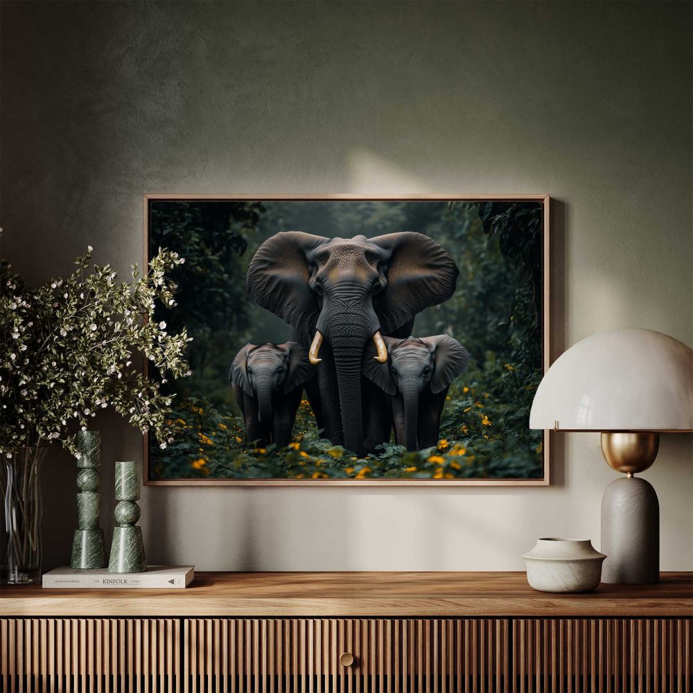 Terug naar collectie / Schilderijen / Bloemen Schilderij / Majestueuze olifant in oerwoud