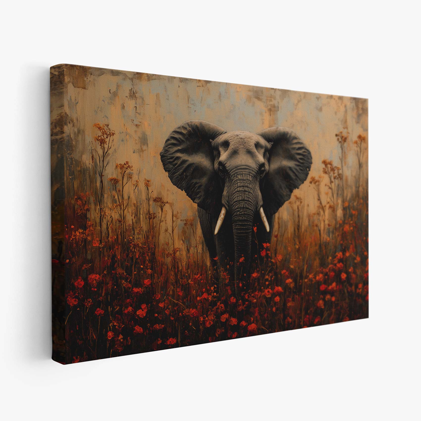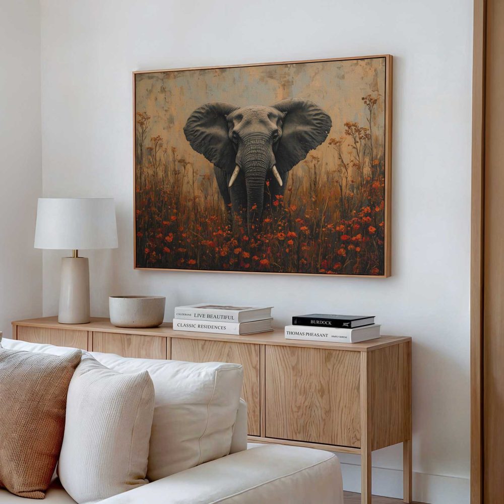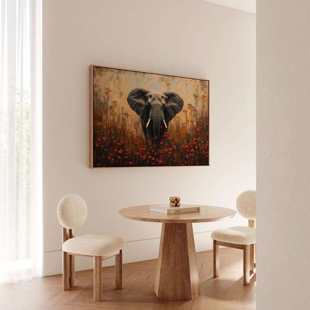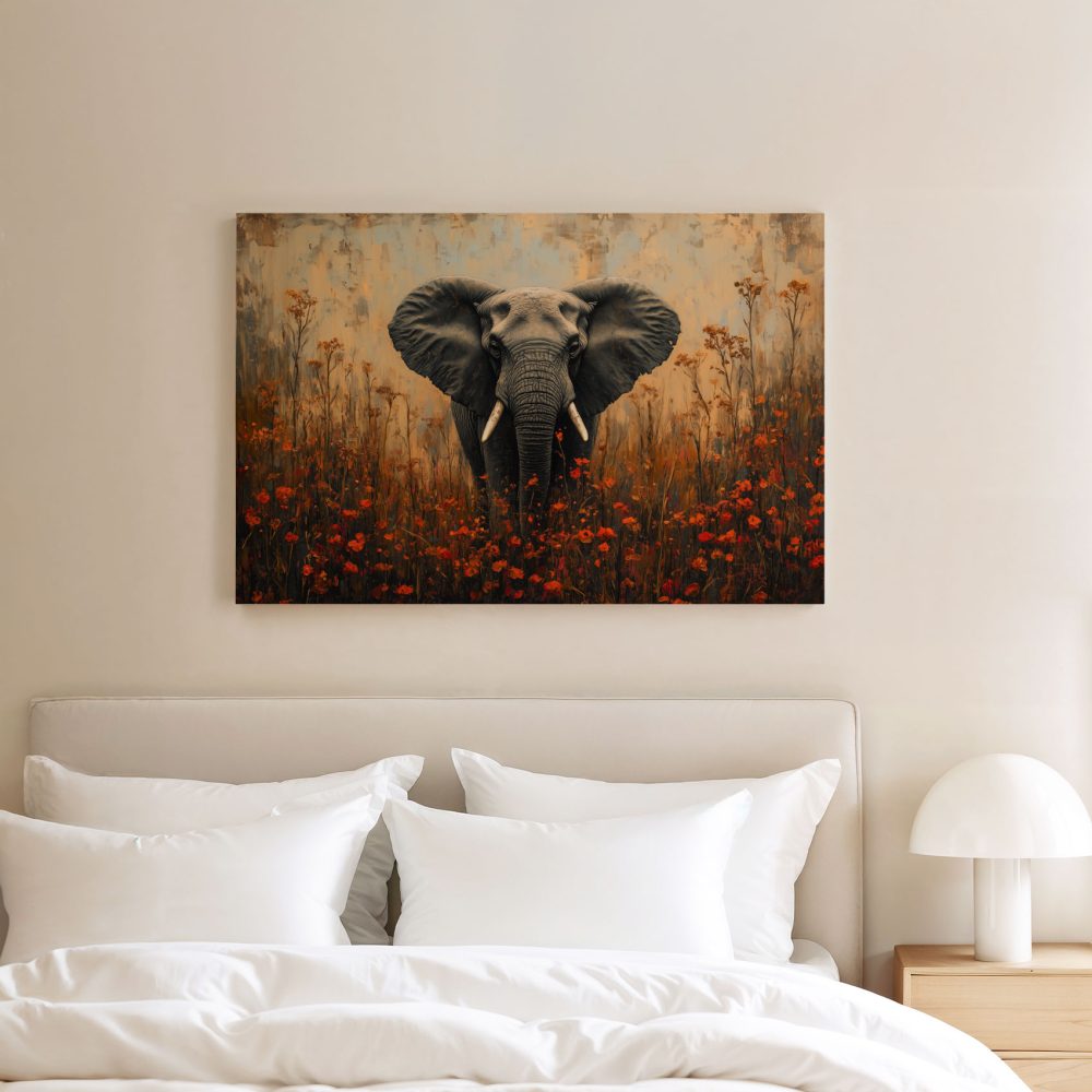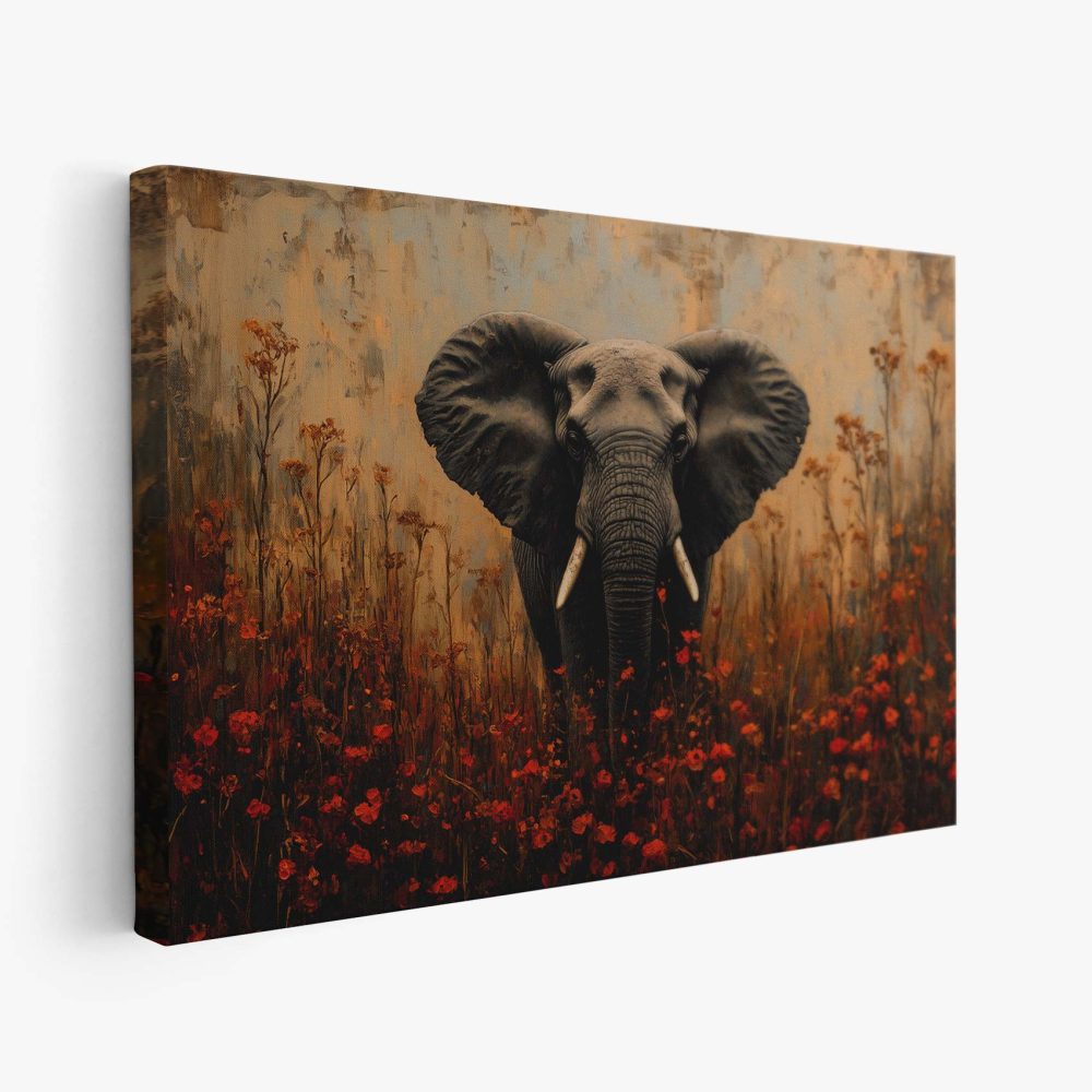 Terug naar collectie / Schilderijen / Bloemen Schilderij / Majestueuze olifant tussen bloemen