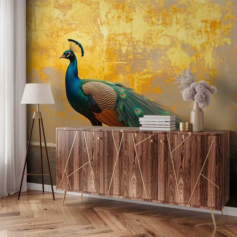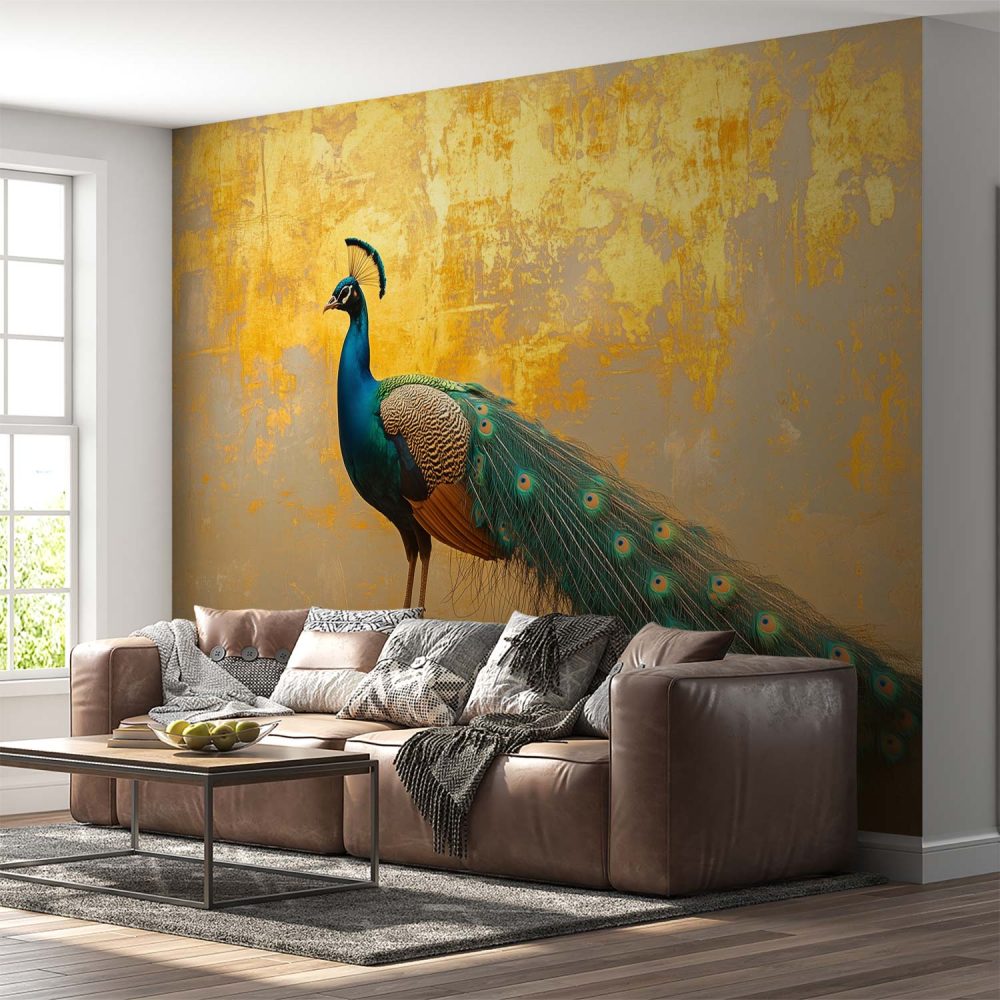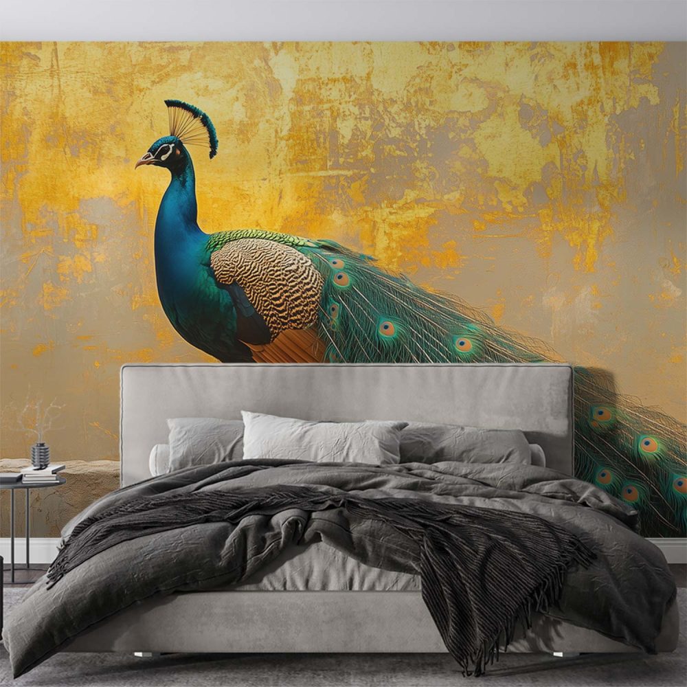 Majestueuze pauw met prachtige staart behang