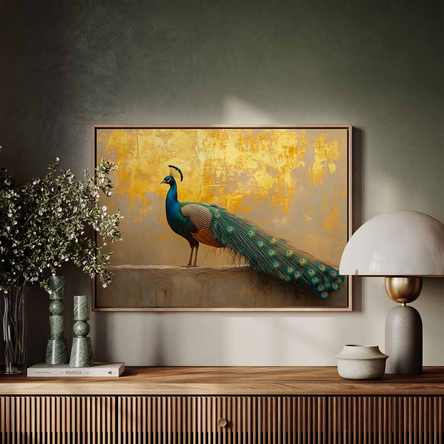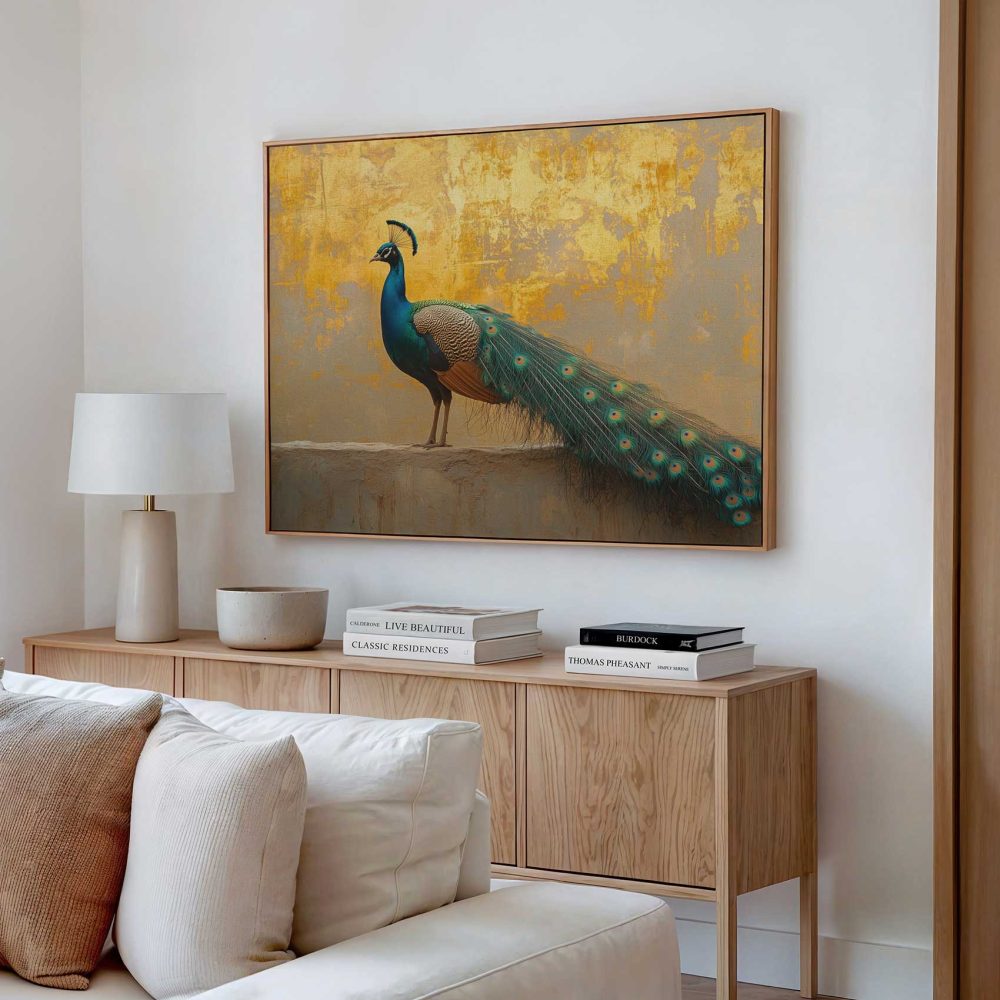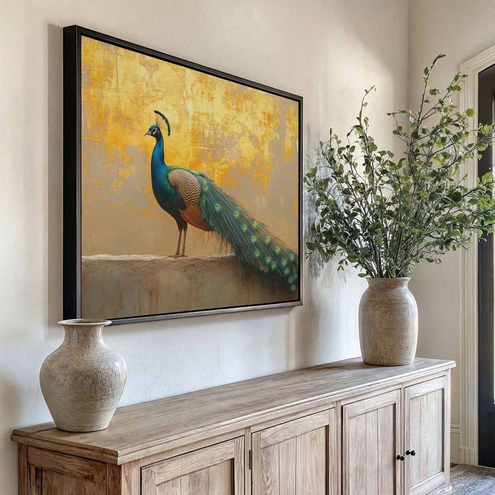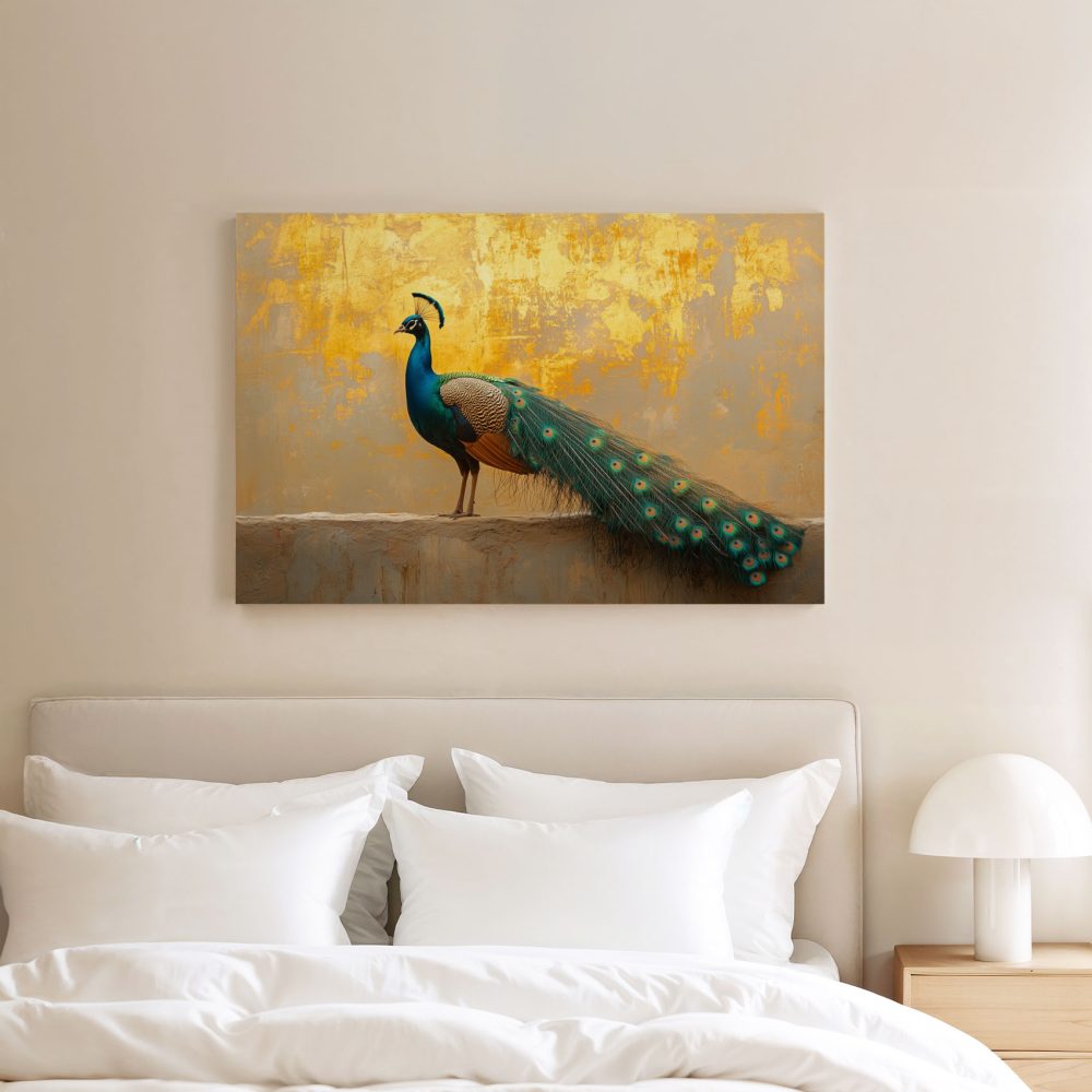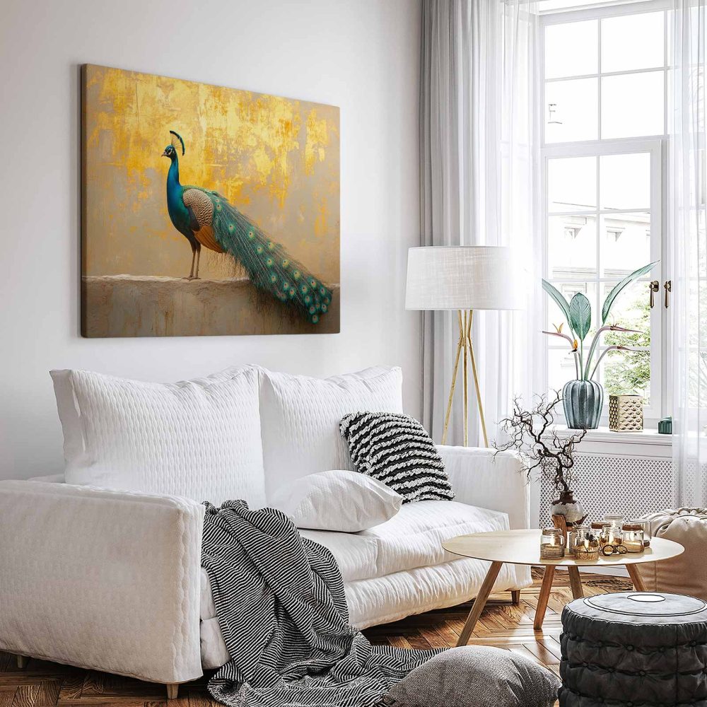 Terug naar collectie / Schilderijen / Dieren Schilderij / Majestueuze pauw op gevel