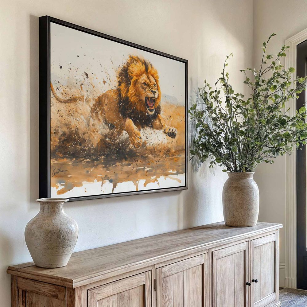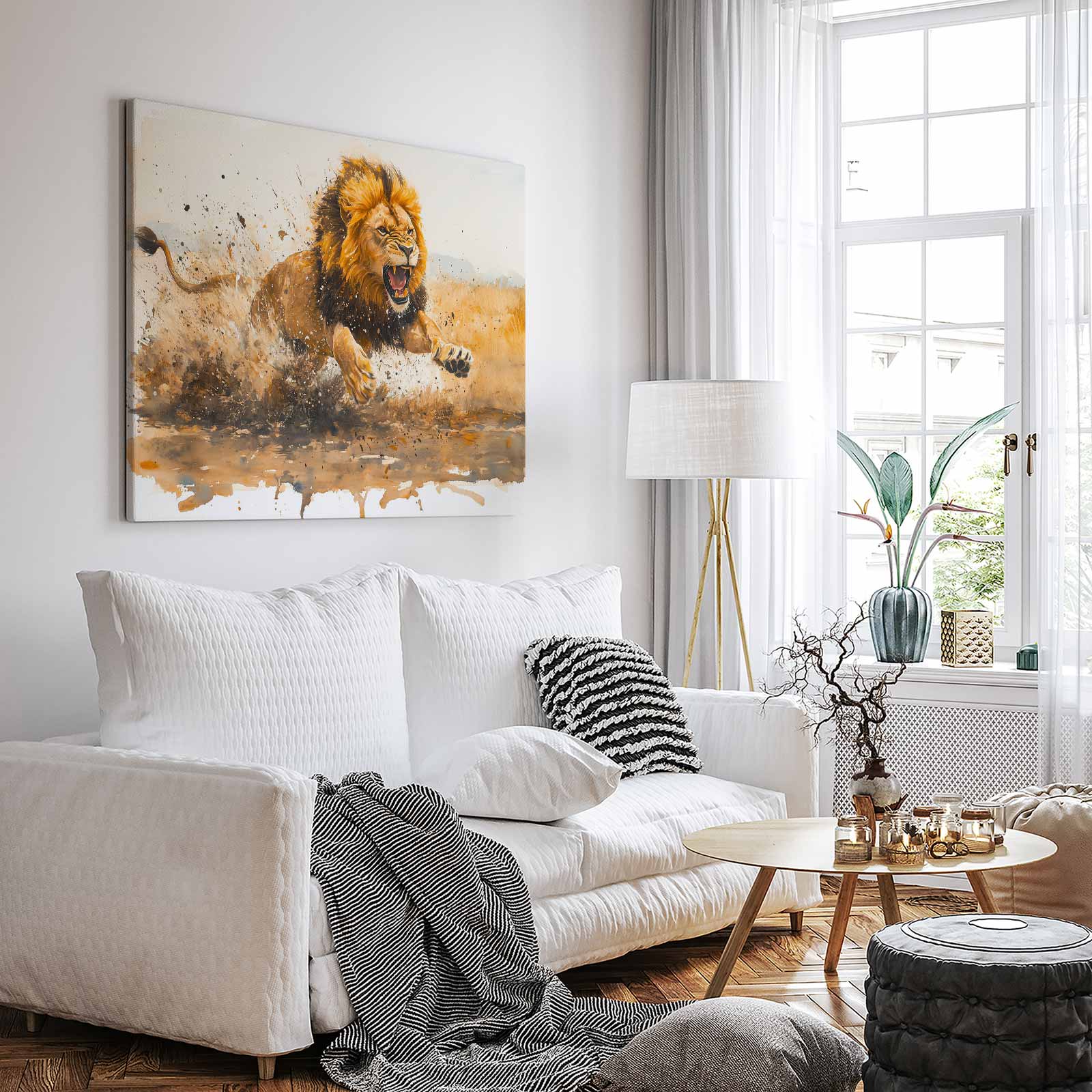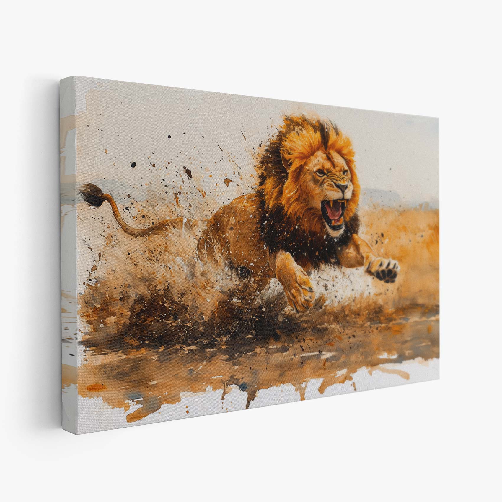 Terug naar collectie / Schilderijen / Dieren Schilderij / Majestueuze rennende leeuw