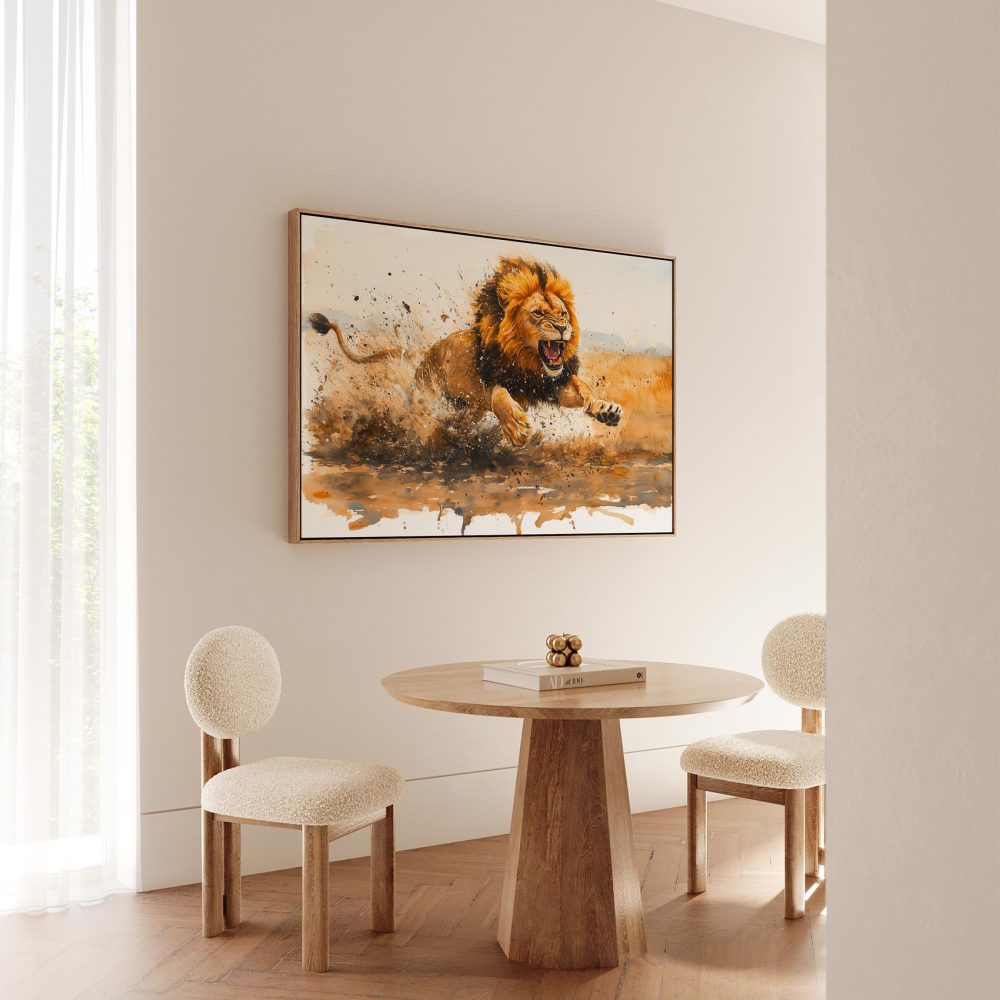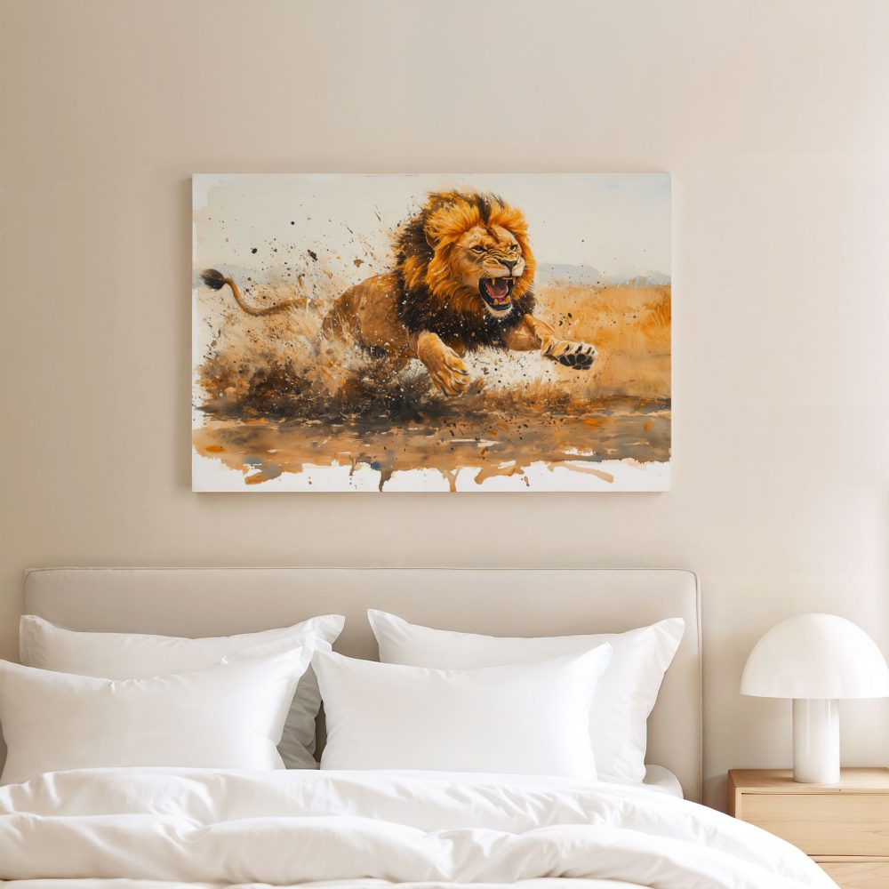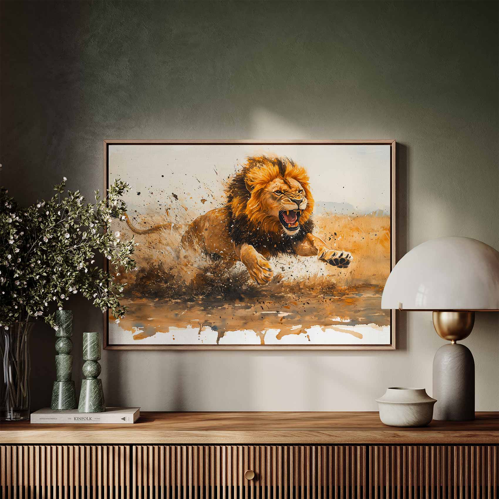 Terug naar collectie / Schilderijen / Dieren Schilderij / Majestueuze rennende leeuw