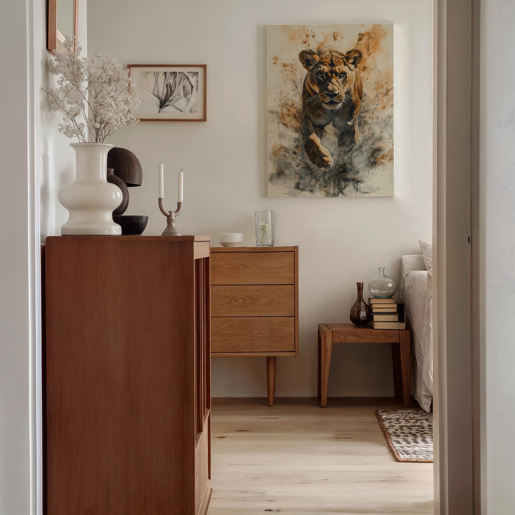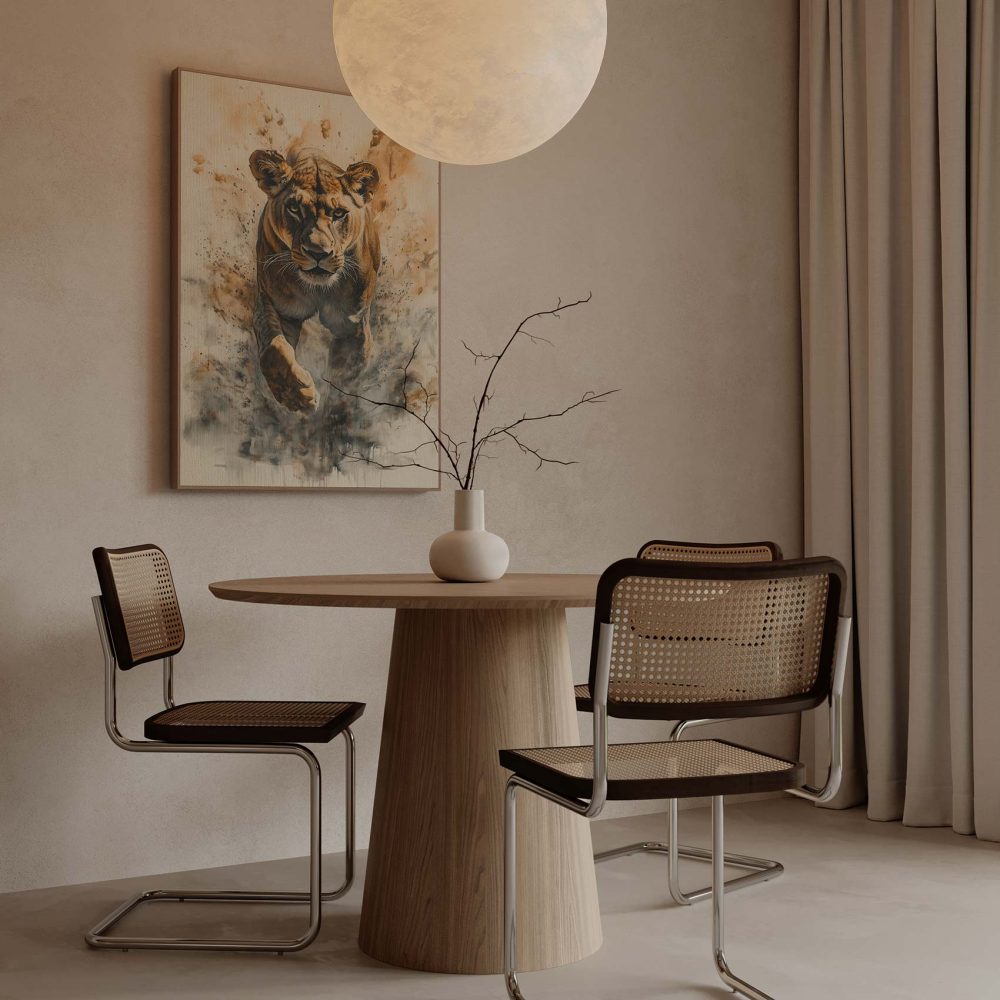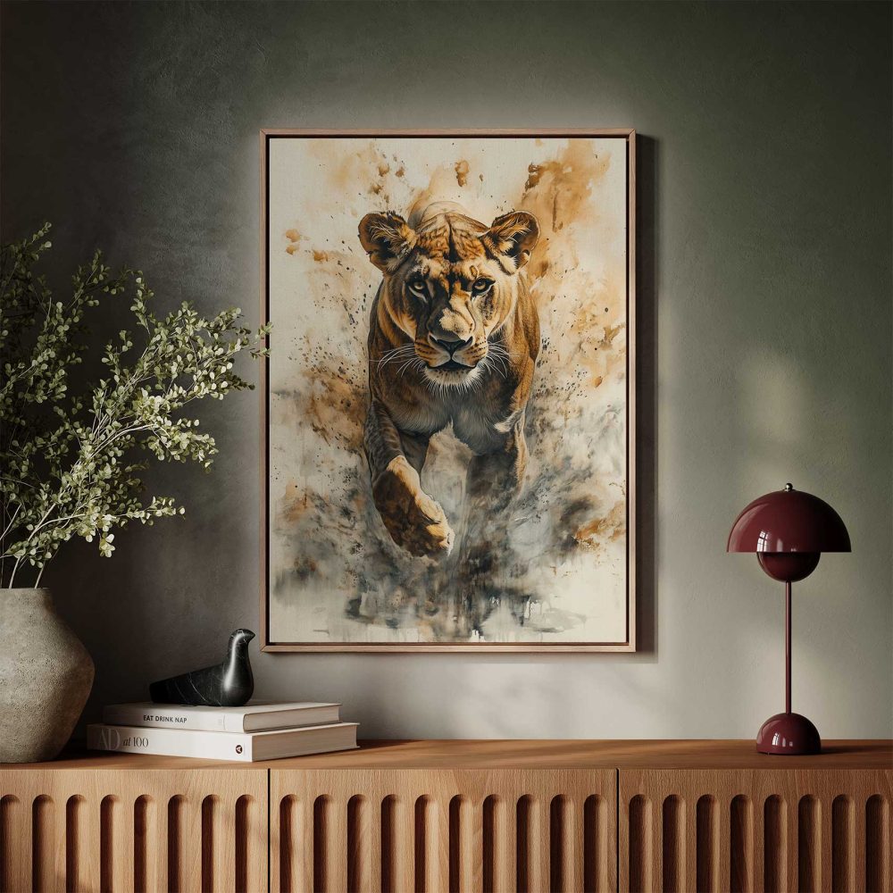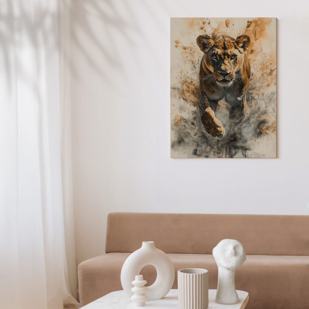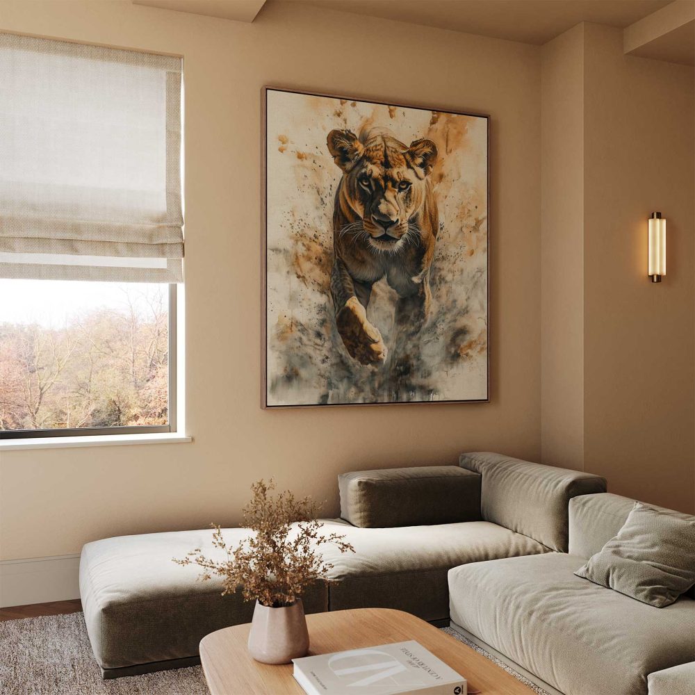 Terug naar collectie / Schilderijen / Dieren Schilderij / Majestueuze rennende leeuwin