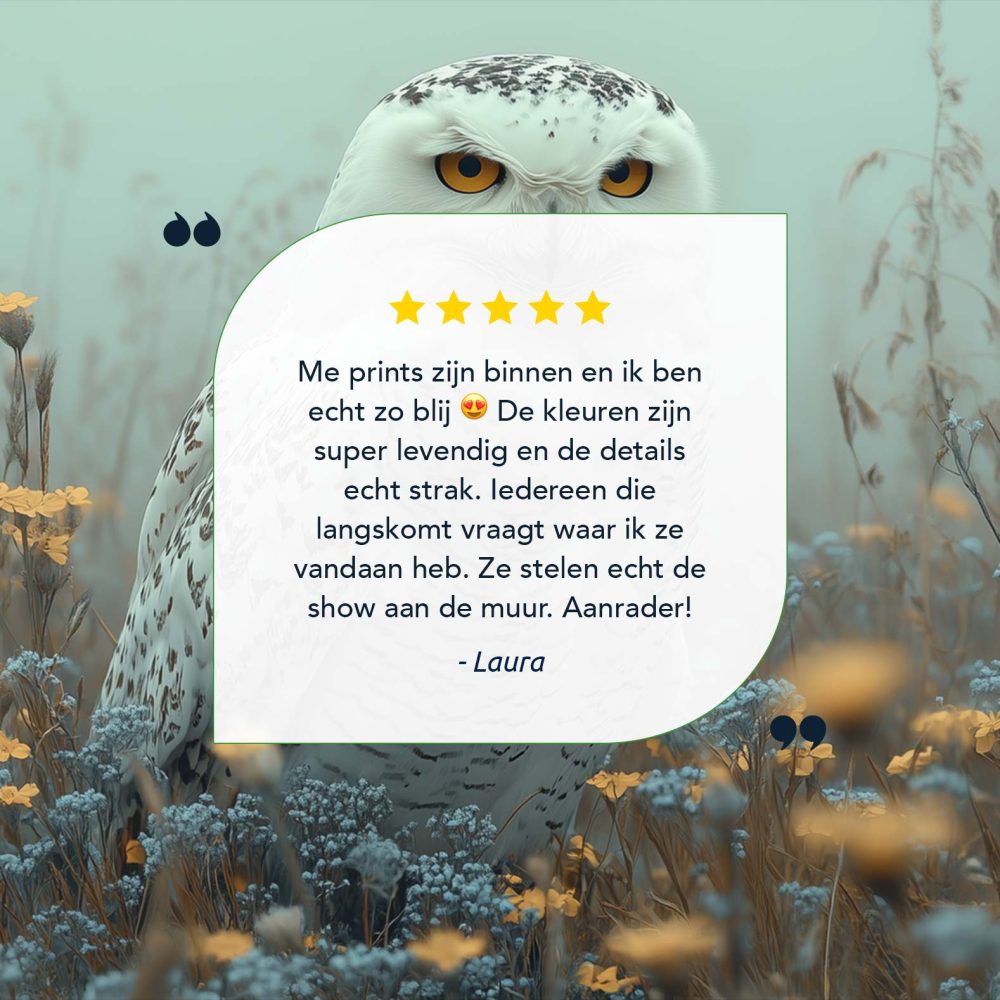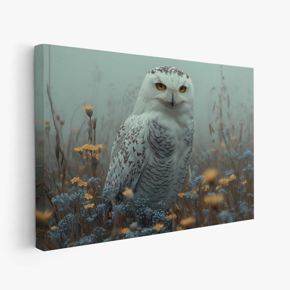 Terug naar collectie / Schilderijen / Bloemen Schilderij / Majestueuze sneeuwuil in bloemenveld
