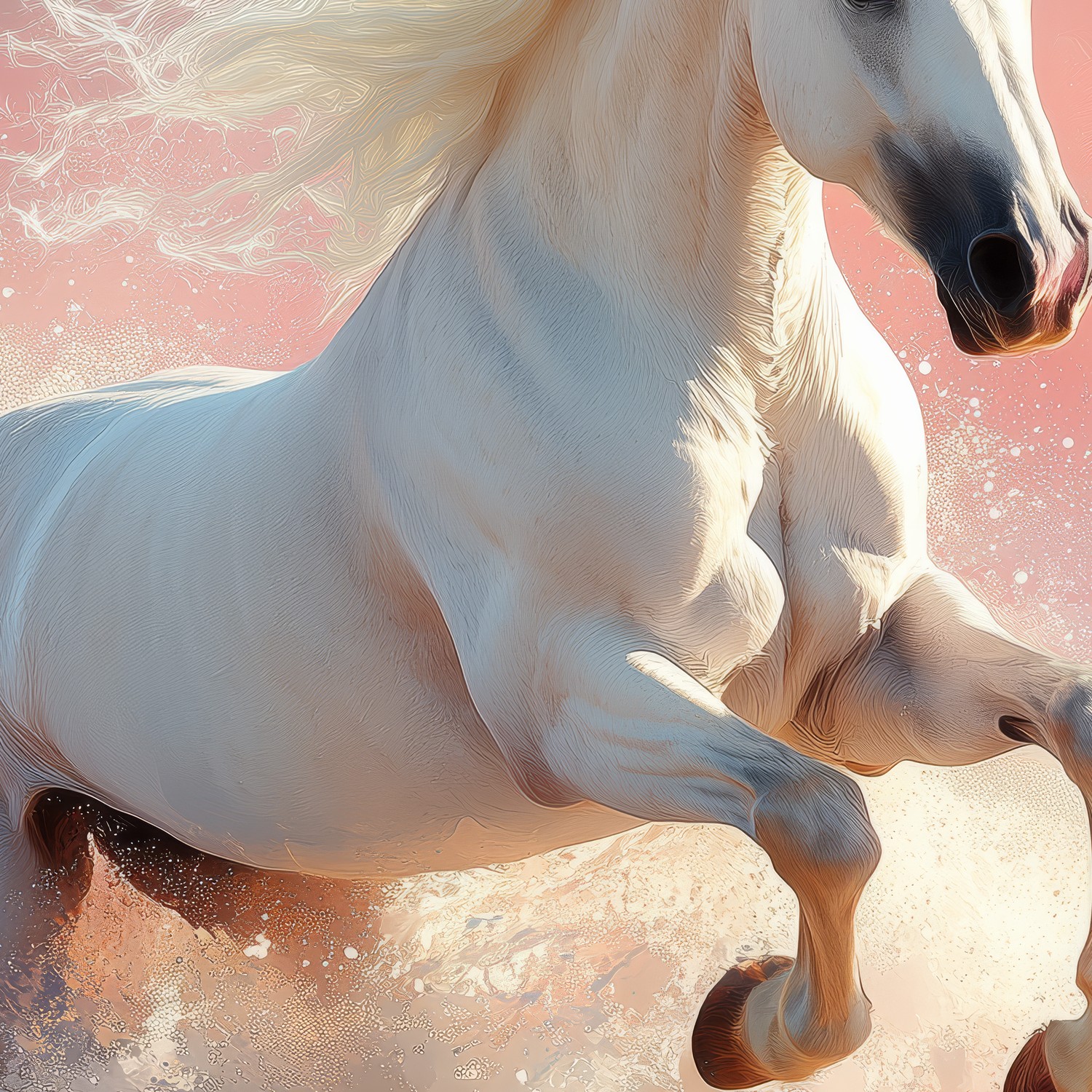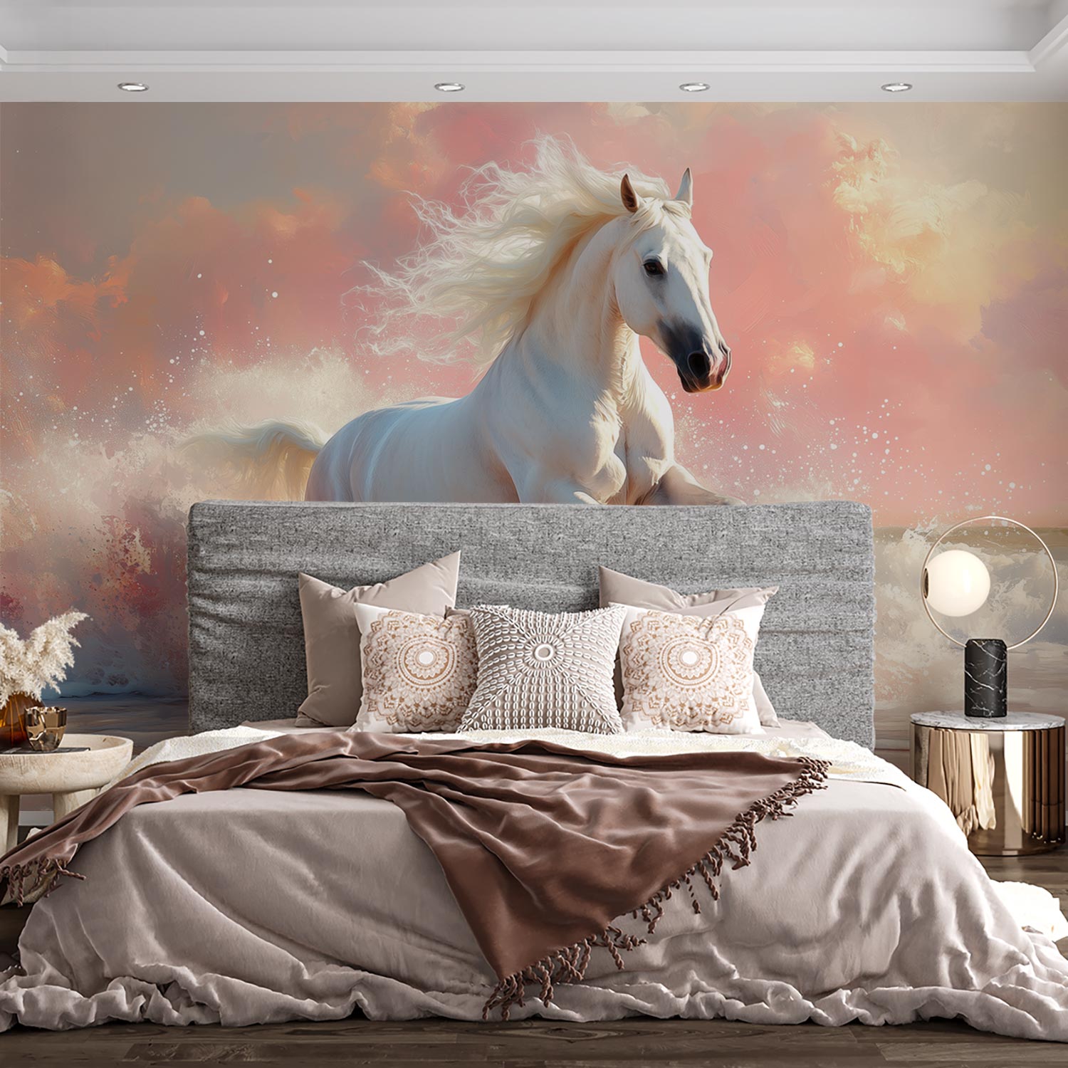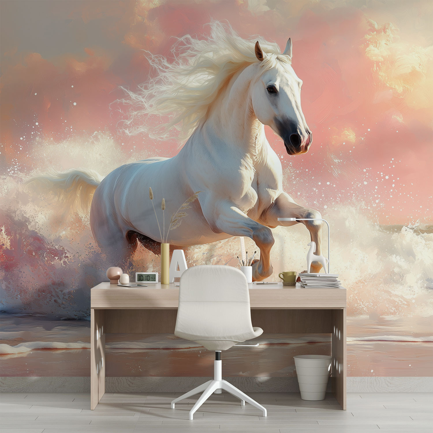 Terug naar collectie / Behang / Majestueuze strandgalopperende witte paard behang
