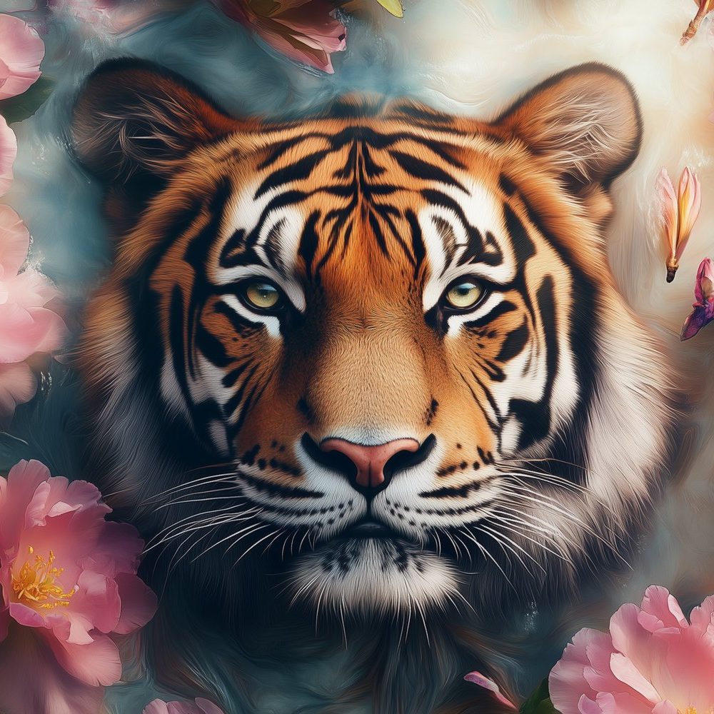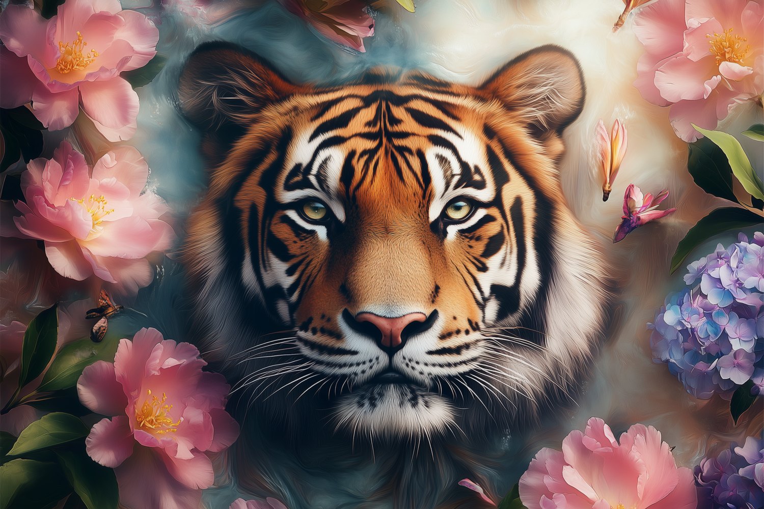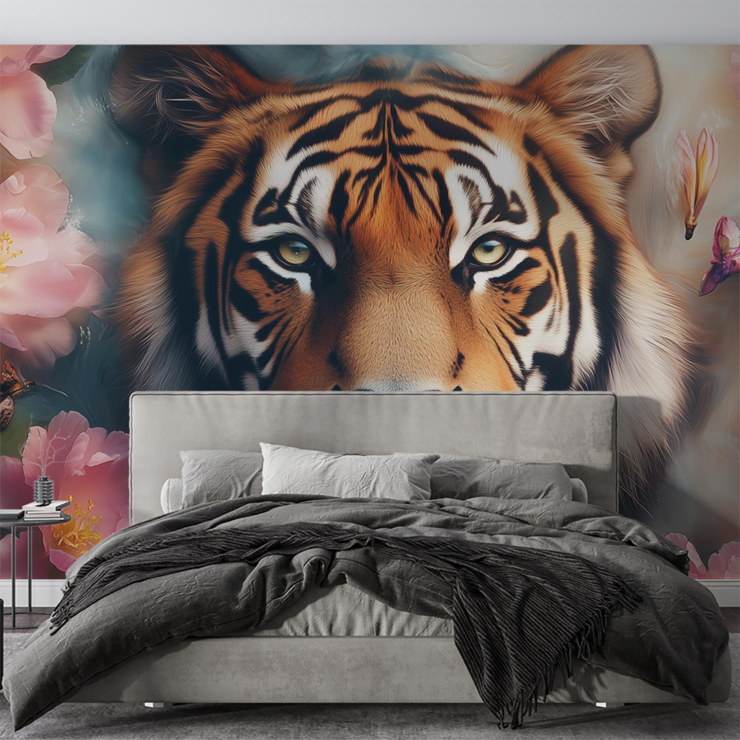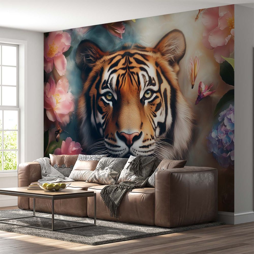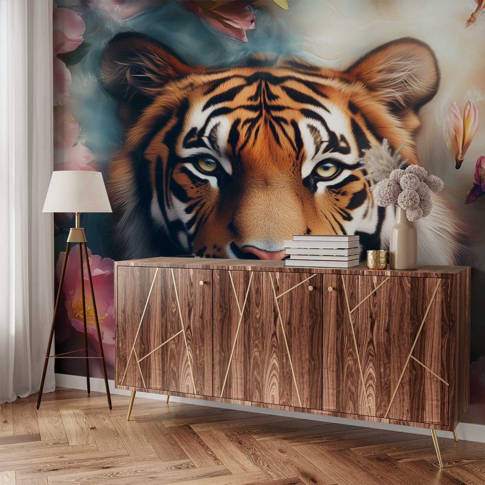 Terug naar collectie / Behang / Majestueuze tijder tussen bloemen behang