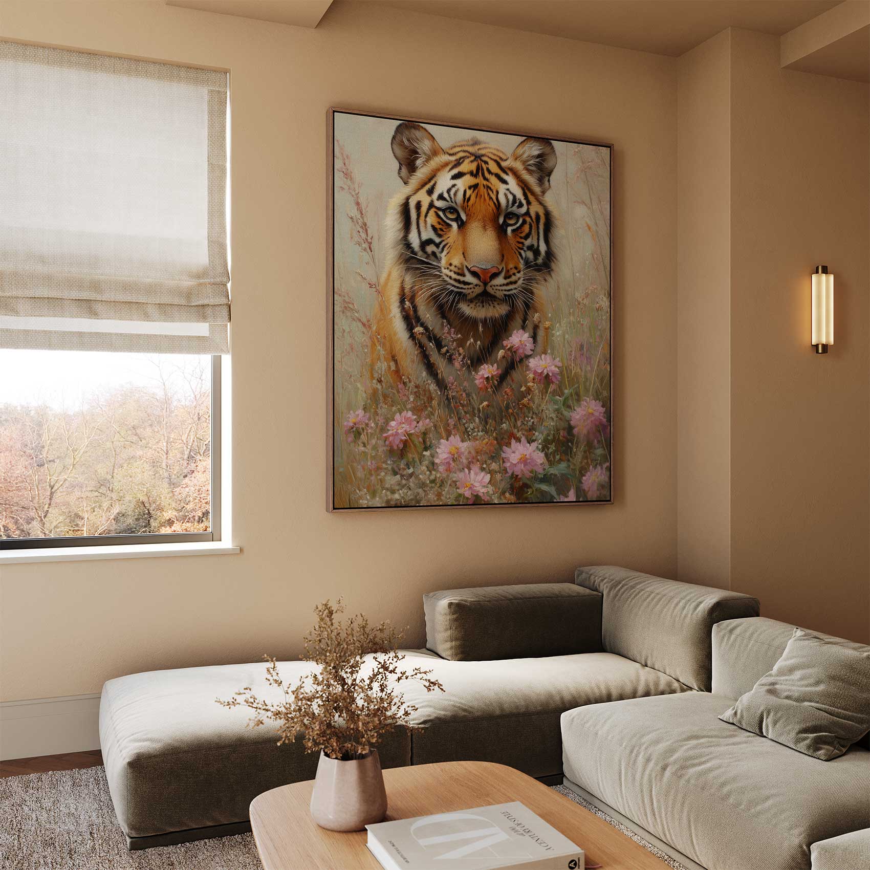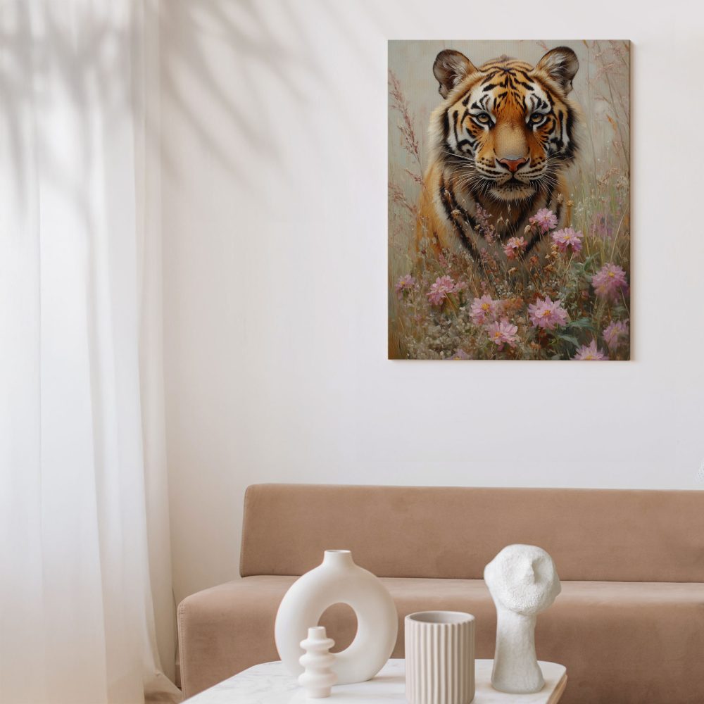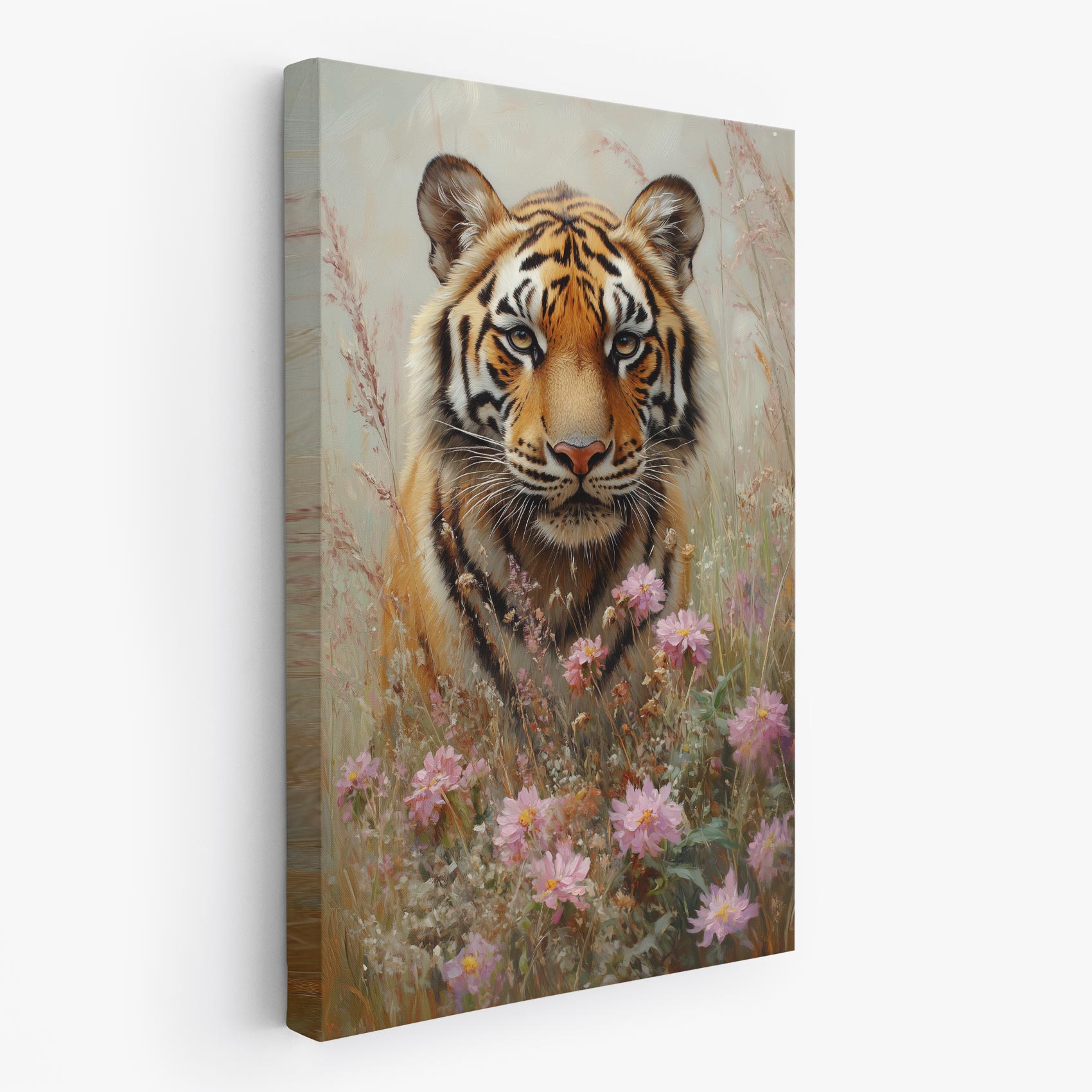 Terug naar collectie / Schilderijen / Bloemen Schilderij / Majestueuze tijger in bloemenveld