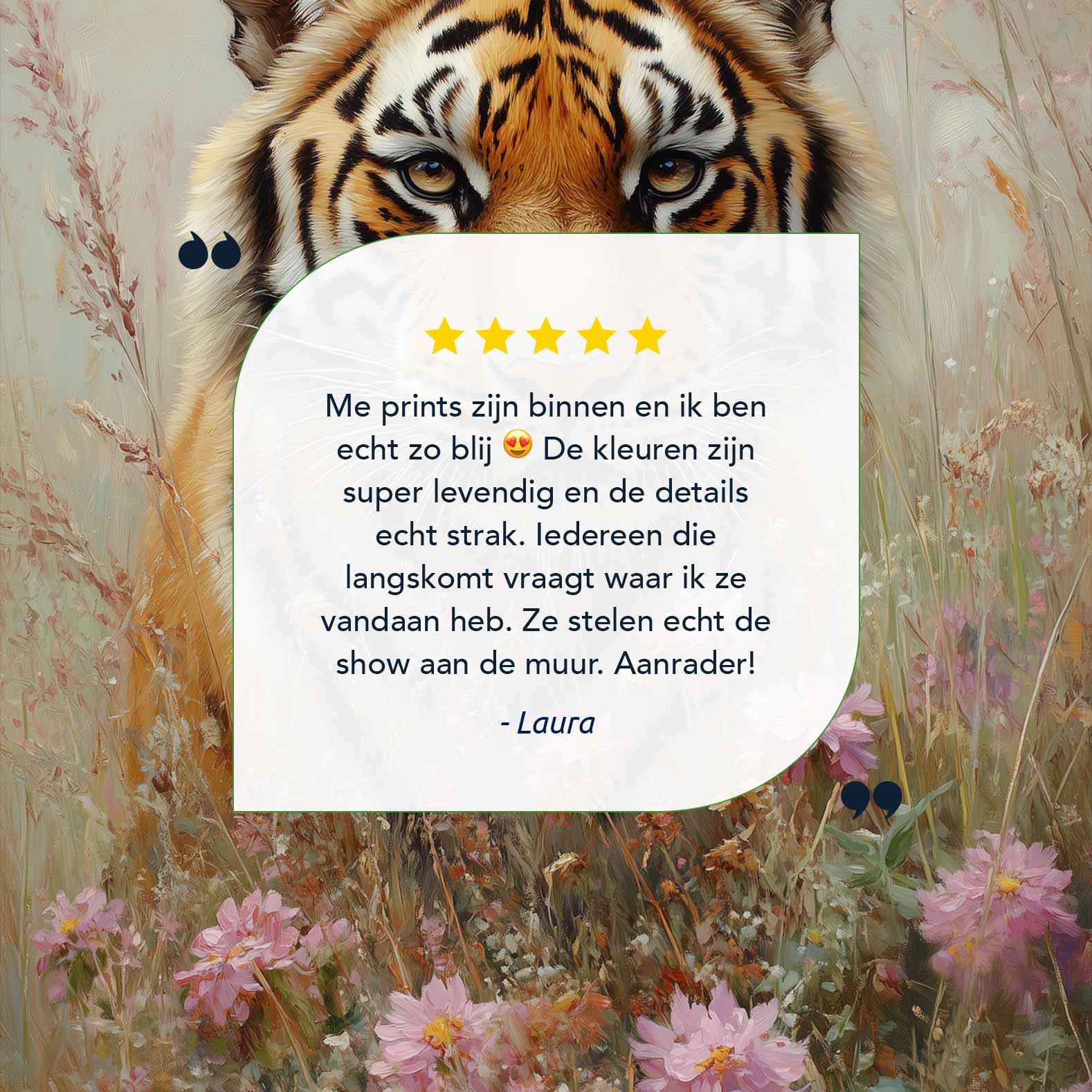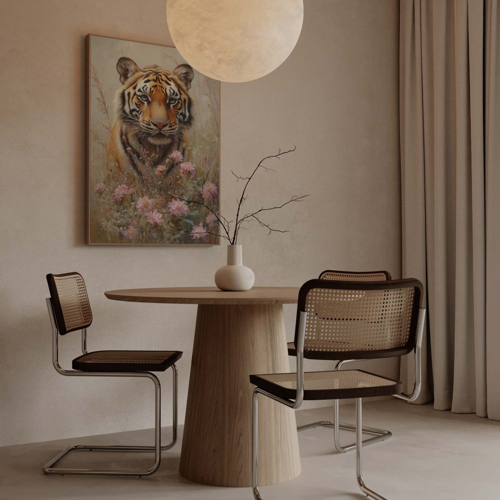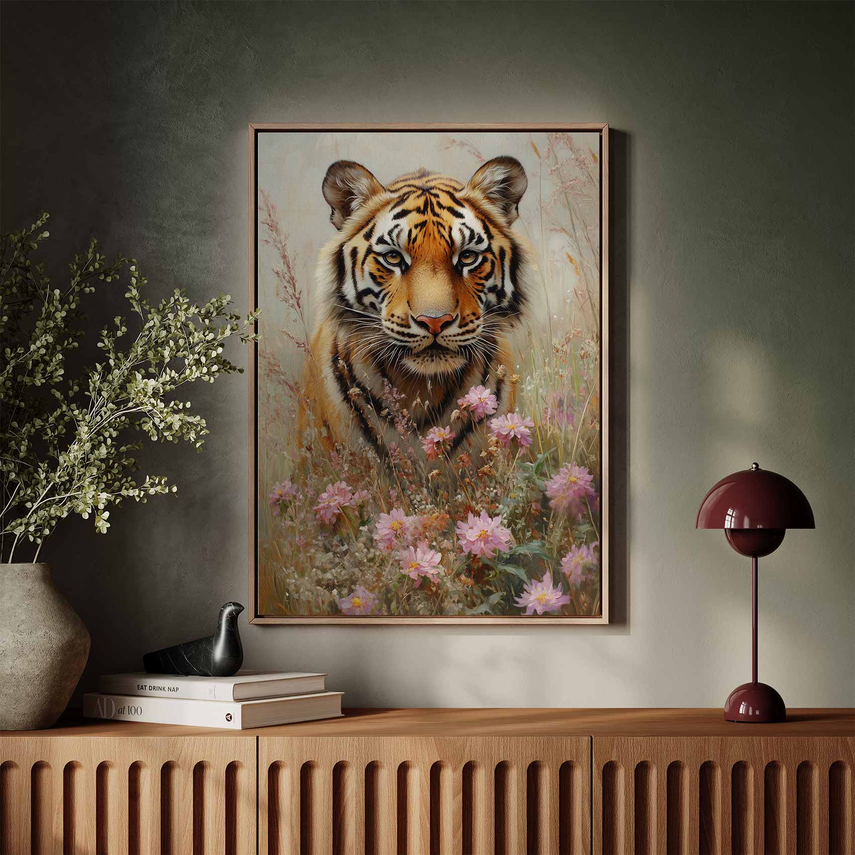 Terug naar collectie / Schilderijen / Bloemen Schilderij / Majestueuze tijger in bloemenveld