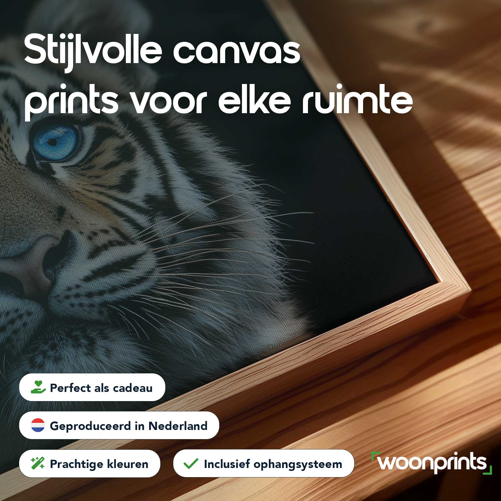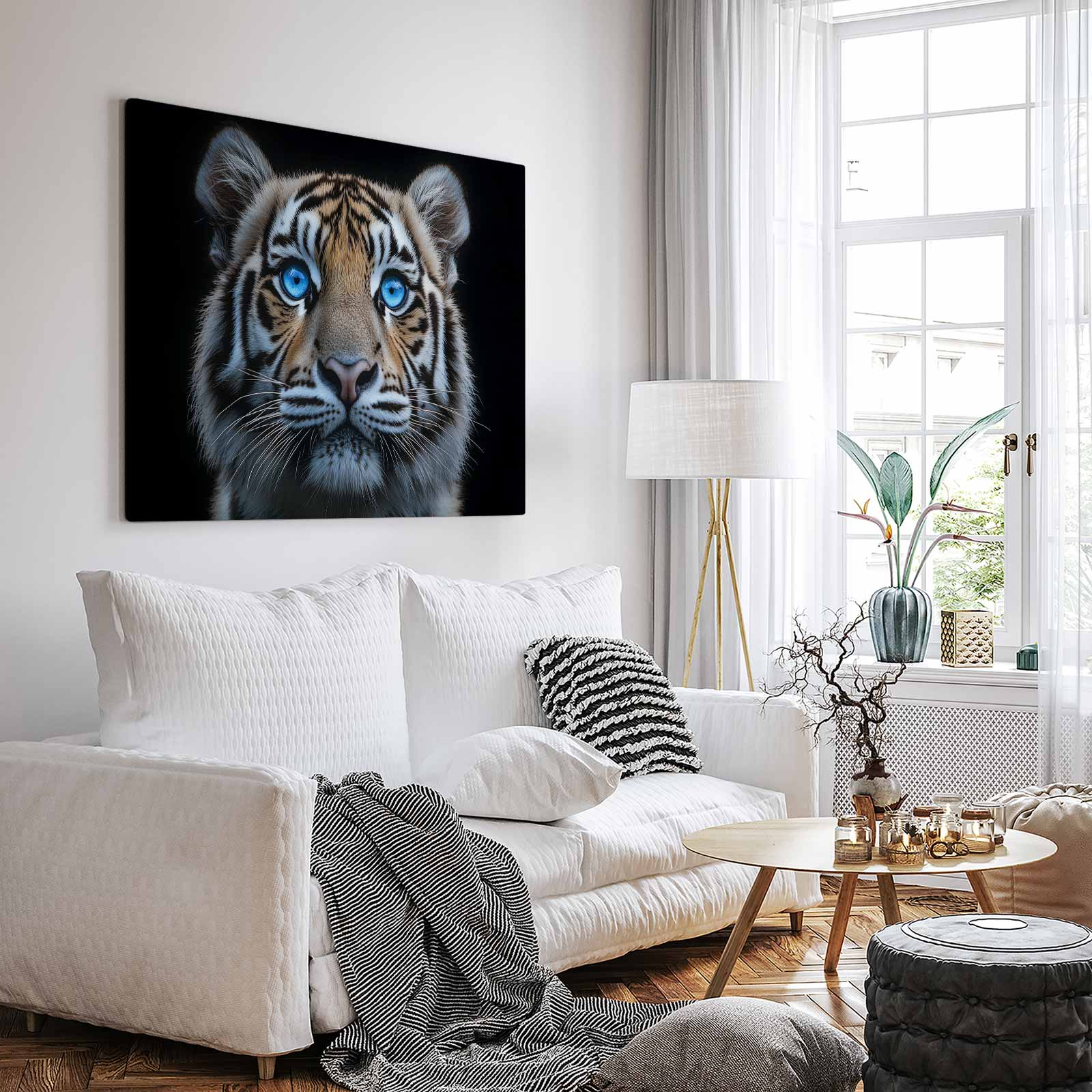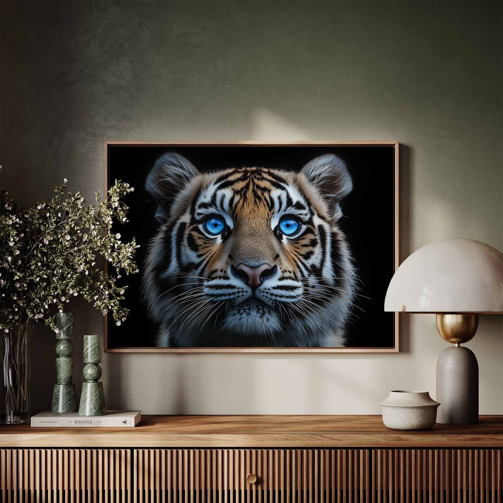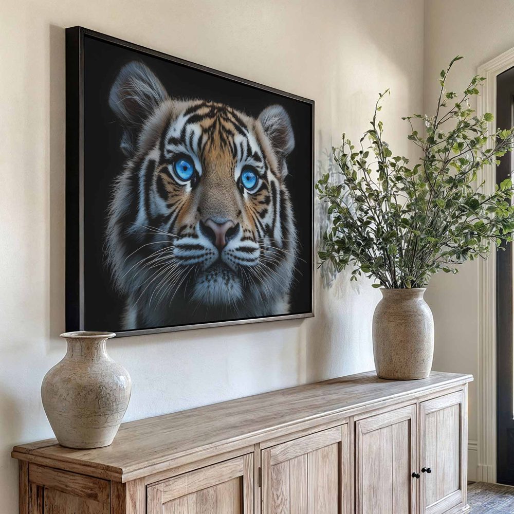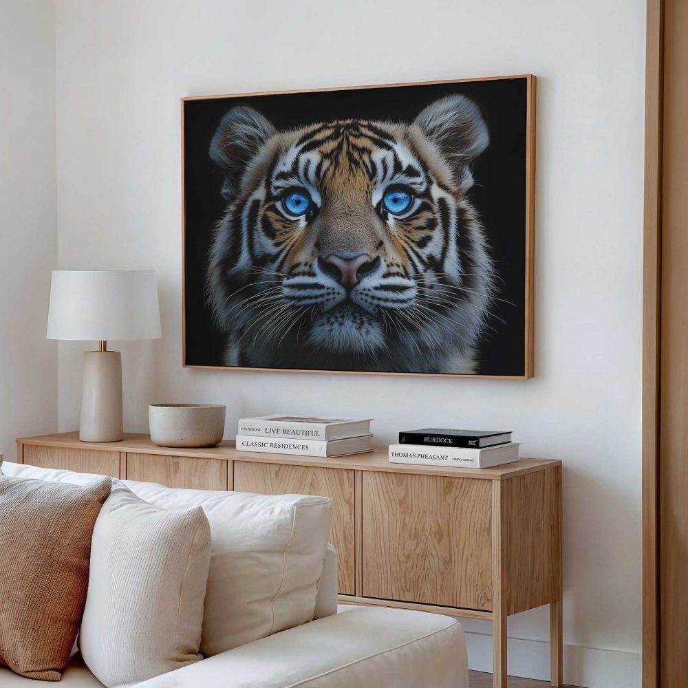 Terug naar collectie / Schilderijen / Dieren Schilderij / Majestueuze tijger met blauwe ogen