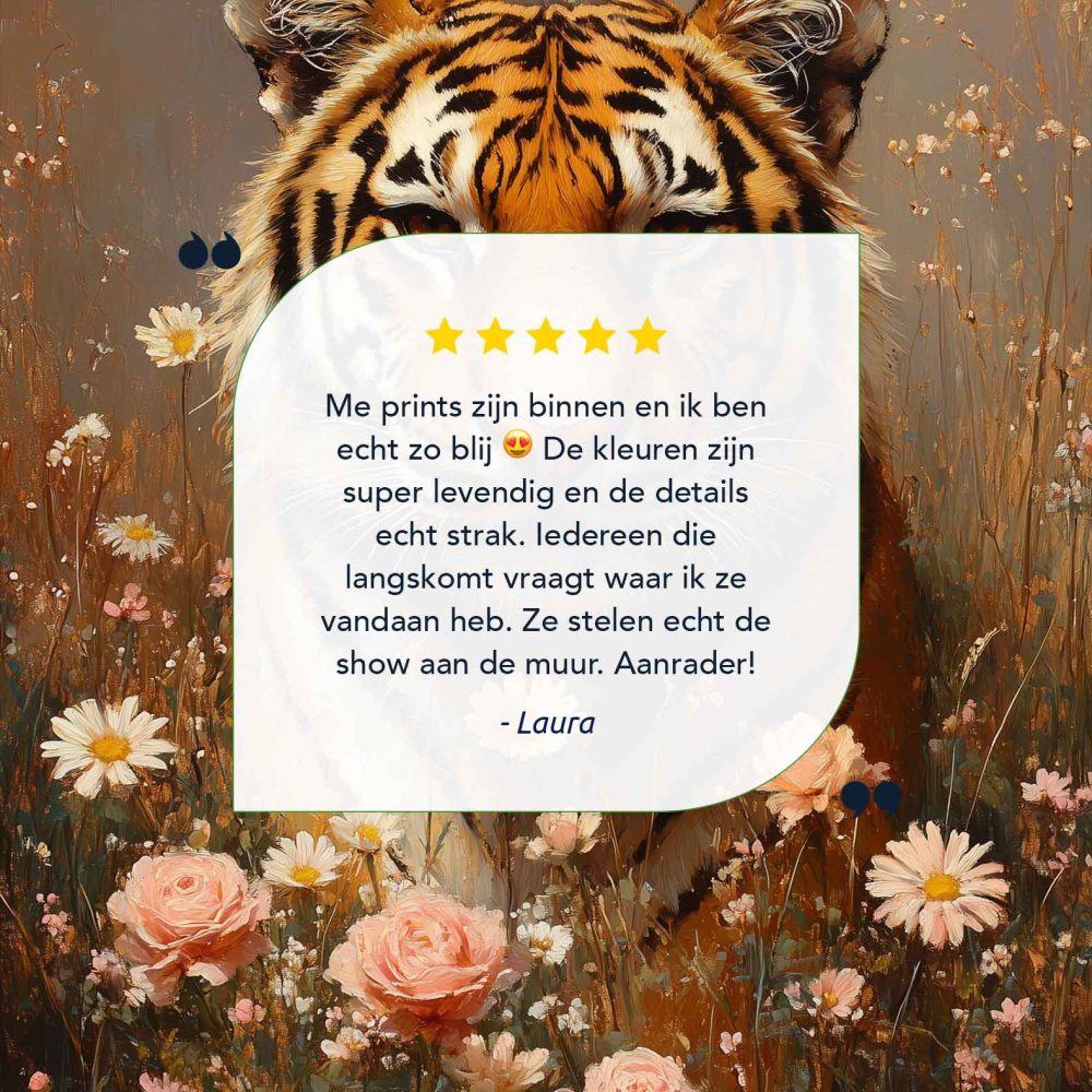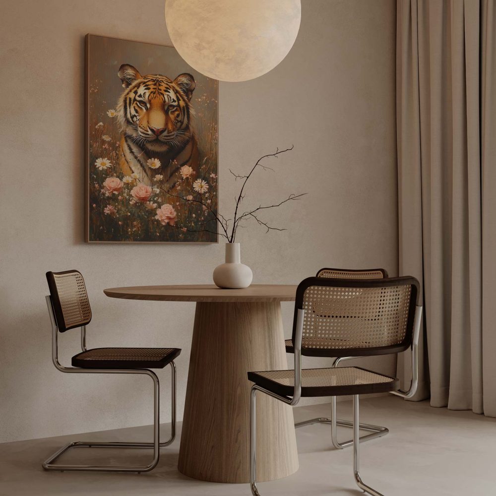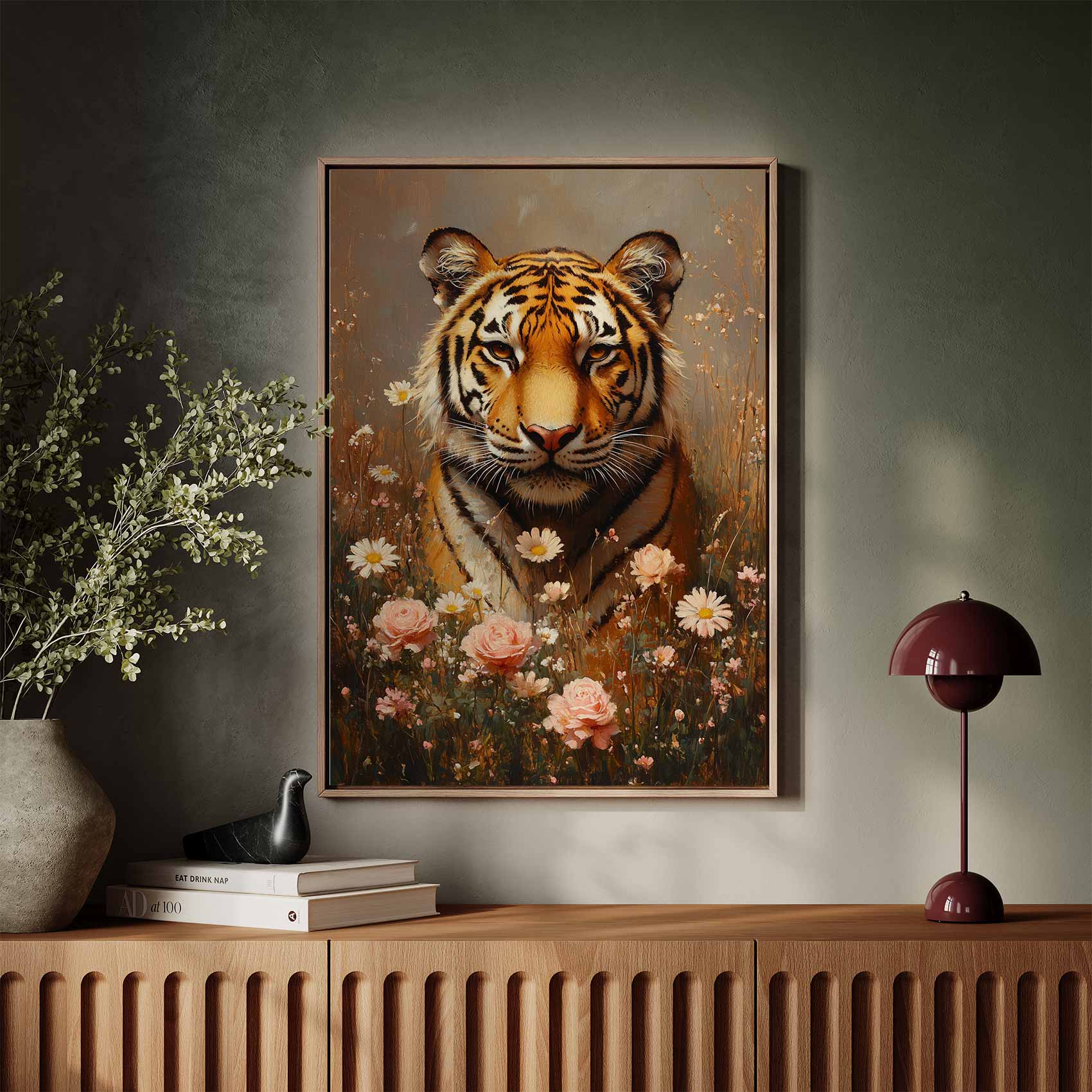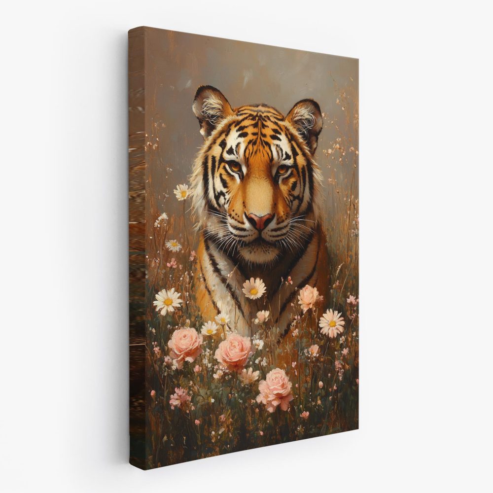 Terug naar collectie / Schilderijen / Bloemen Schilderij / Majestueuze tijger tussen bloemen