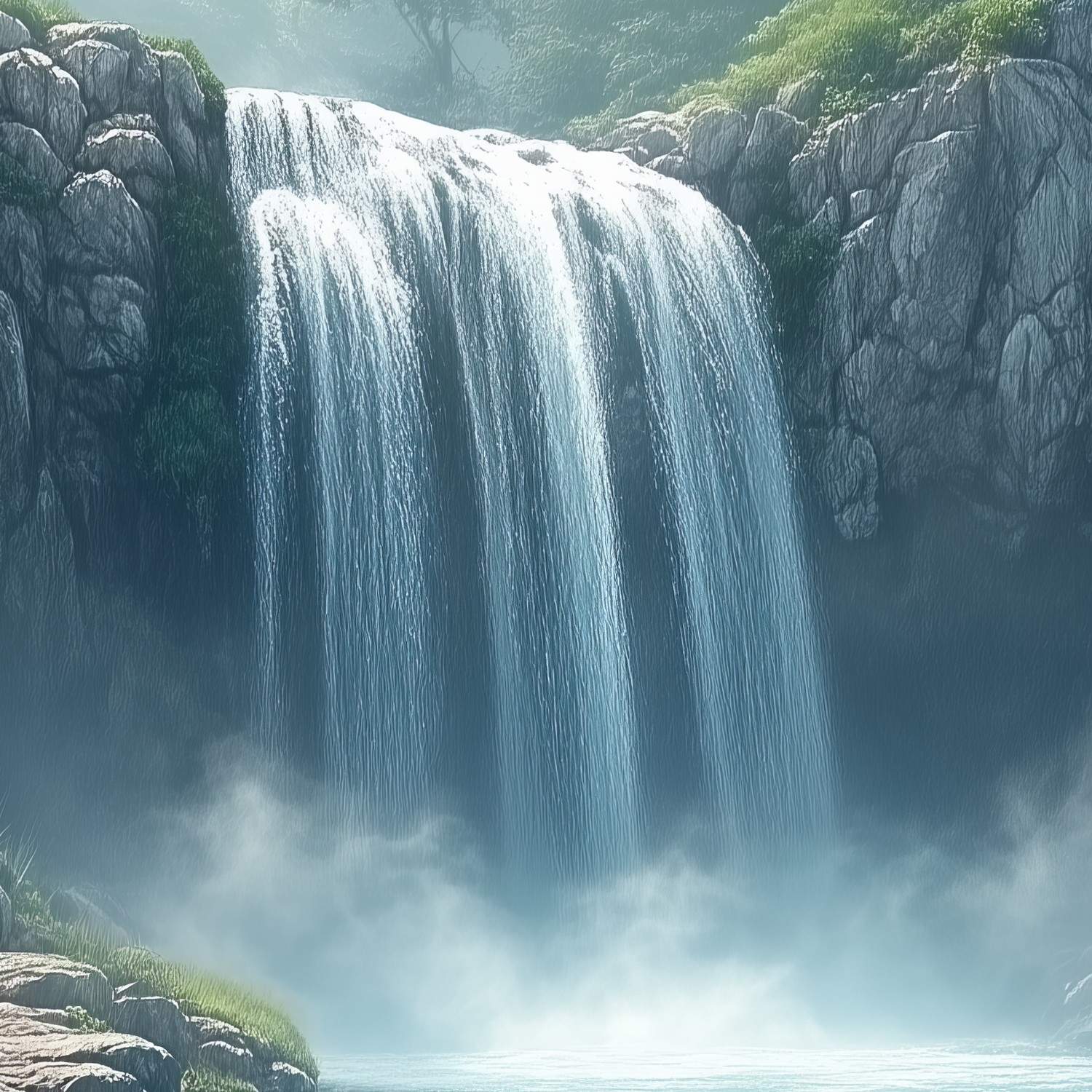 Majestueuze waterval in natuur behang