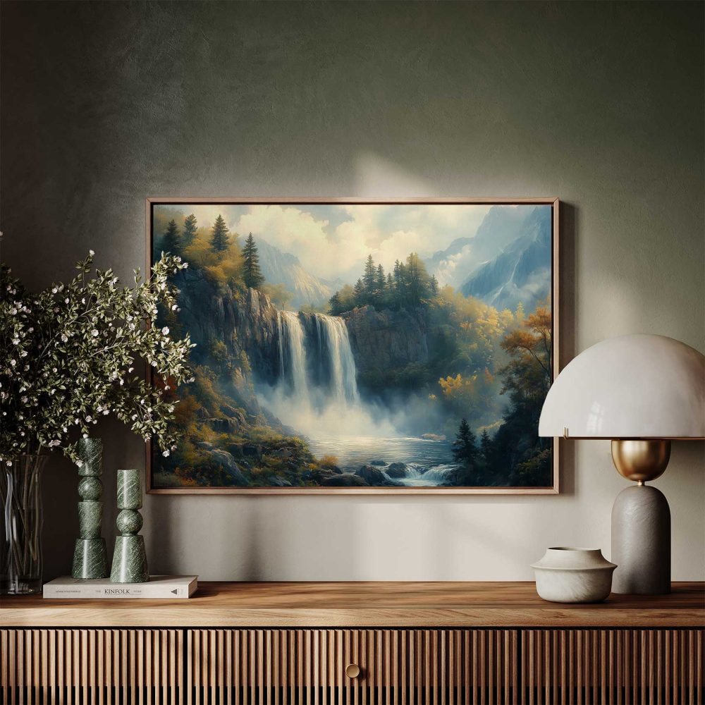 Terug naar collectie / Schilderijen / Bergen Schilderij / Majestueuze waterval in natuur