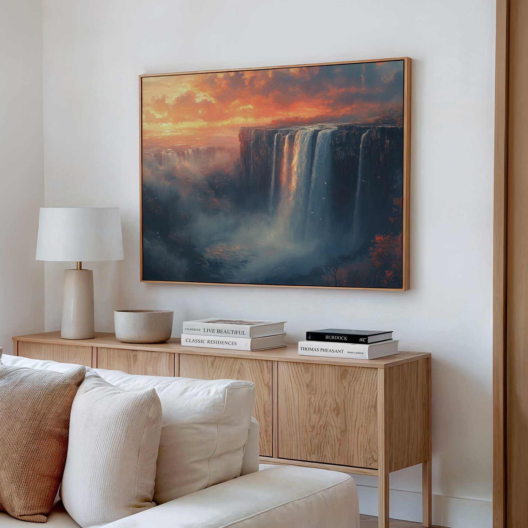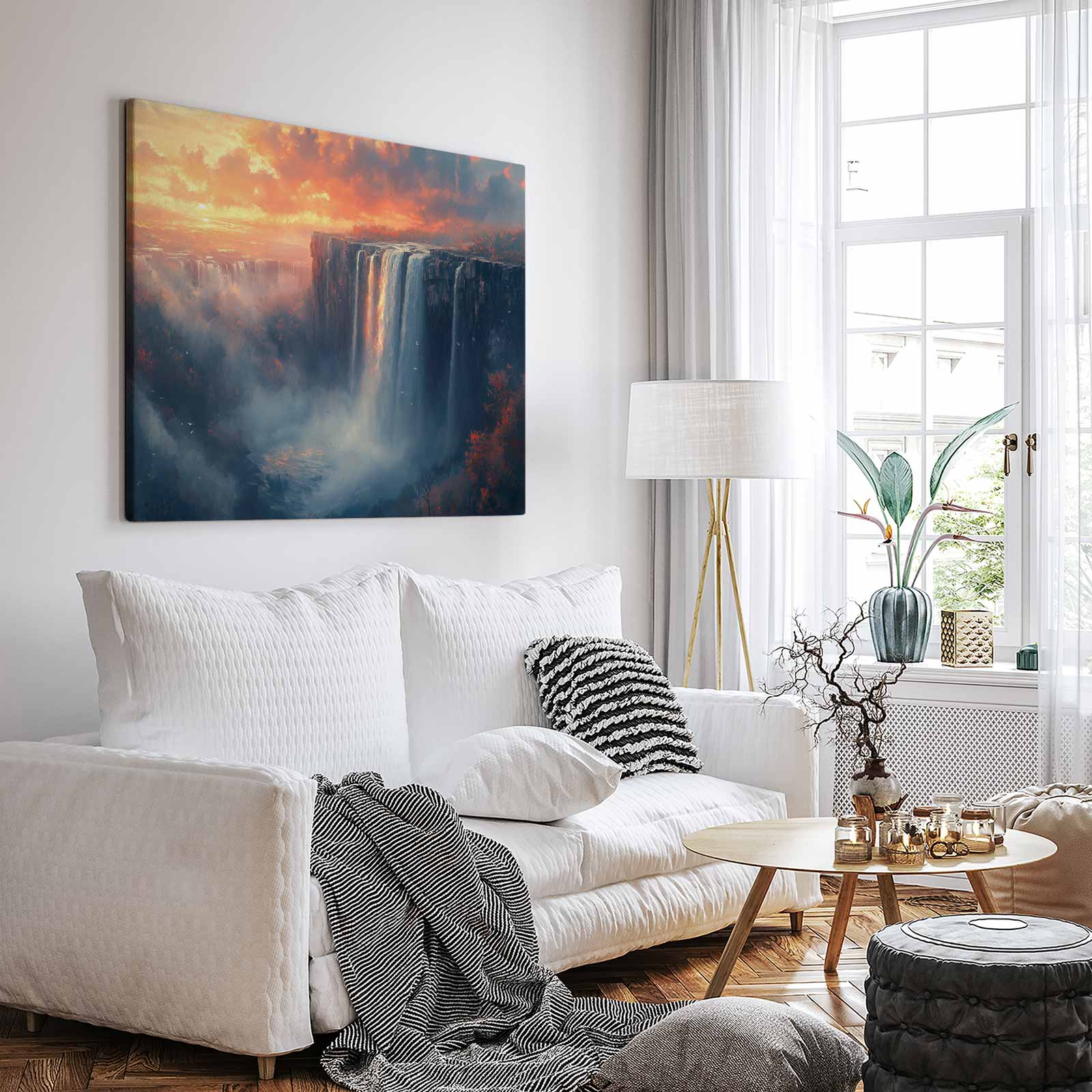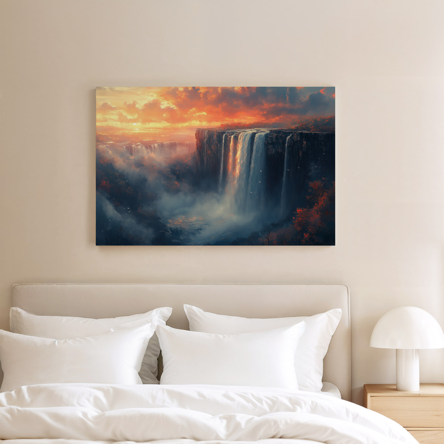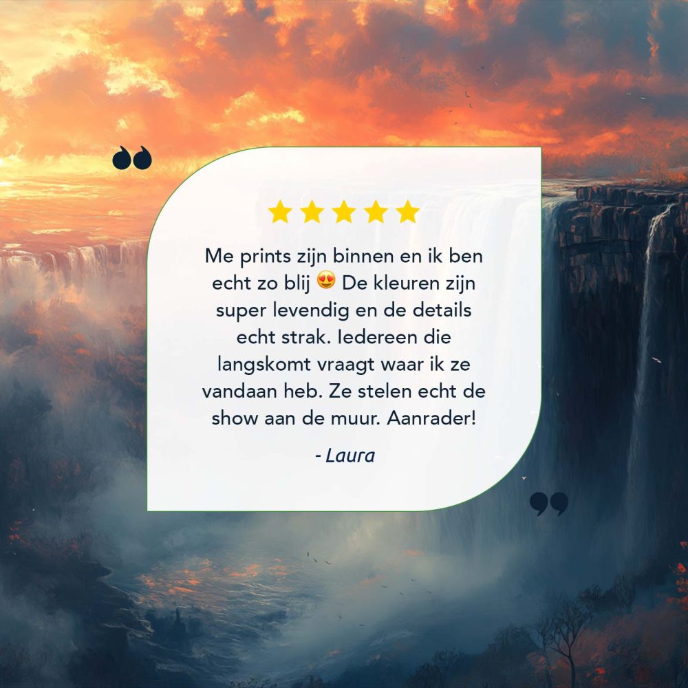 Terug naar collectie / Schilderijen / Bergen Schilderij / Majestueuze waterval zonsondergang