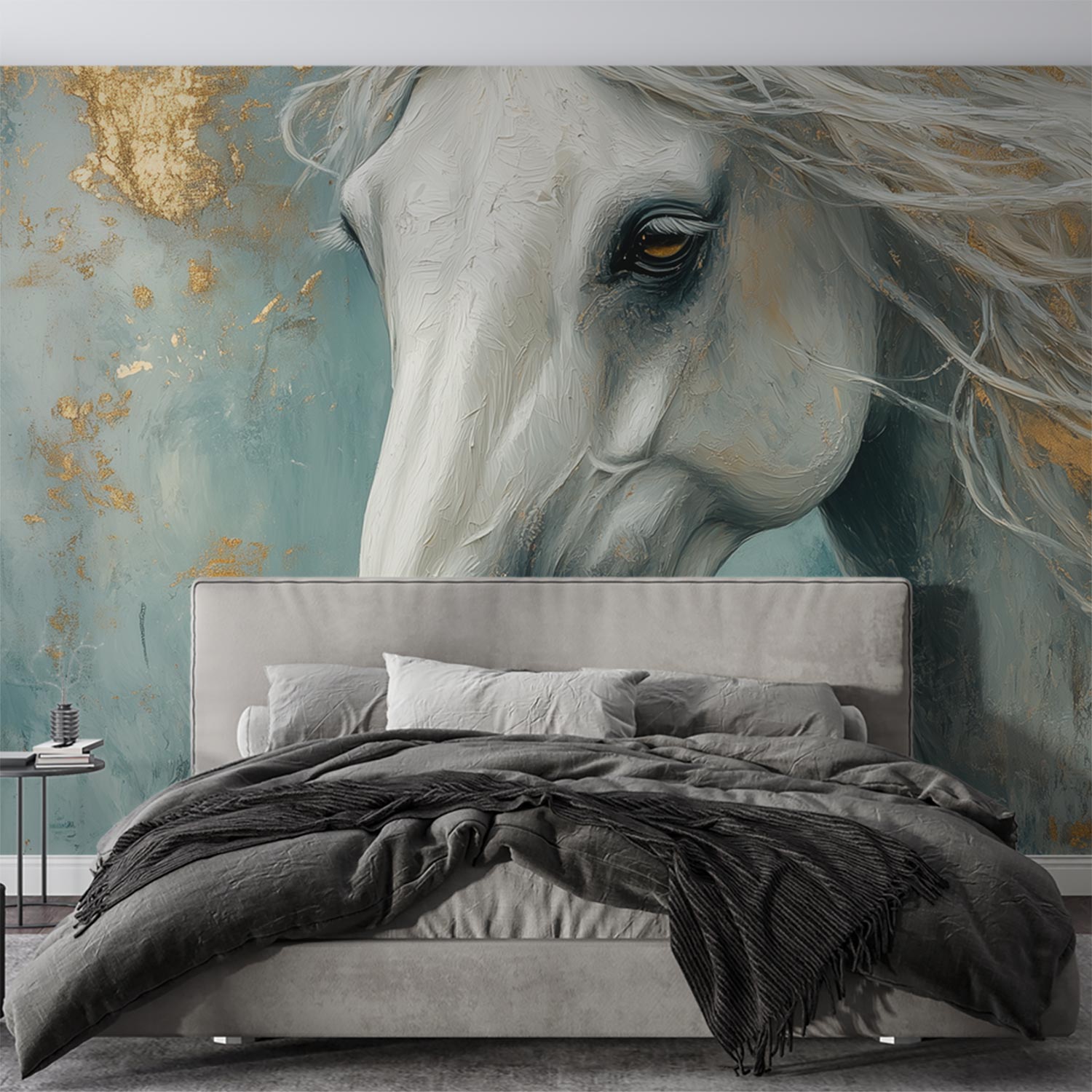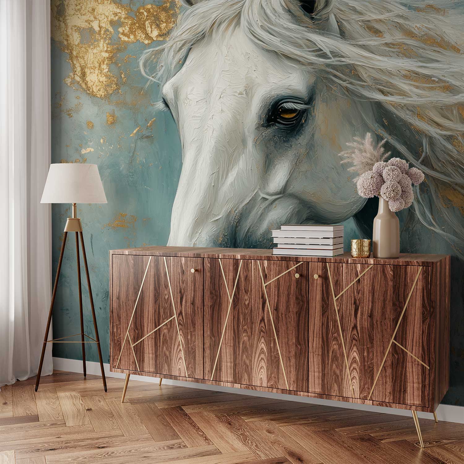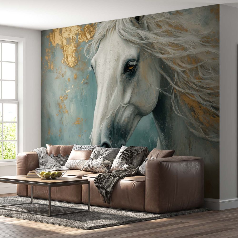 Terug naar collectie / Behang / Majestueuze witte renpaard behang