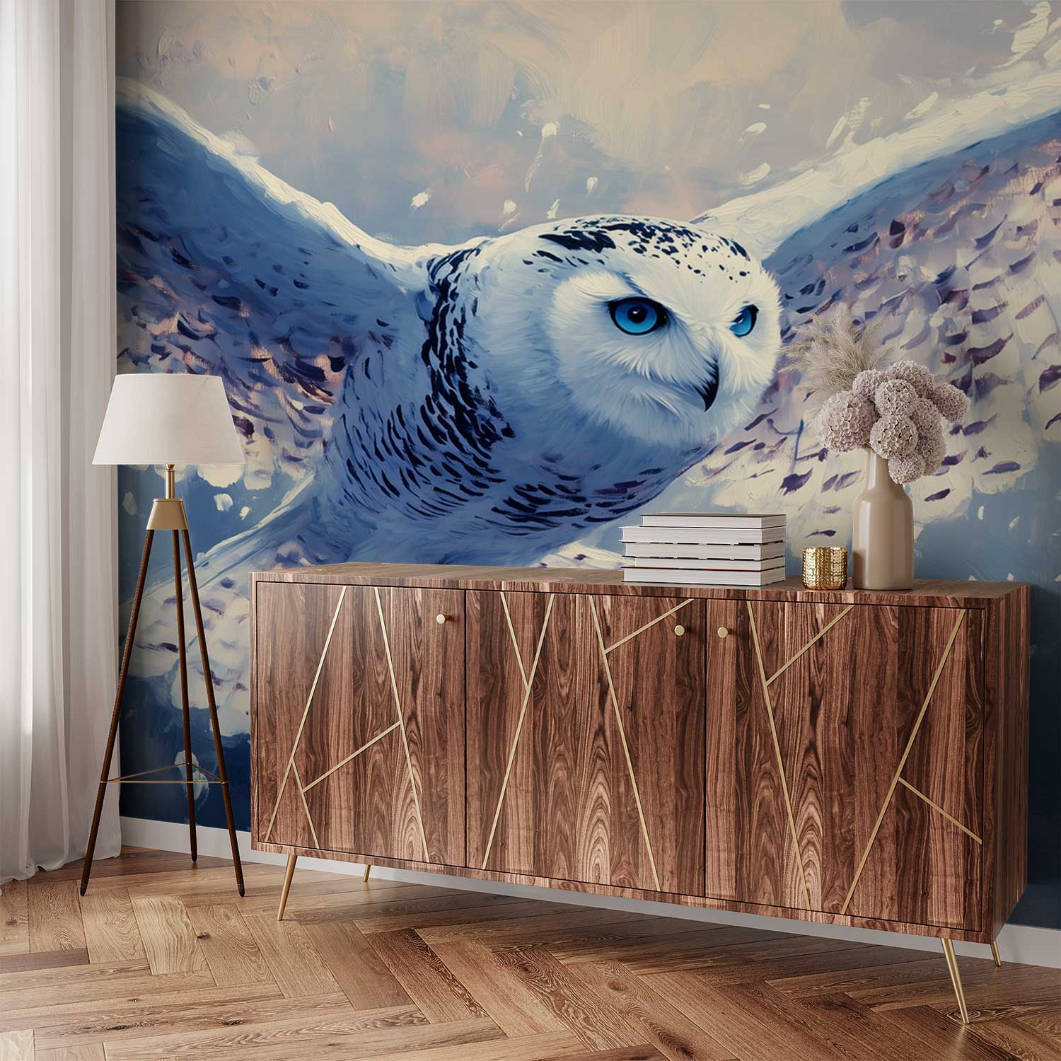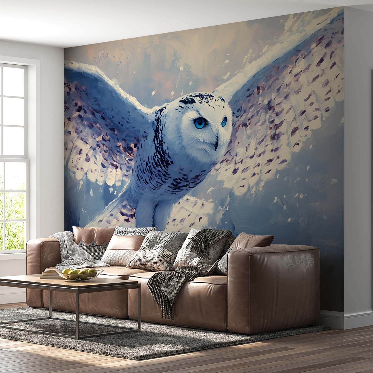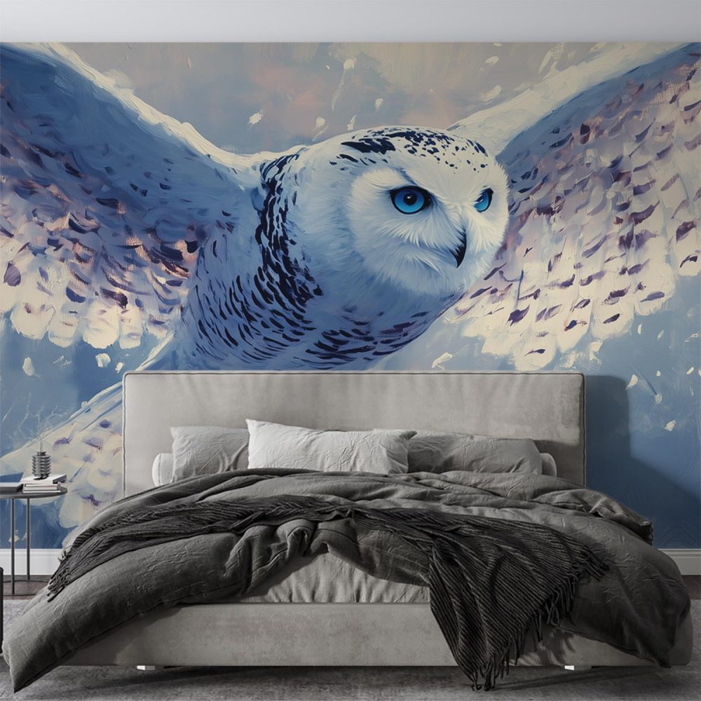 Terug naar collectie / Behang / Majestueuze witte uilvlucht behang