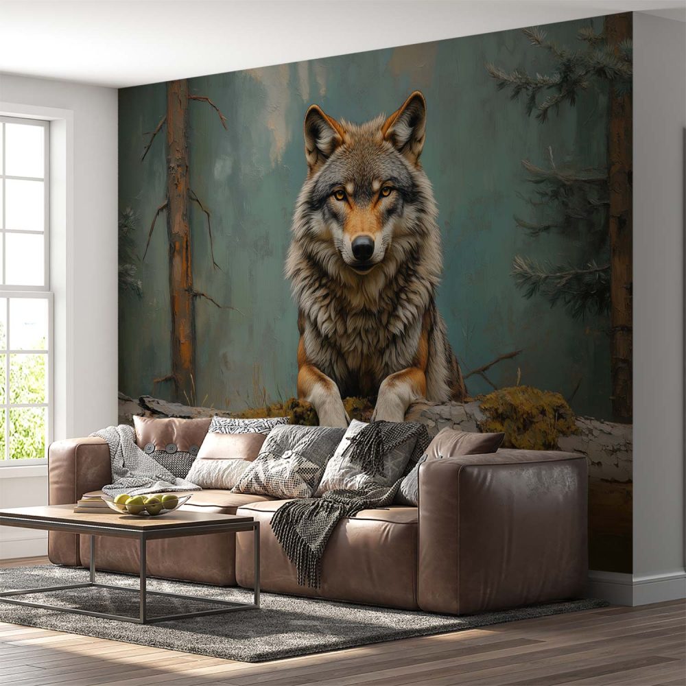 Terug naar collectie / Behang / Majestueuze wolf in bos behang