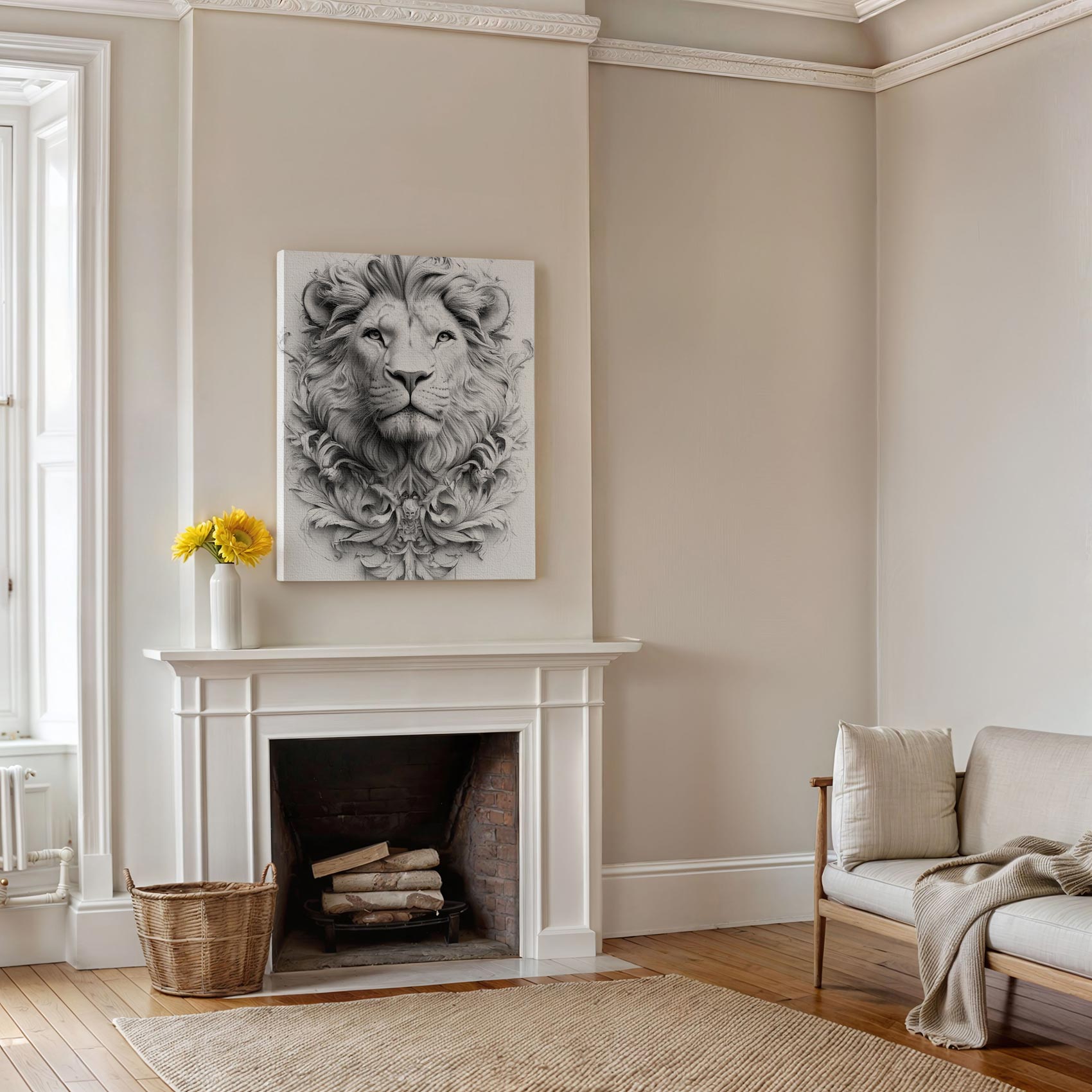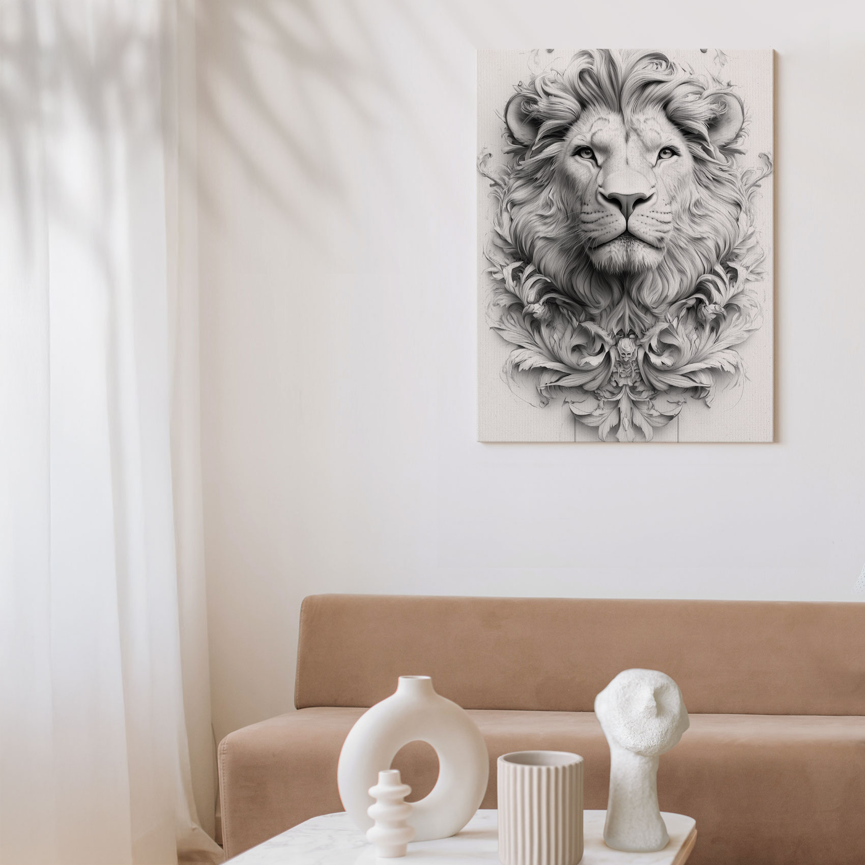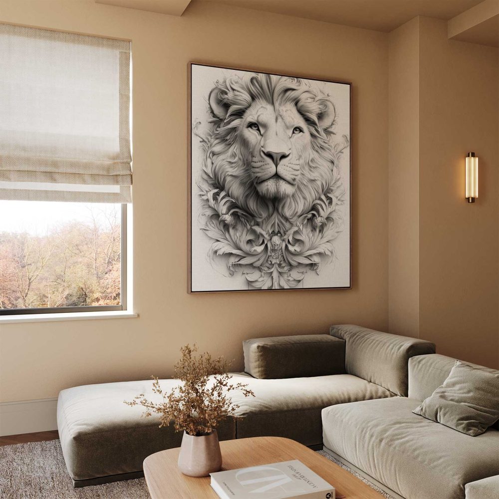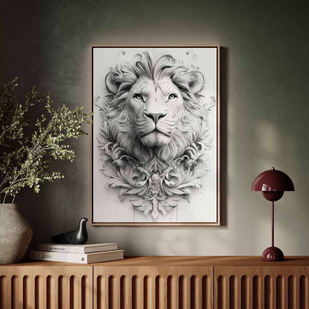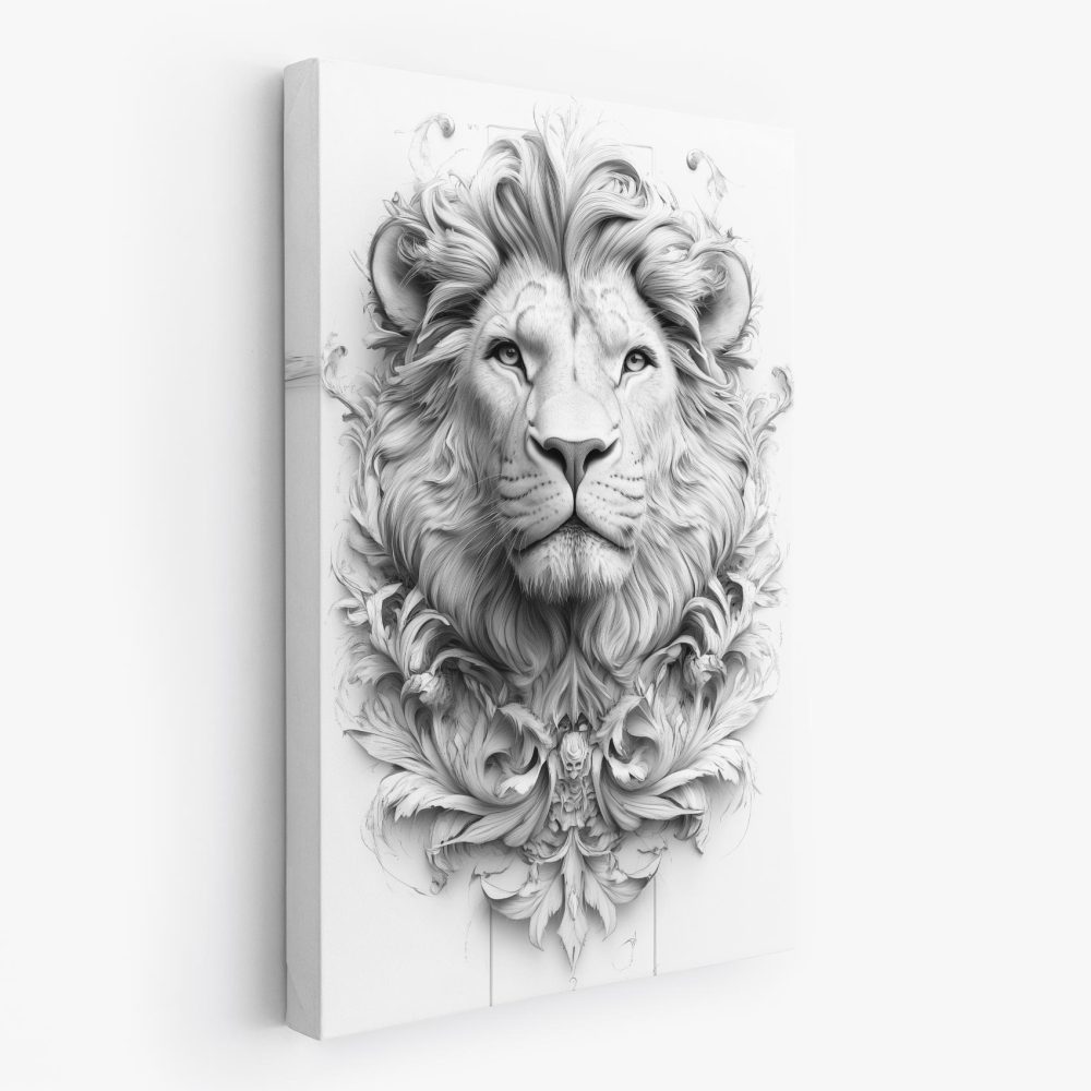 Terug naar collectie / Schilderijen / Bloemen Schilderij / Majestueuze Zwart-Wit Leeuwenportret