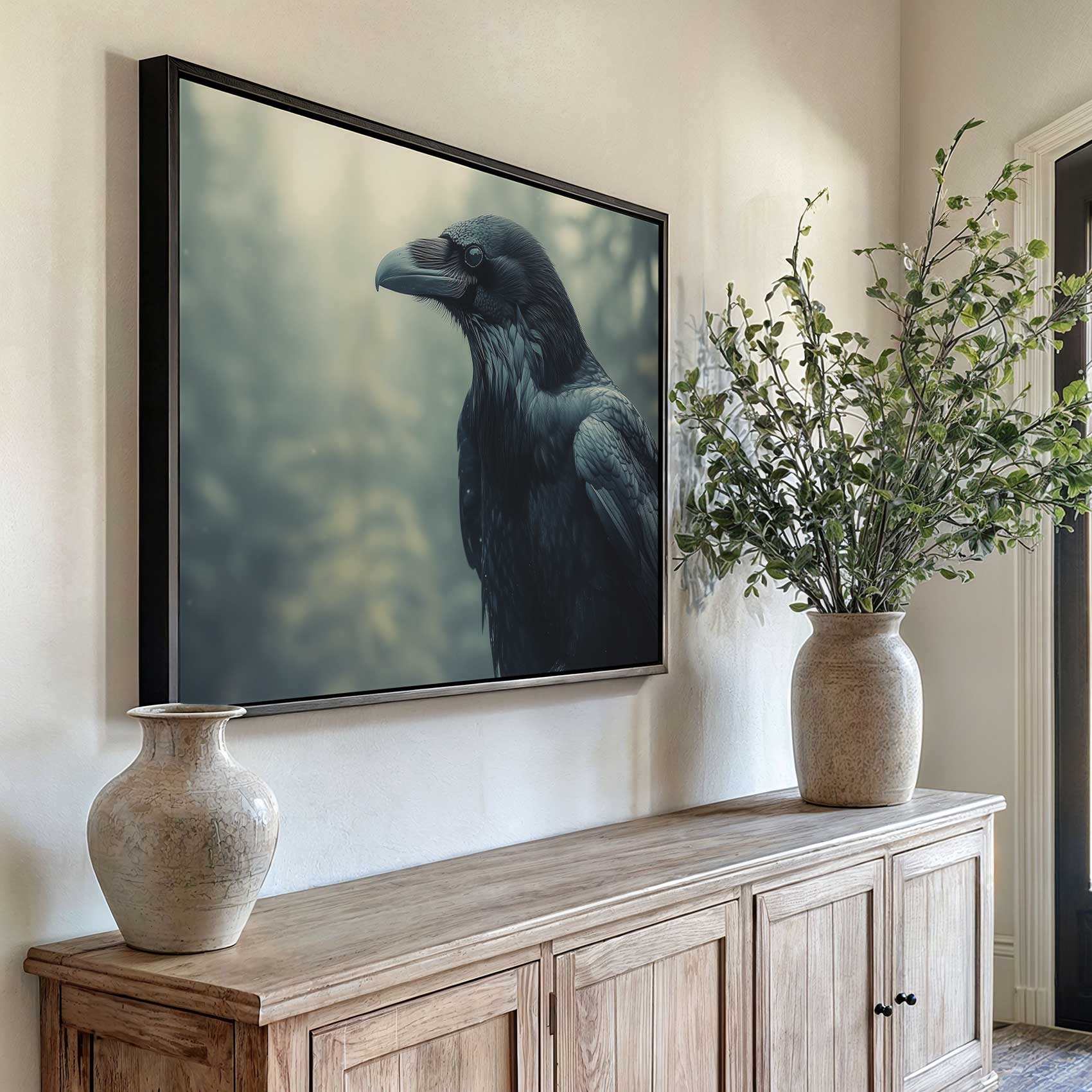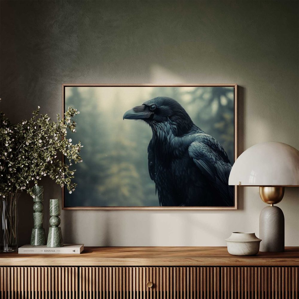 Terug naar collectie / Schilderijen / Bossen Schilderij / Majestueuze zwarte bosvogel