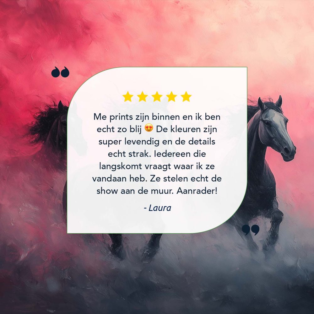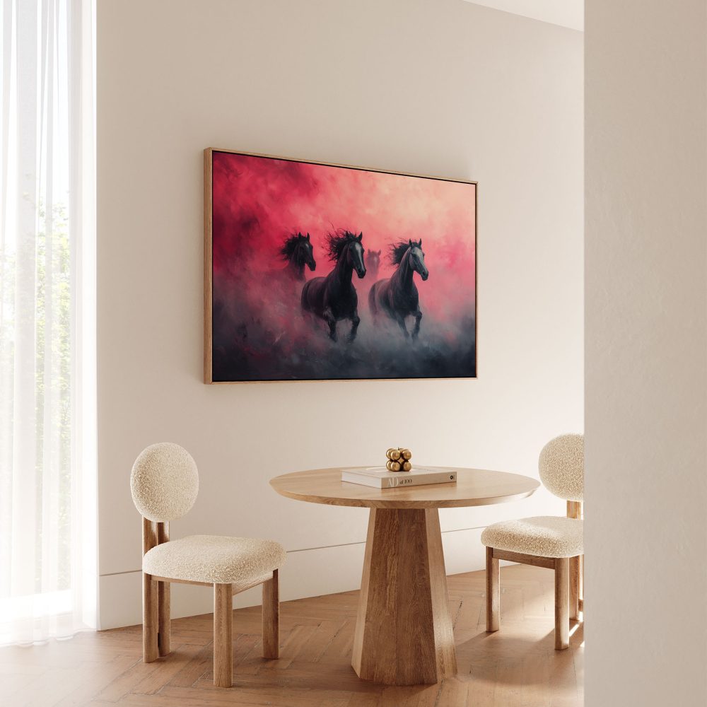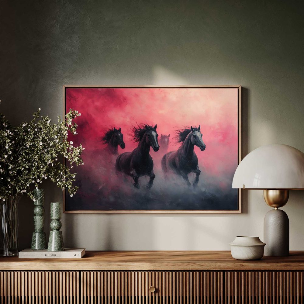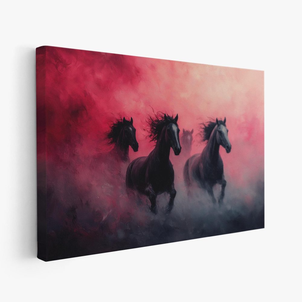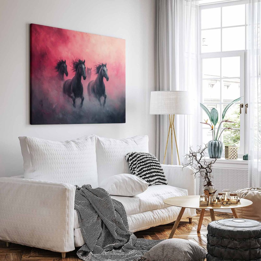 Terug naar collectie / Schilderijen / Dieren Schilderij / Majestueuze zwarte paarden rennen