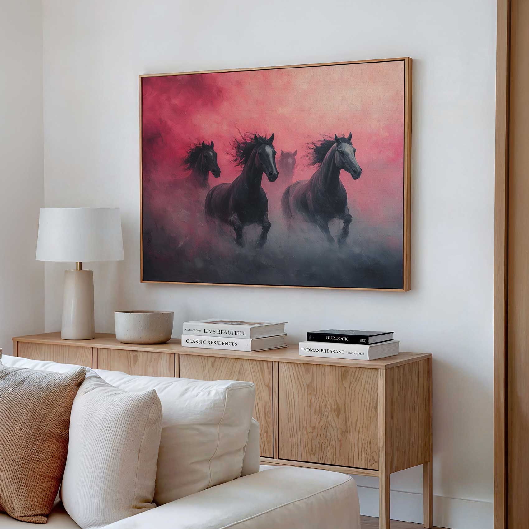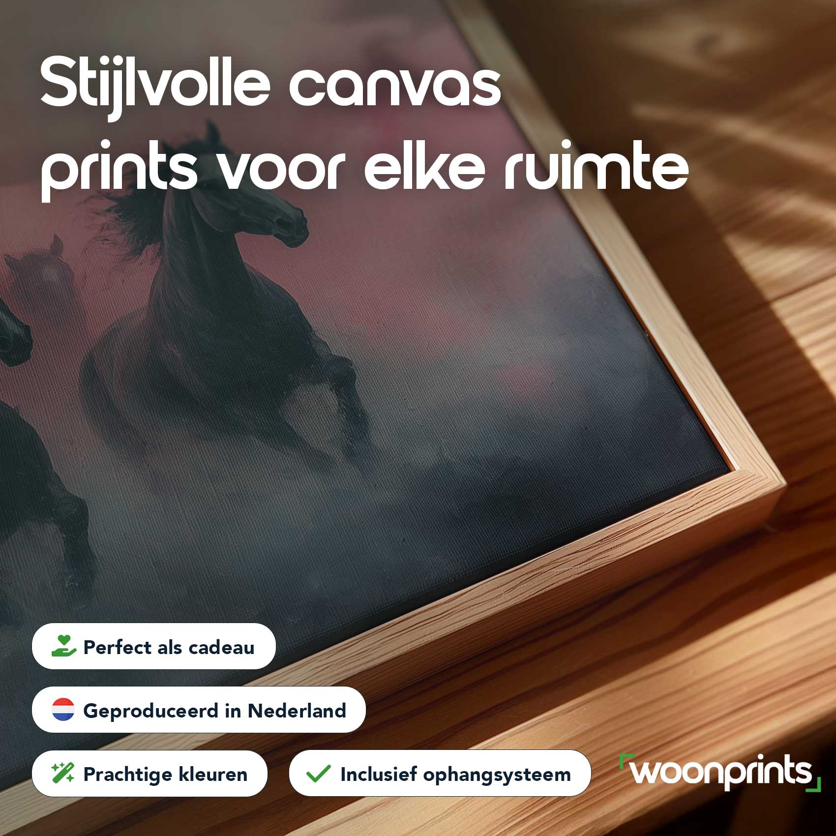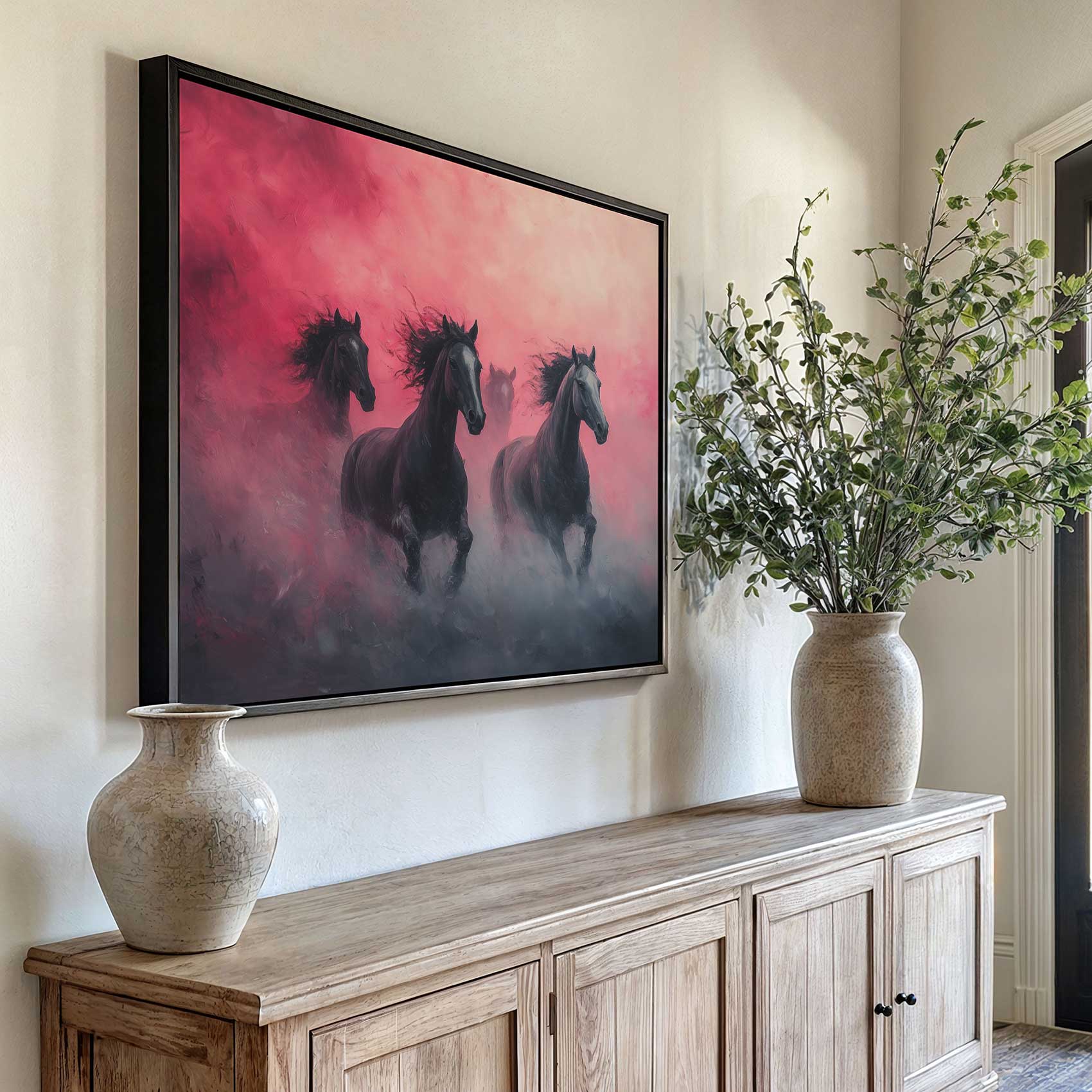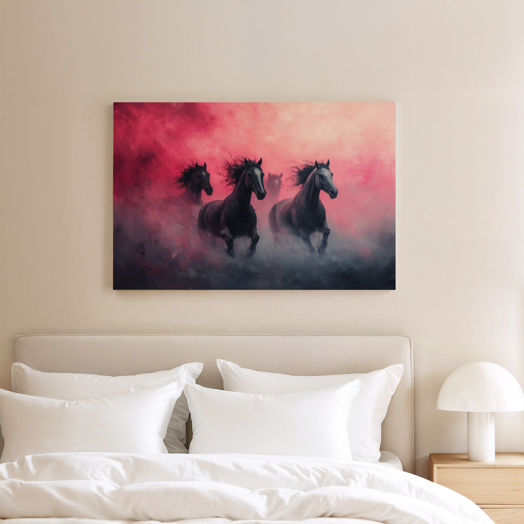 Terug naar collectie / Schilderijen / Dieren Schilderij / Majestueuze zwarte paarden rennen