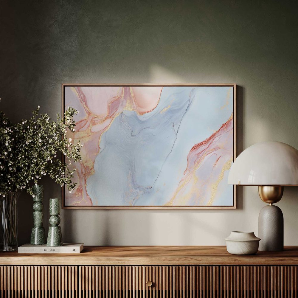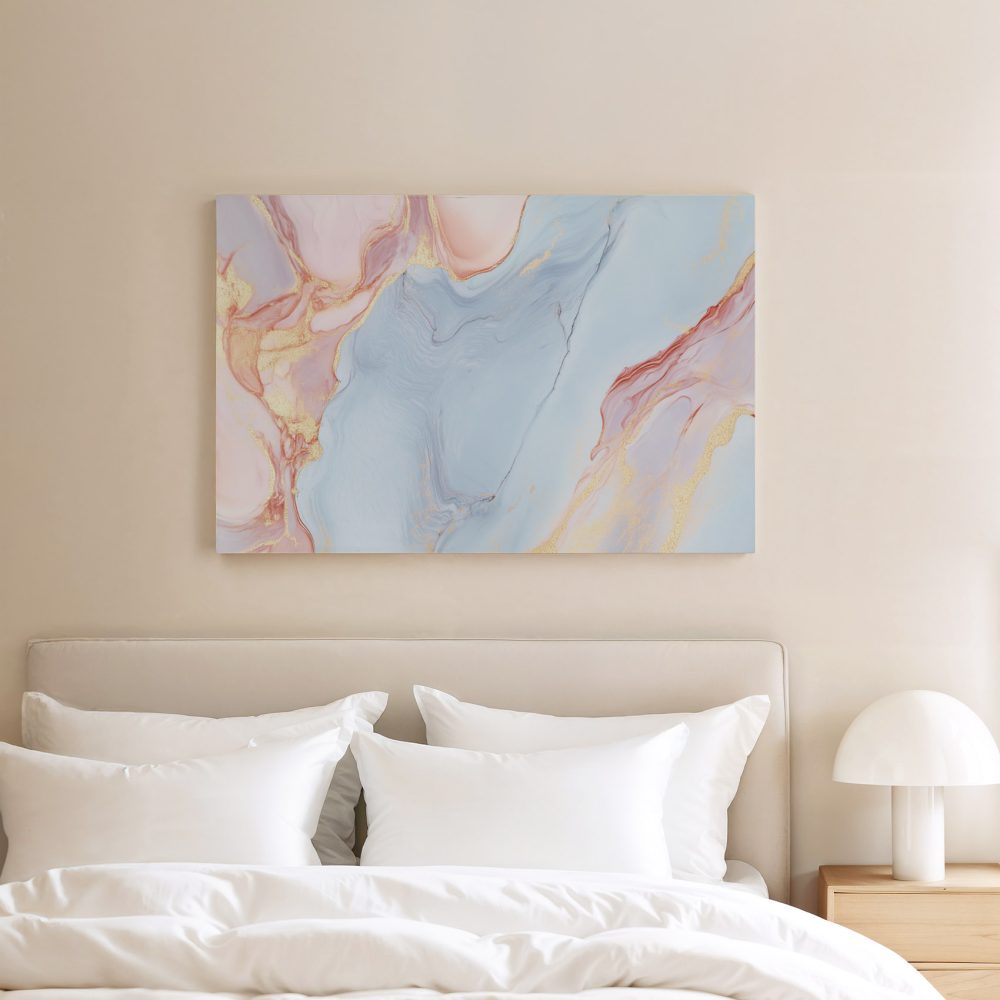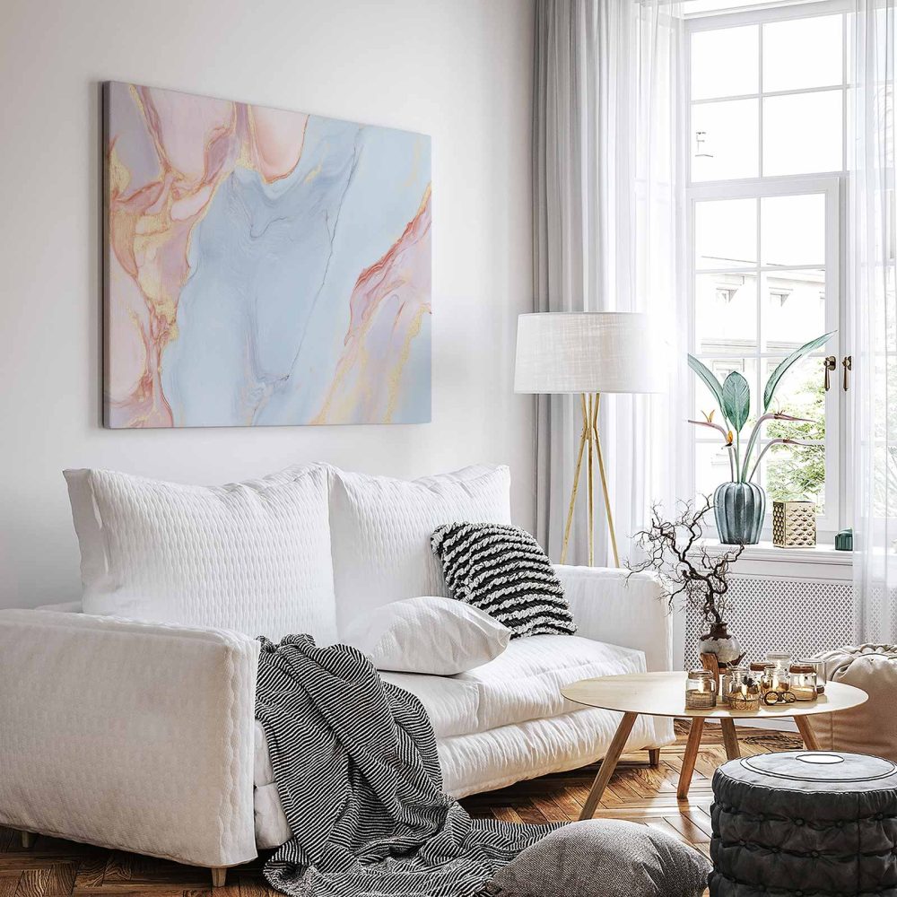 Terug naar collectie / Schilderijen / Abstract Schilderij / Marmeren Blauw-Roze Gouden Glans