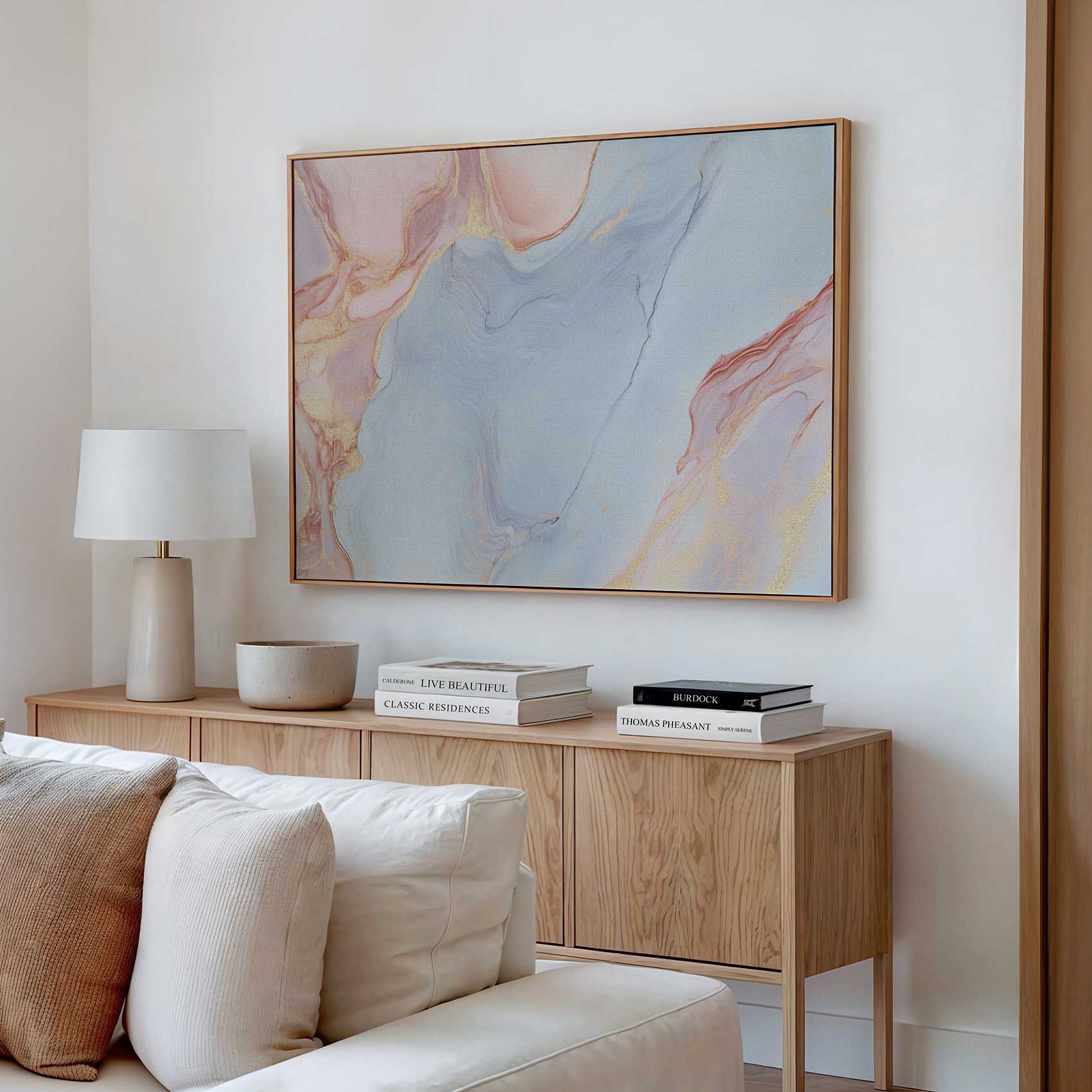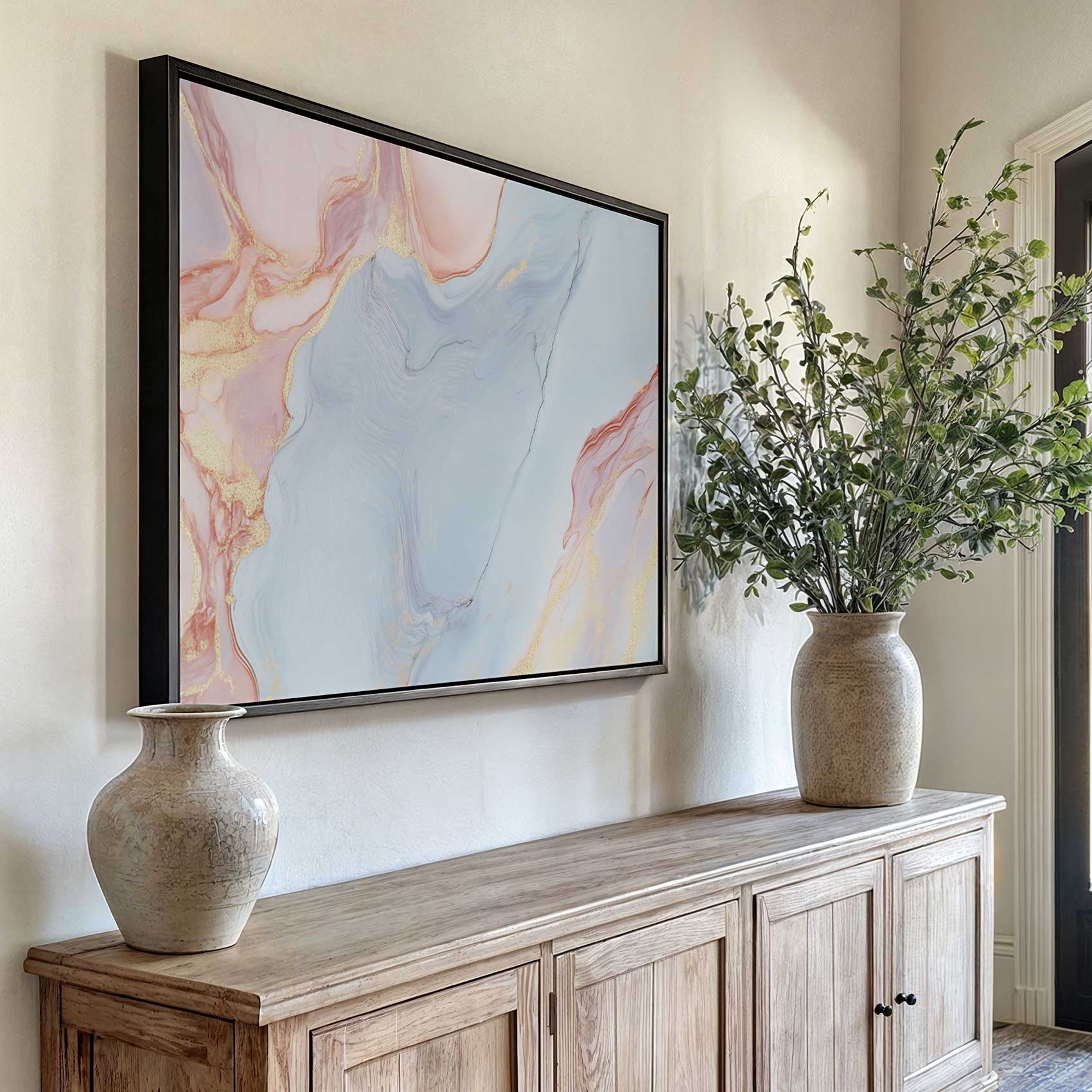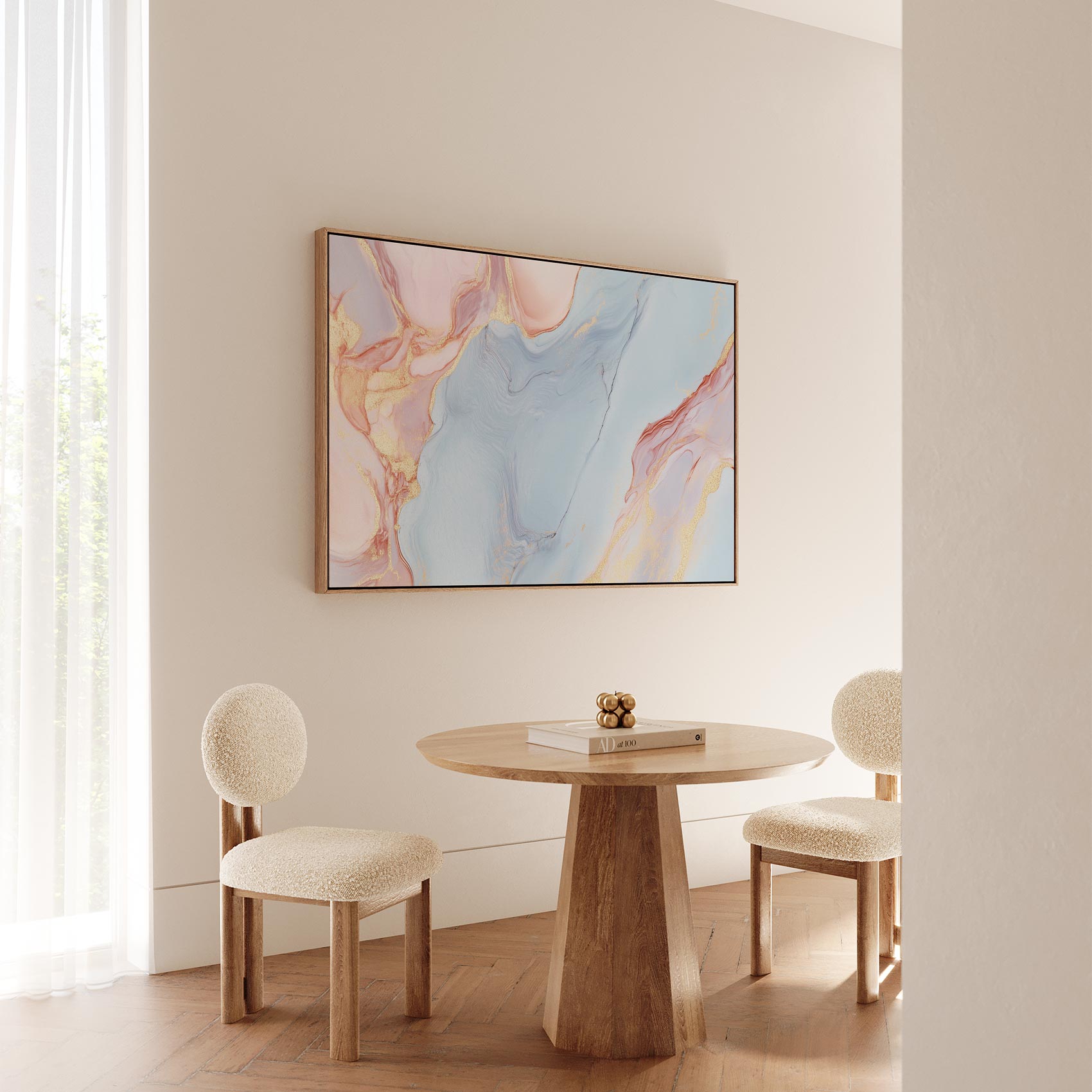 Terug naar collectie / Schilderijen / Abstract Schilderij / Marmeren Blauw-Roze Gouden Glans