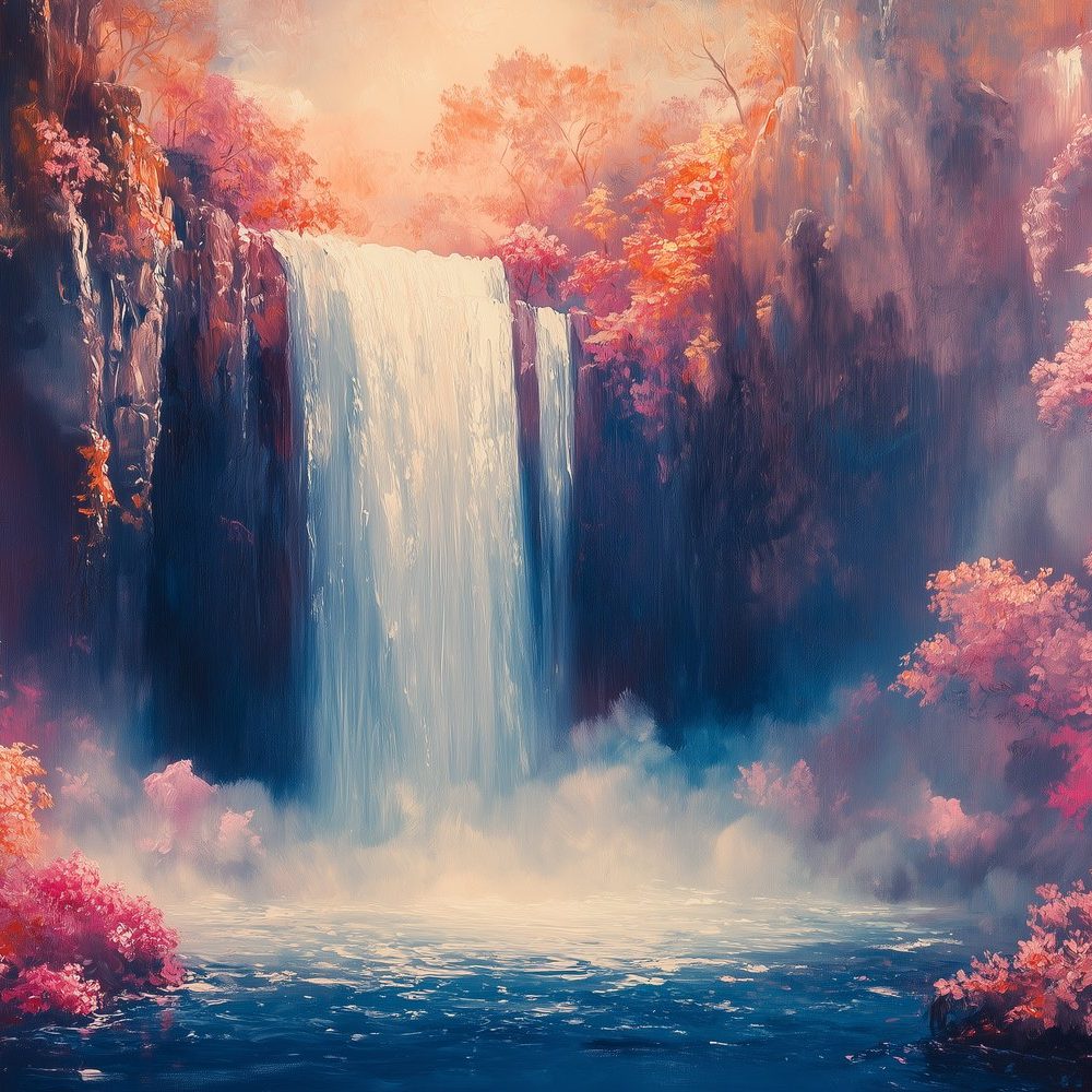 Mistig waterval boslandschap behang