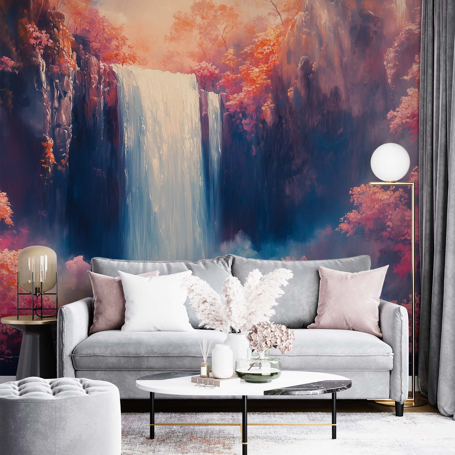 Terug naar collectie / Behang / Mistig waterval boslandschap behang